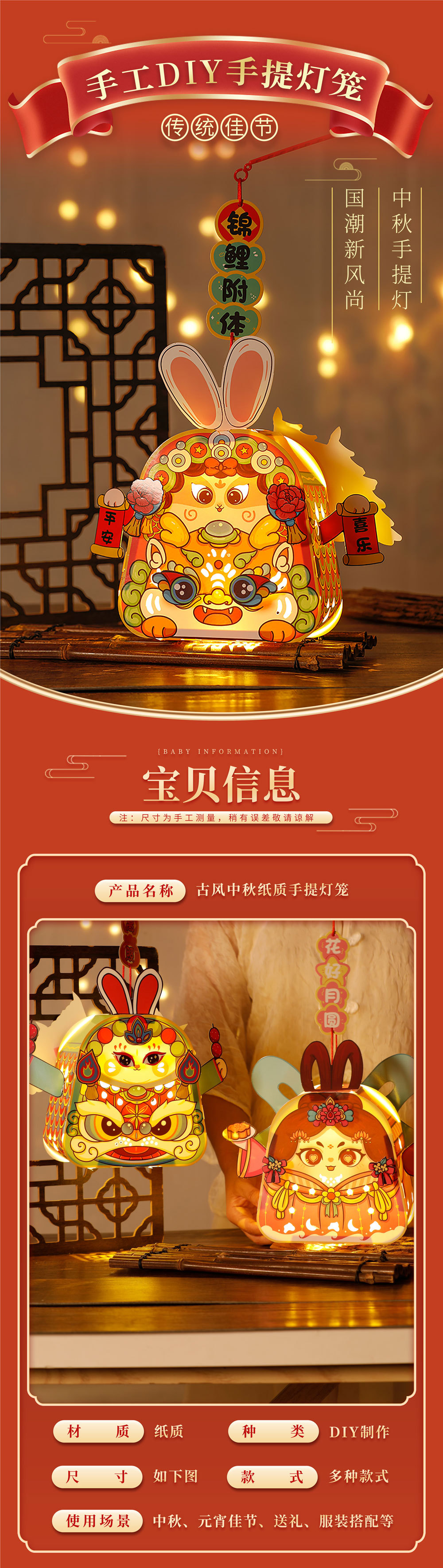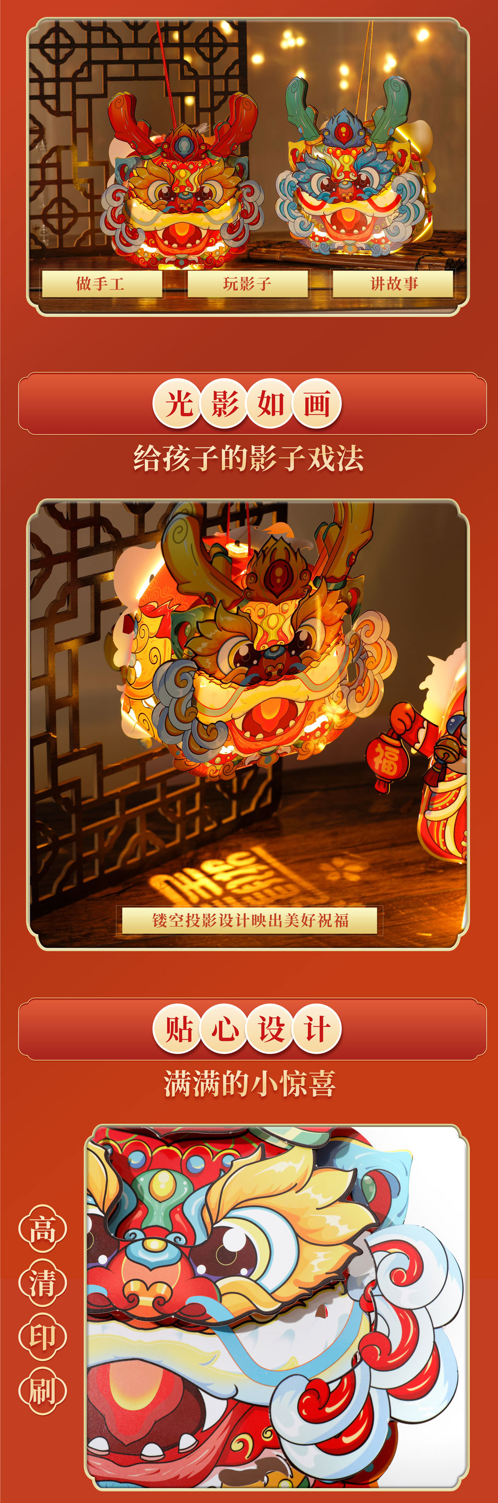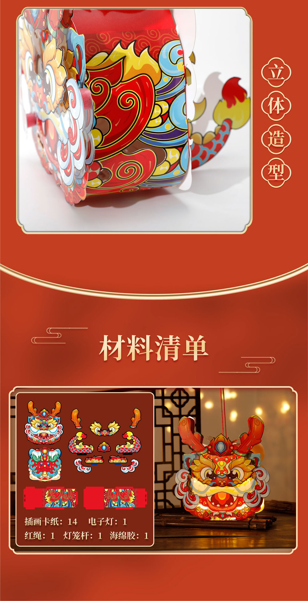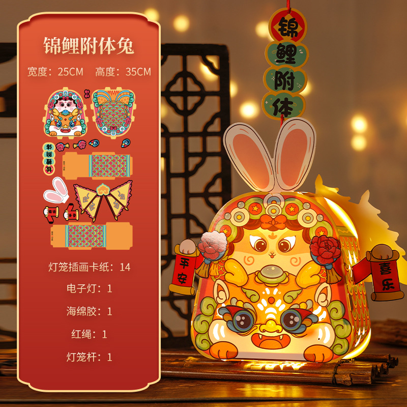 2025新年手提灯笼春节diy材料包儿童卡通国潮龙灯笼新款花灯发光