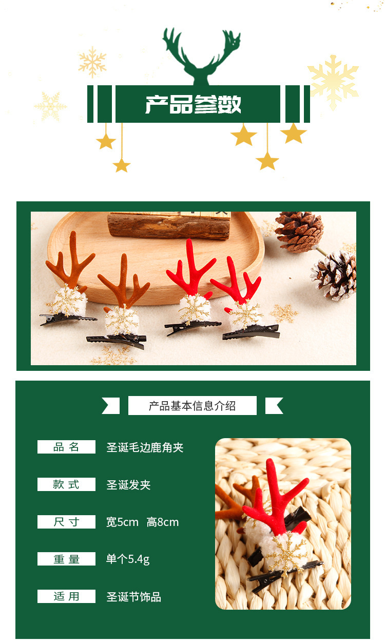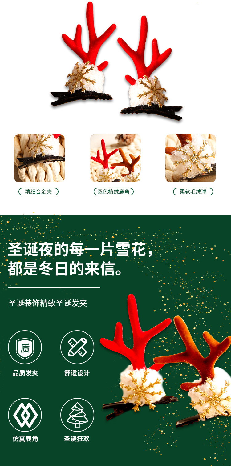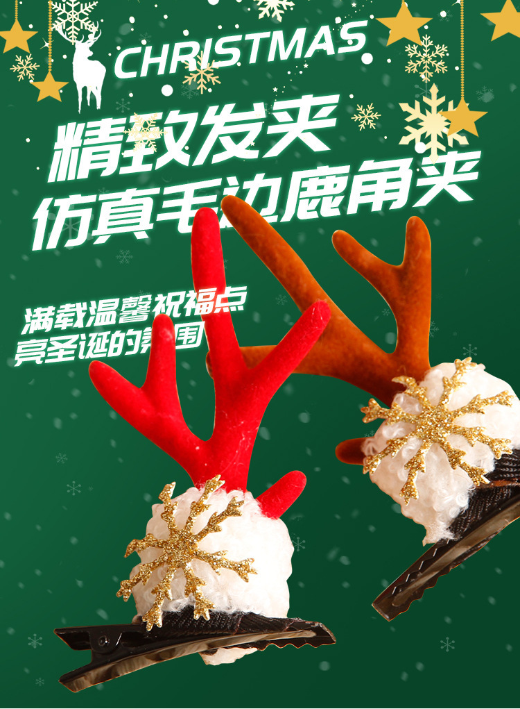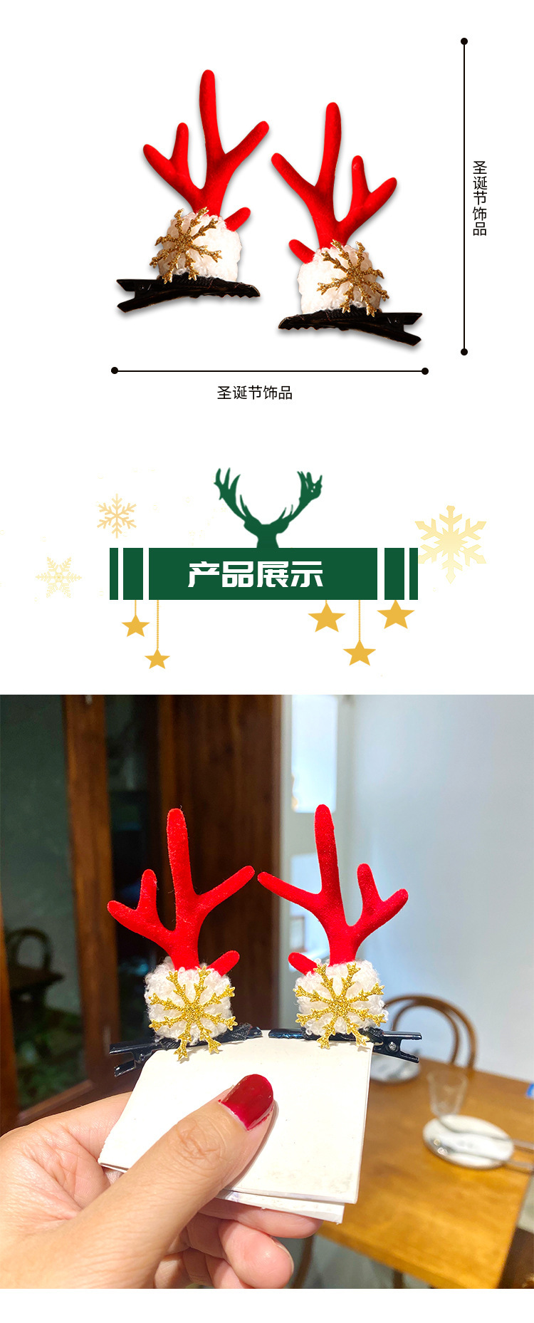 圣诞节新款红色鹿角毛绒可爱发夹网红鹿角头饰网红鹿角头饰