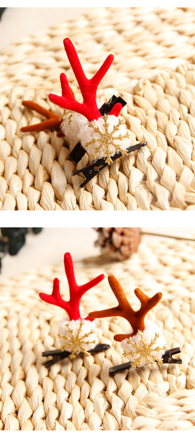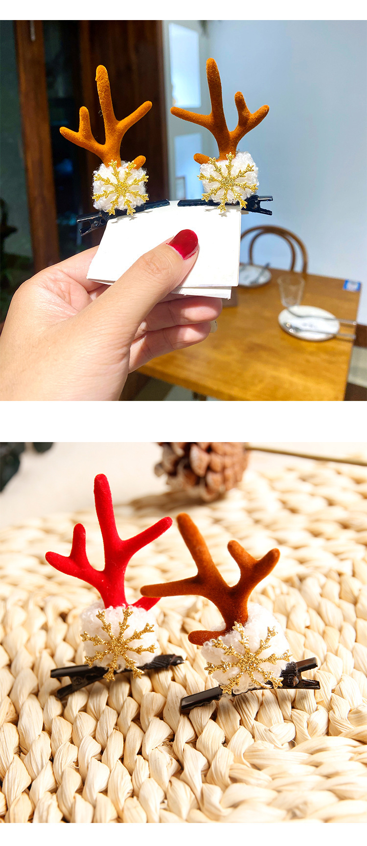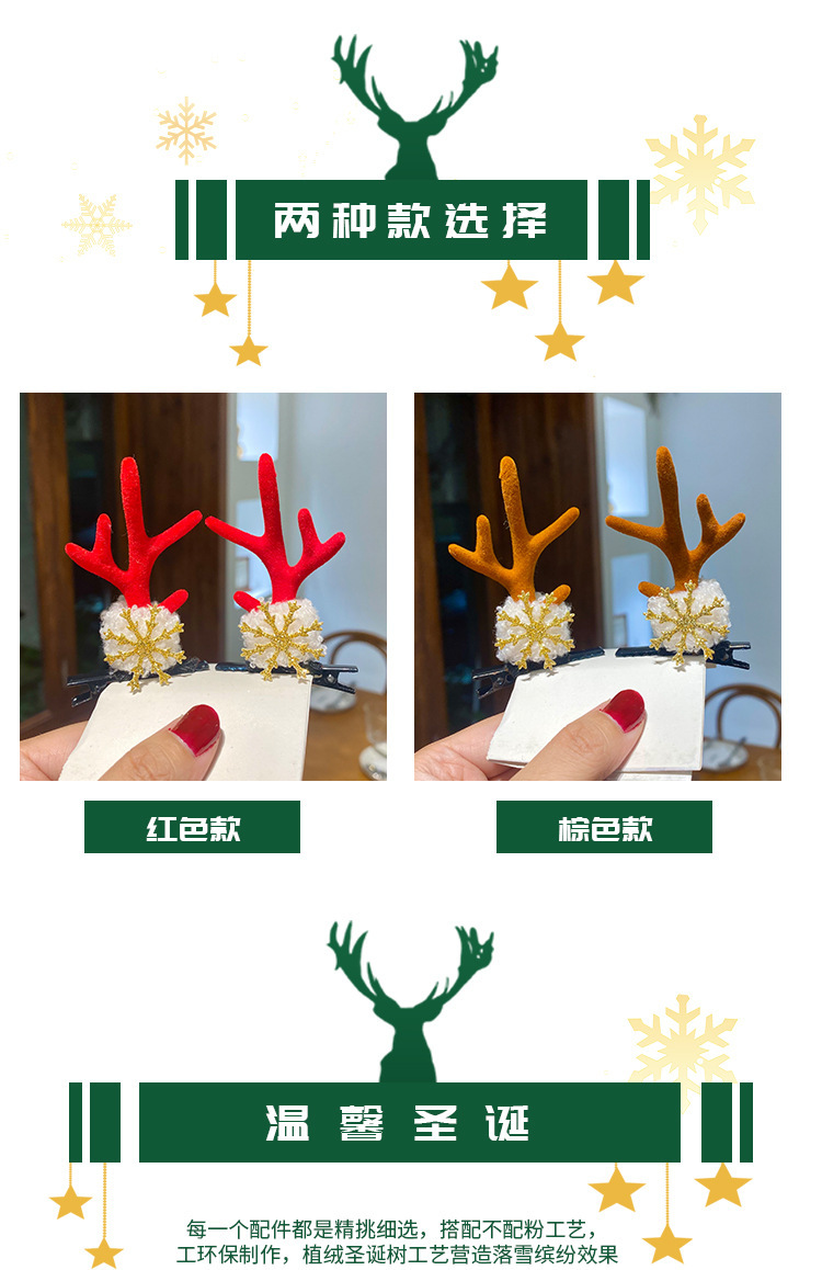 圣诞节新款红色鹿角毛绒可爱发夹网红鹿角头饰网红鹿角头饰