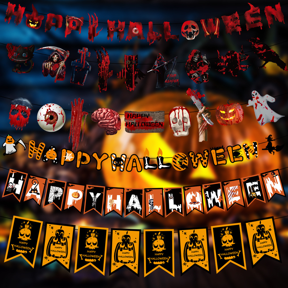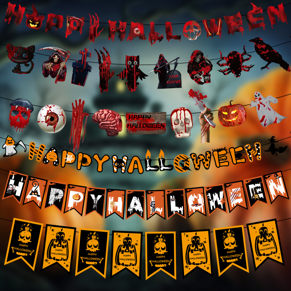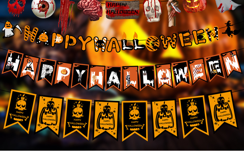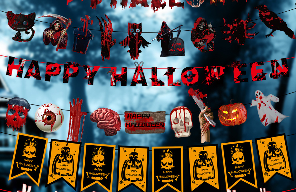 万圣节拉旗 酒店KTV鬼屋恐怖装饰家居万圣字母彩旗拉旗装饰用品