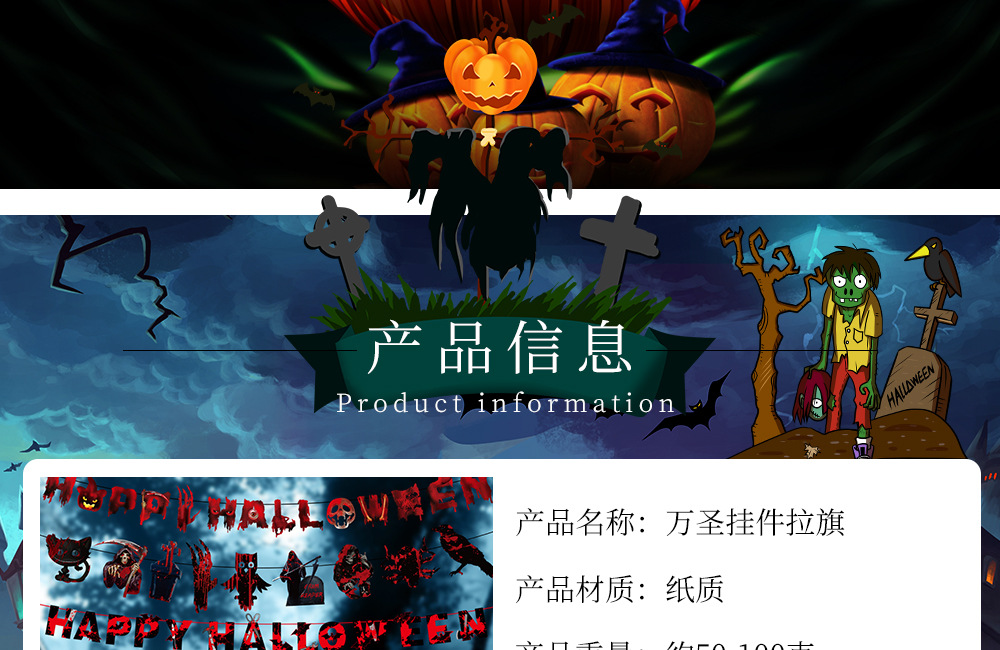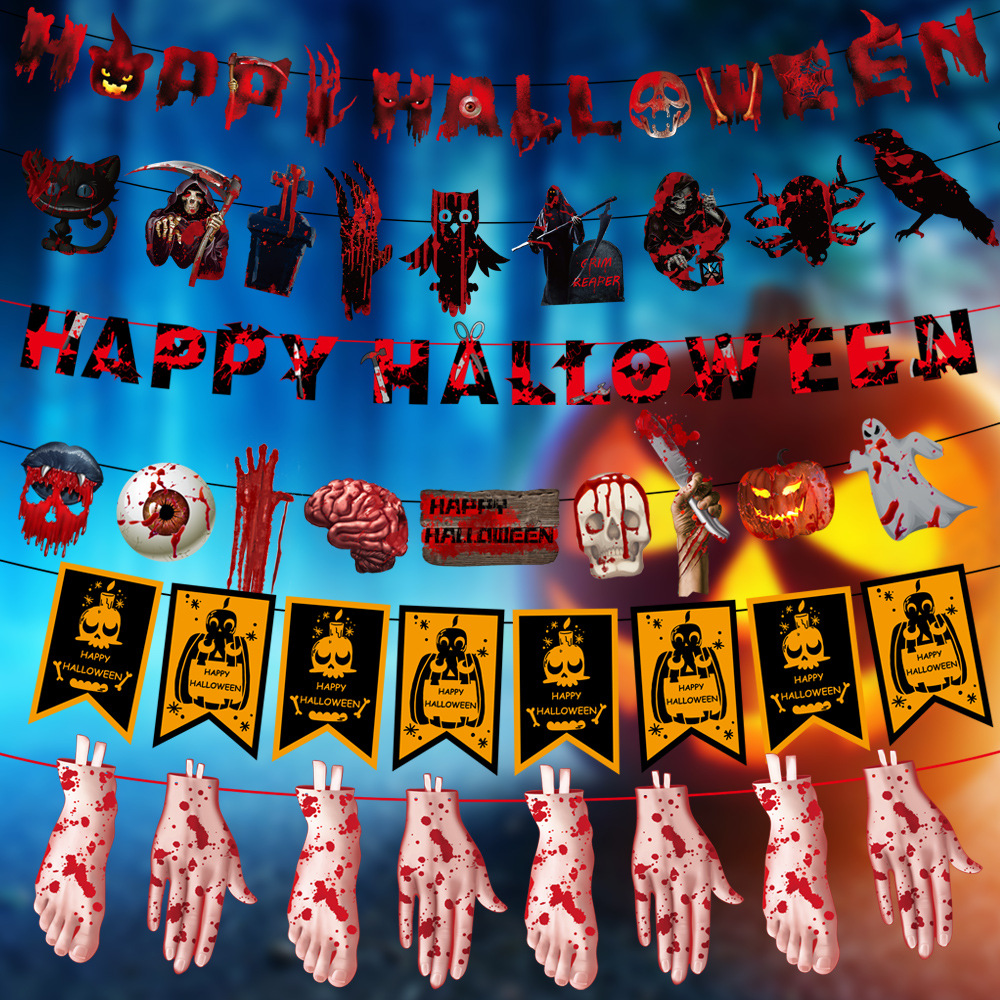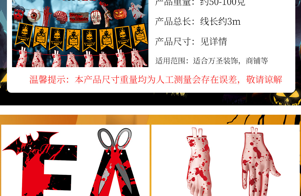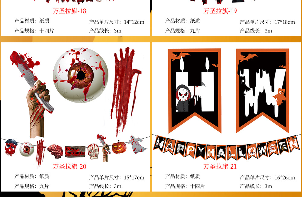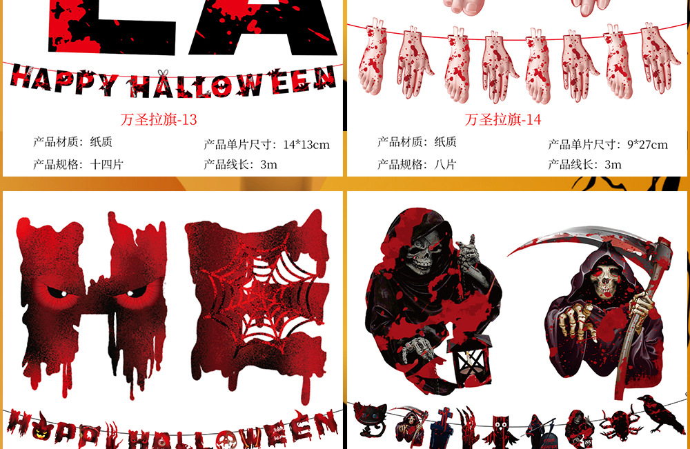 万圣节拉旗 酒店KTV鬼屋恐怖装饰家居万圣字母彩旗拉旗装饰用品