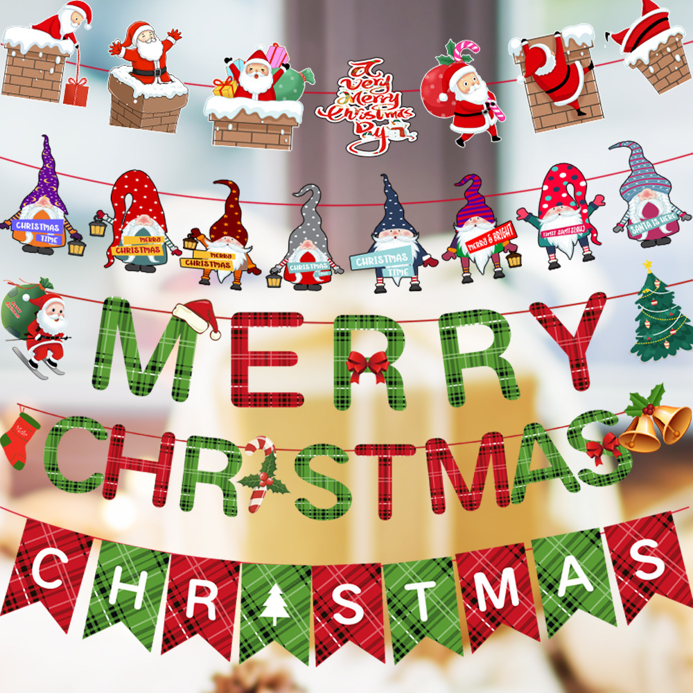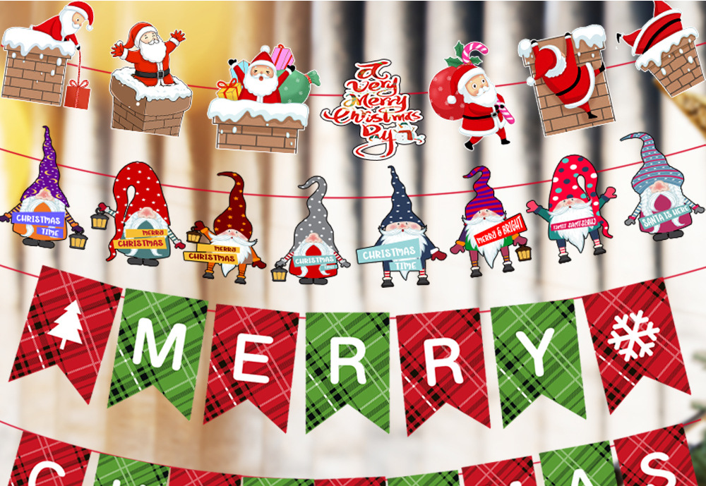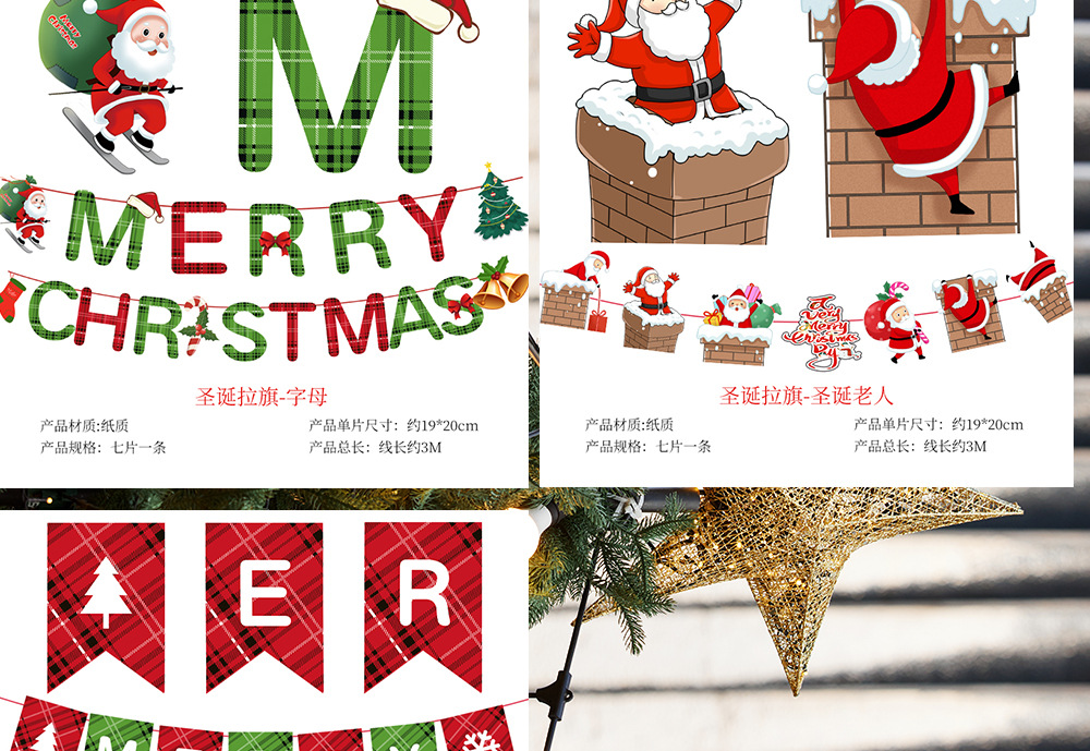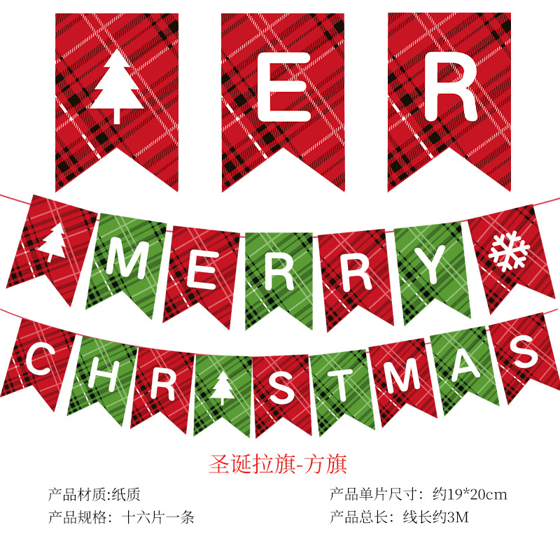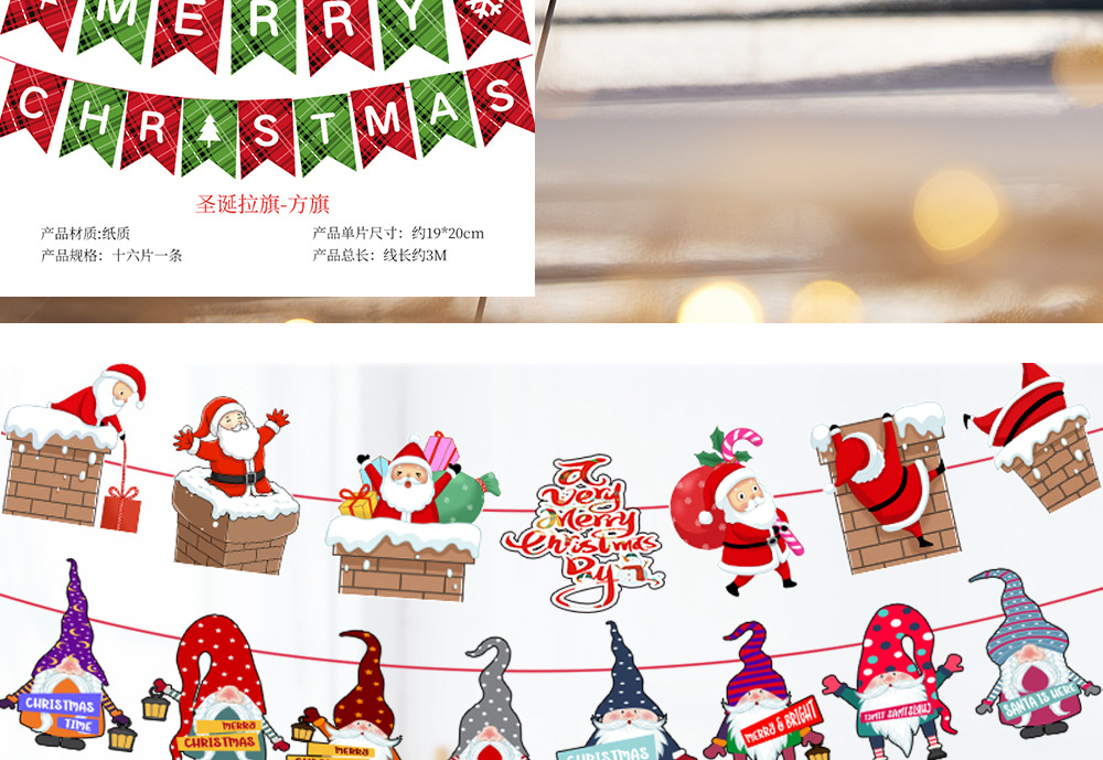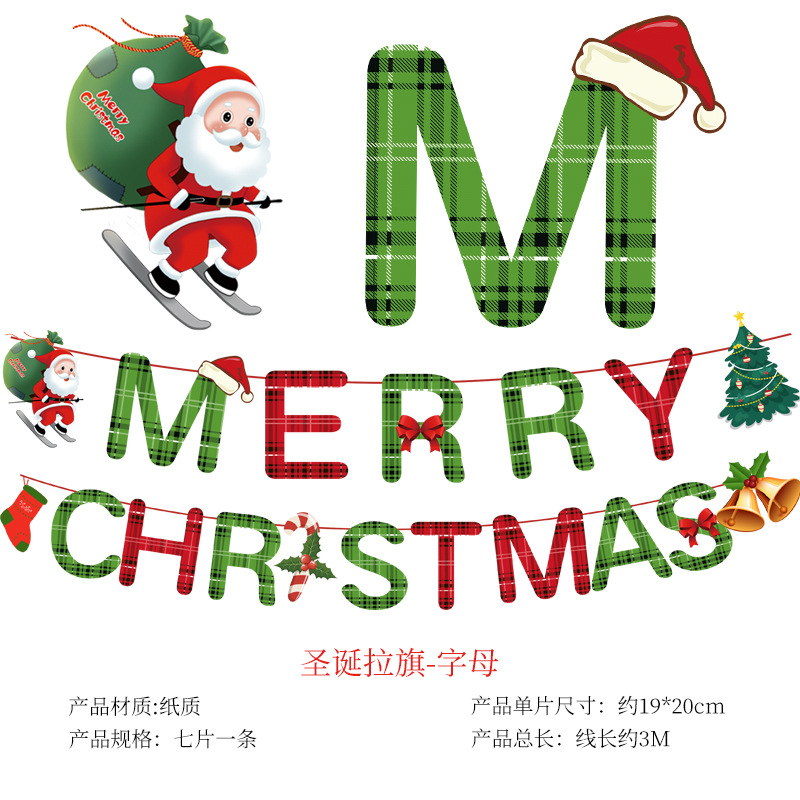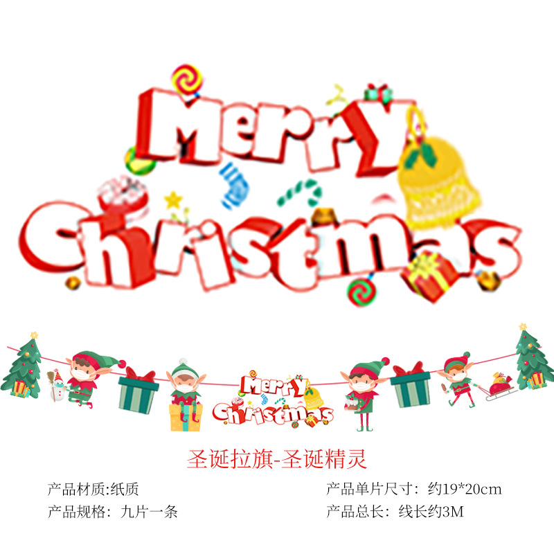 圣诞装饰品圣诞节拉旗纸质卡通气氛布置节日装饰品拉旗圣诞节装饰