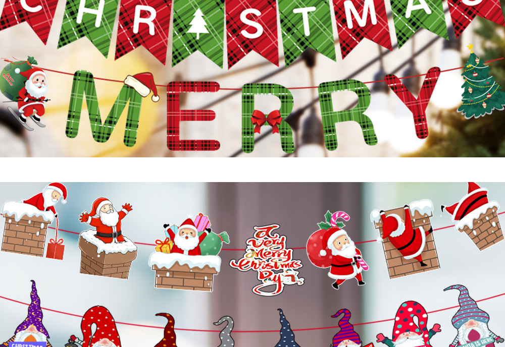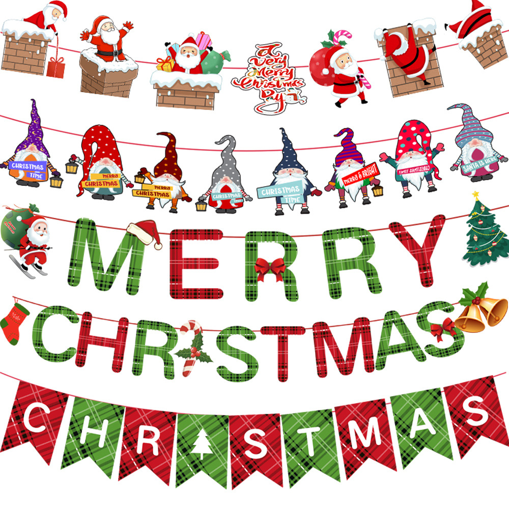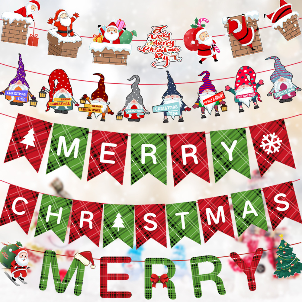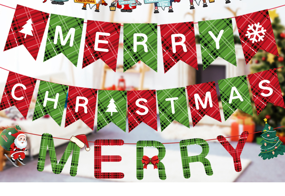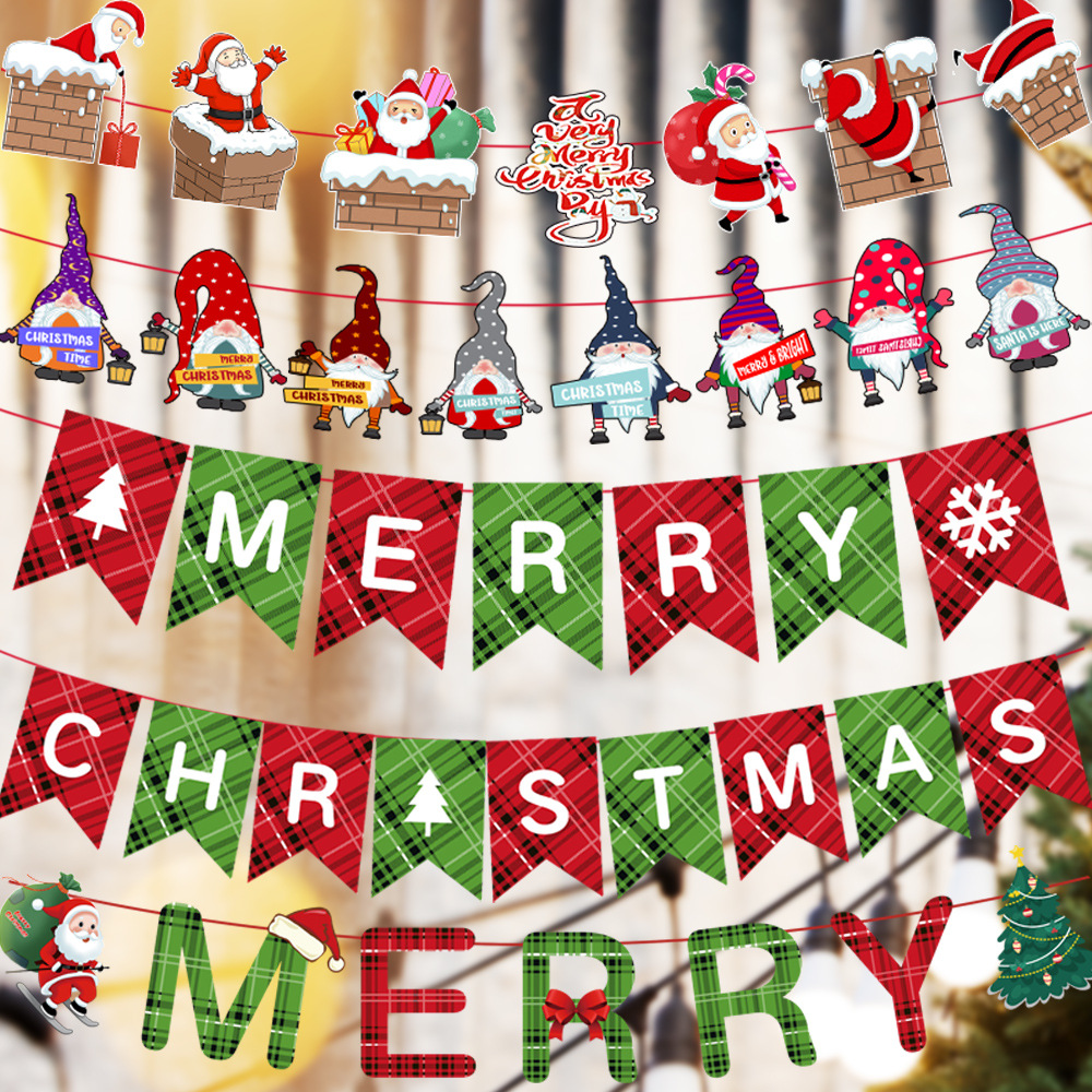 圣诞装饰品圣诞节拉旗纸质卡通气氛布置节日装饰品拉旗圣诞节装饰