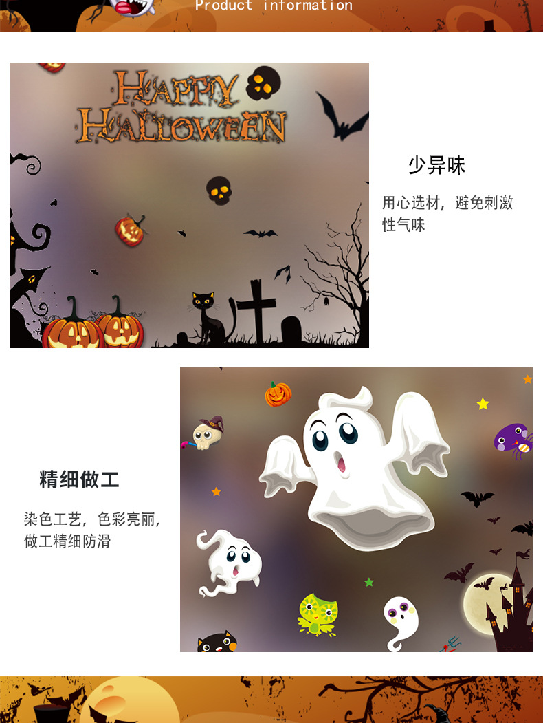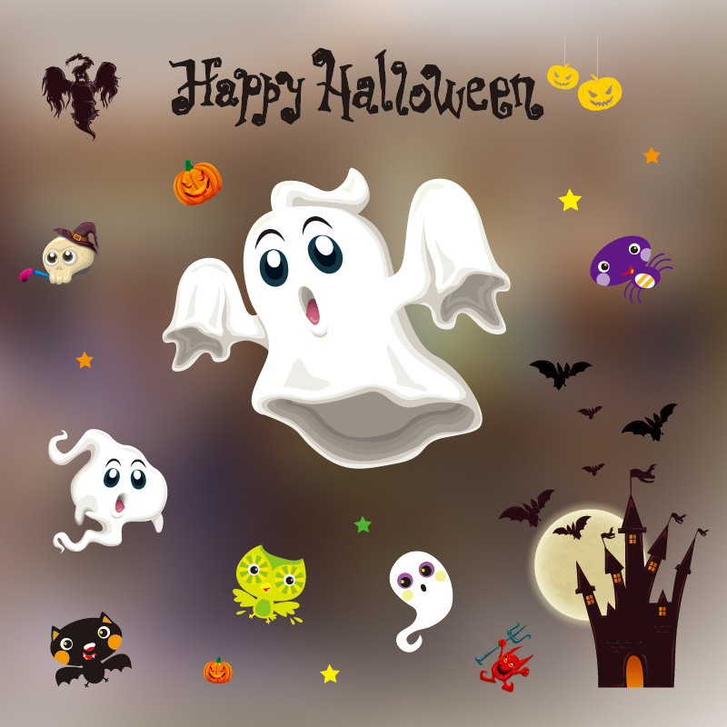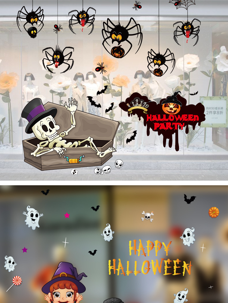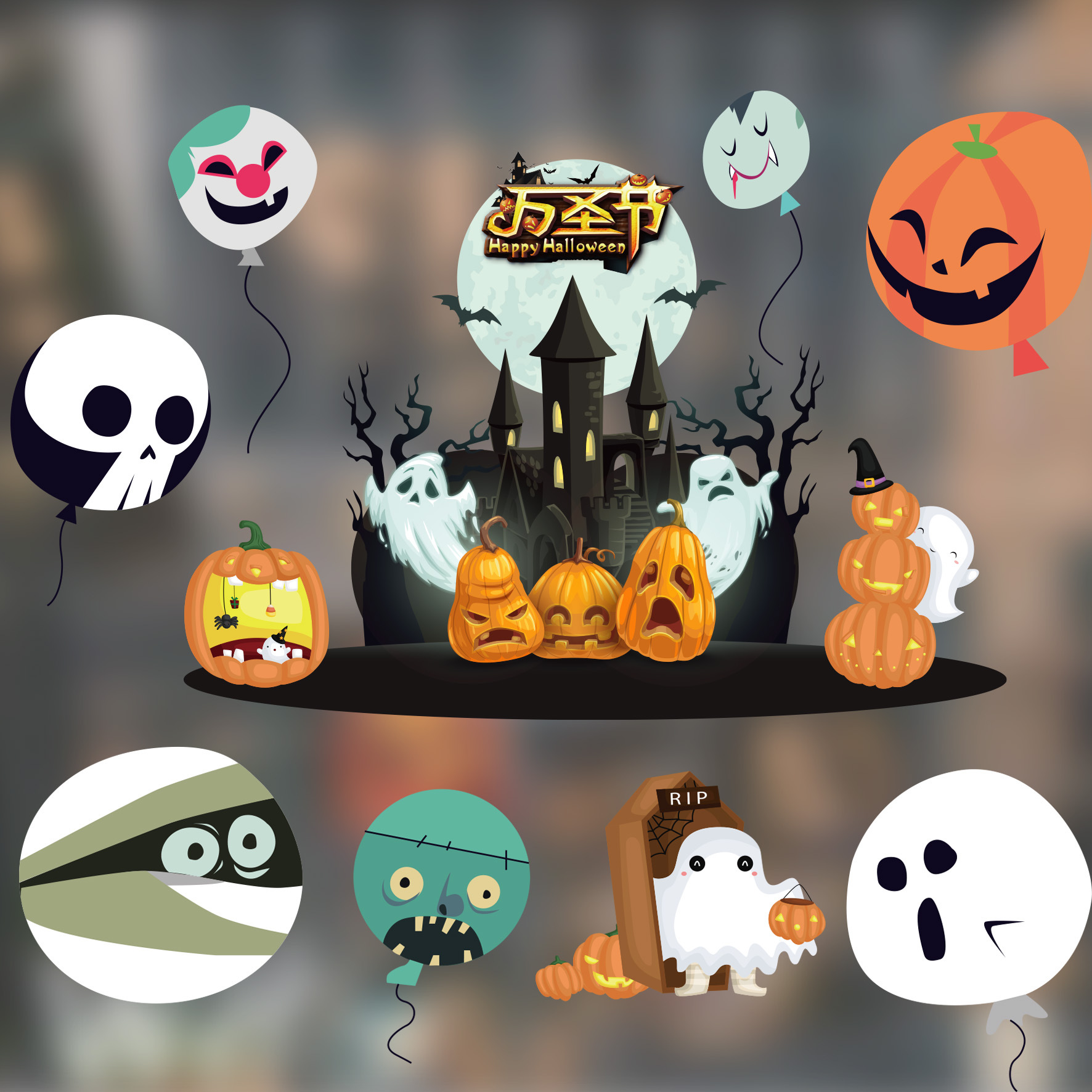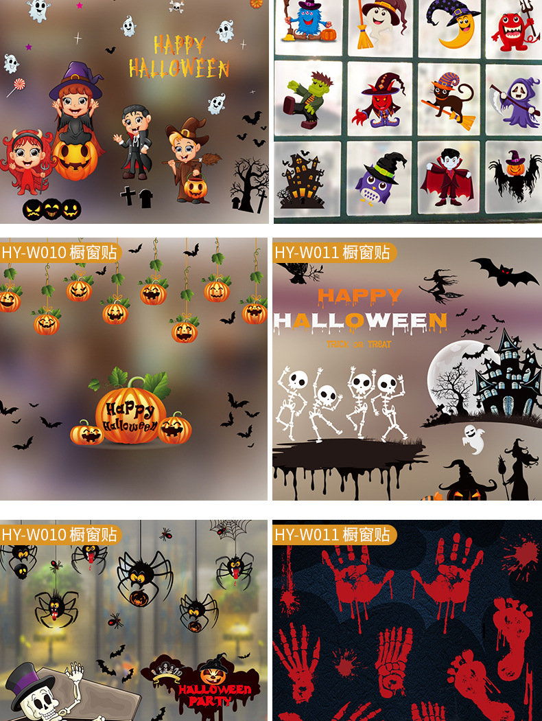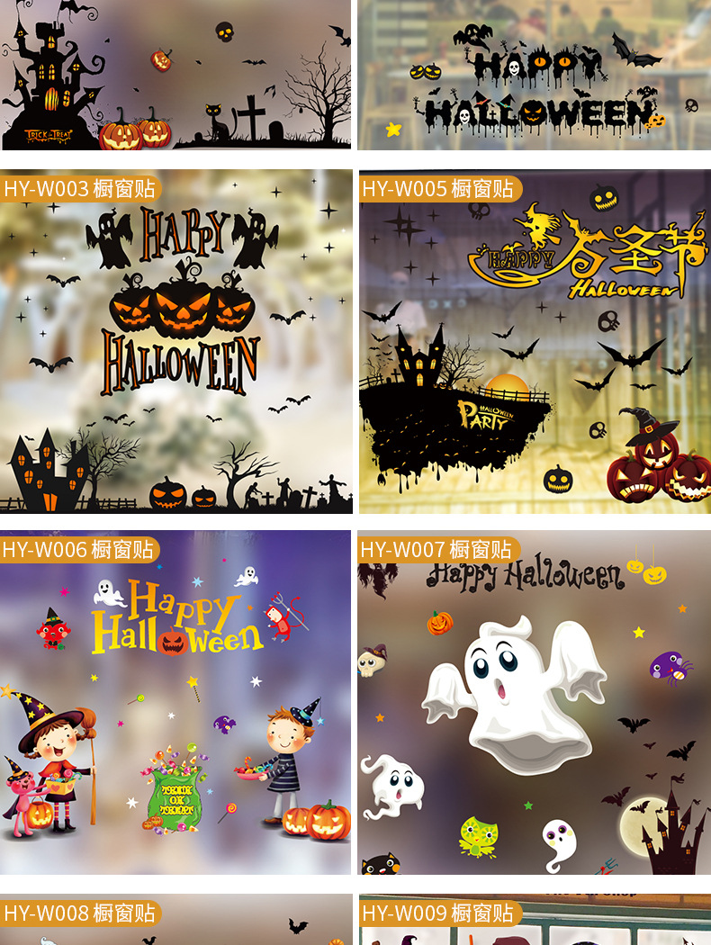 万圣节玻璃贴静电贴酒店商场橱窗贴鬼节墙贴场景布置装饰用品道具