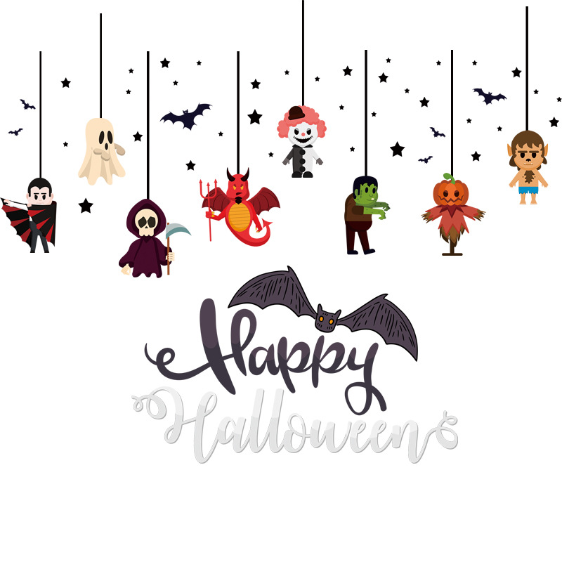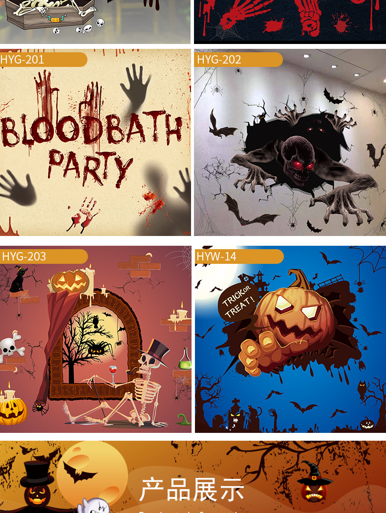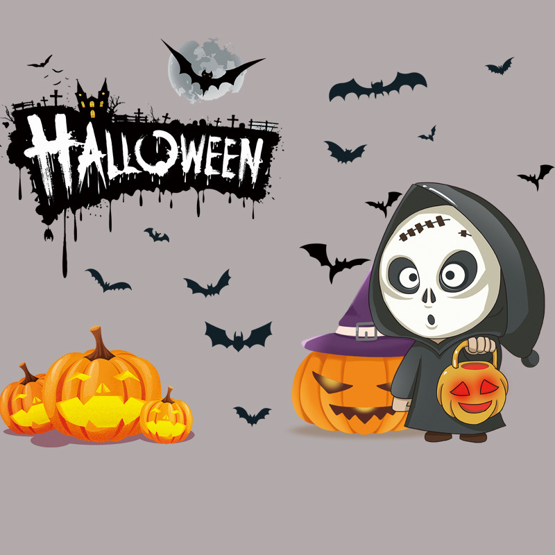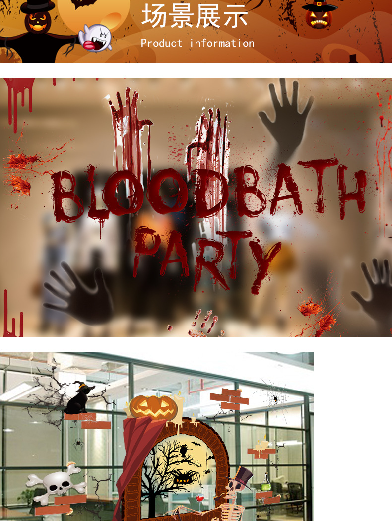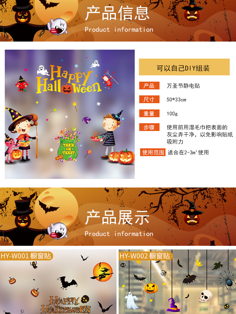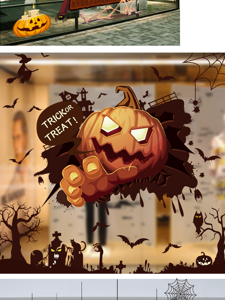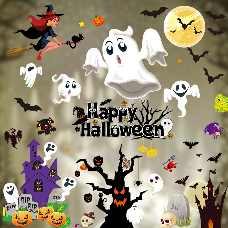 万圣节玻璃贴静电贴酒店商场橱窗贴鬼节墙贴场景布置装饰用品道具