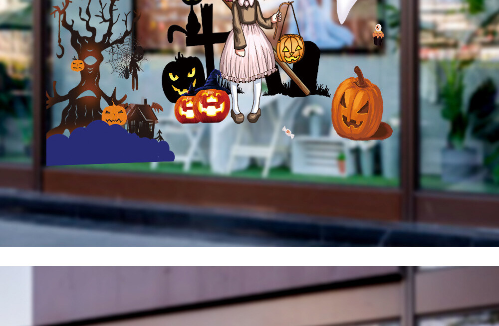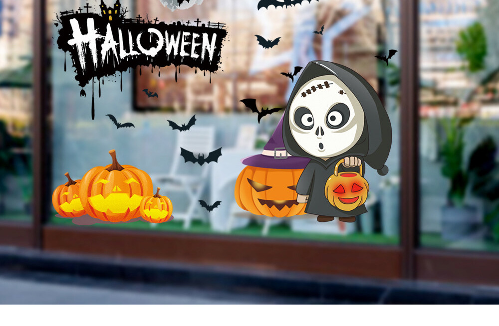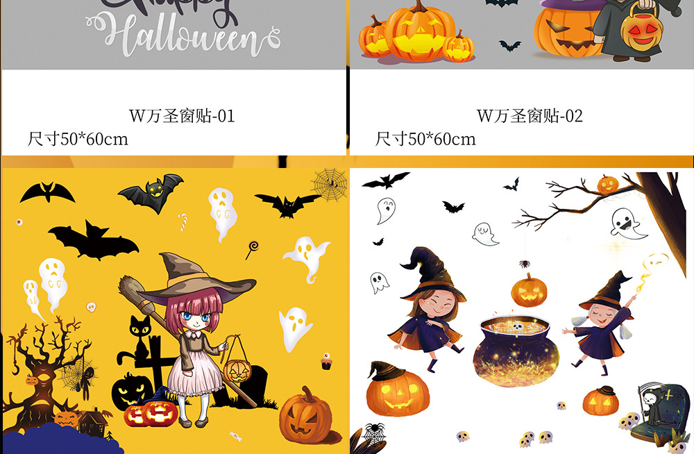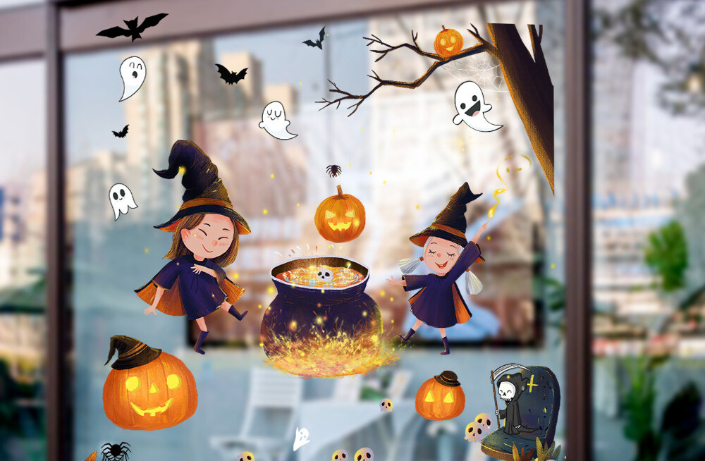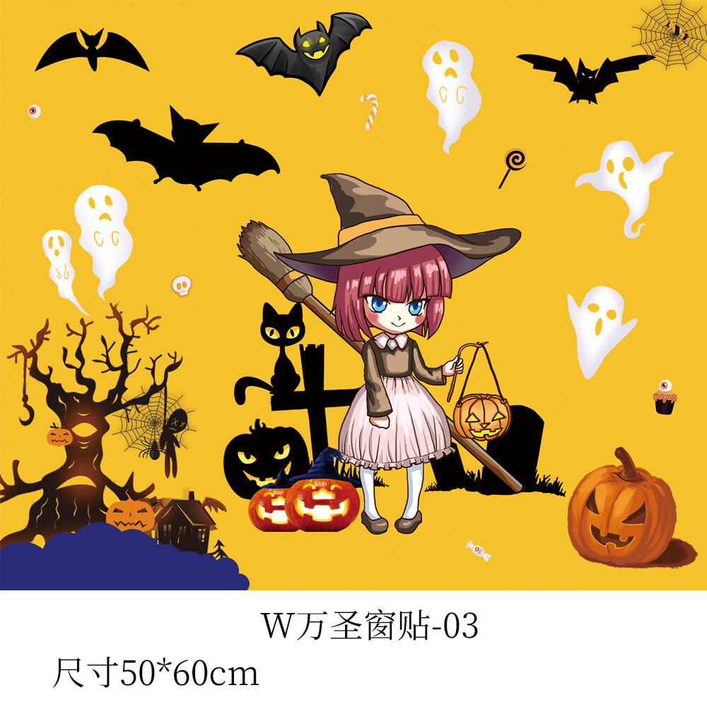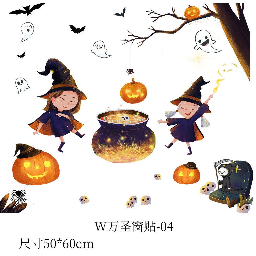 2025新款万圣节装饰窗贴女巫南瓜蝙蝠派对氛围布置橱窗贴画静电贴