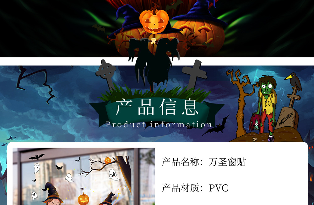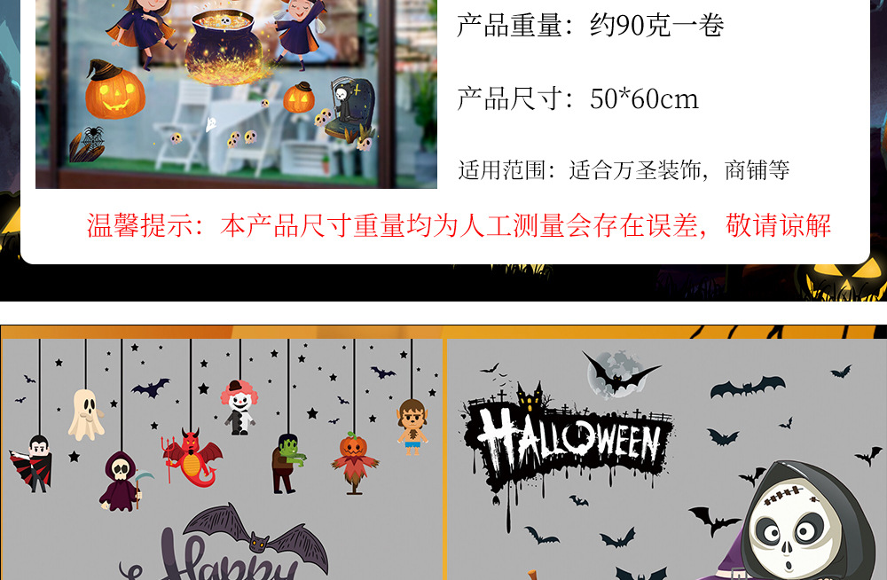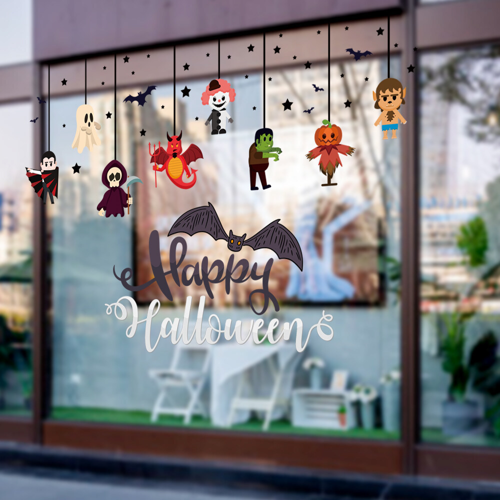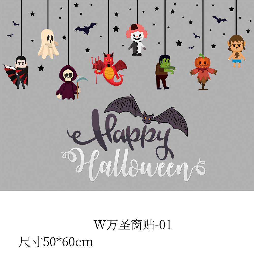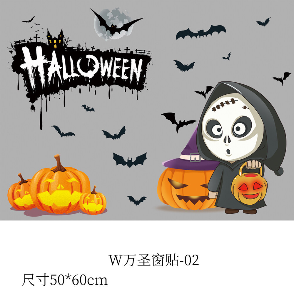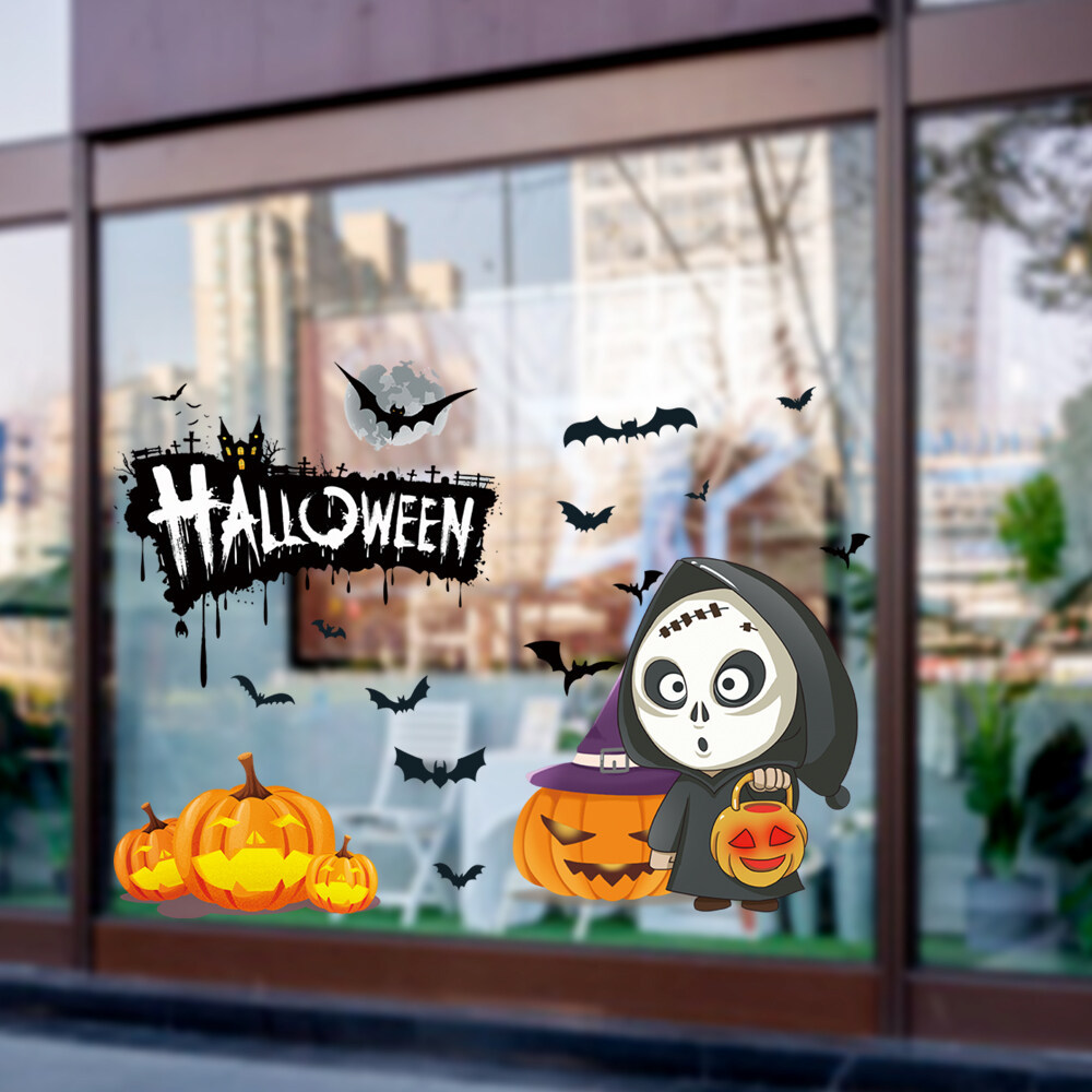 2025新款万圣节装饰窗贴女巫南瓜蝙蝠派对氛围布置橱窗贴画静电贴
