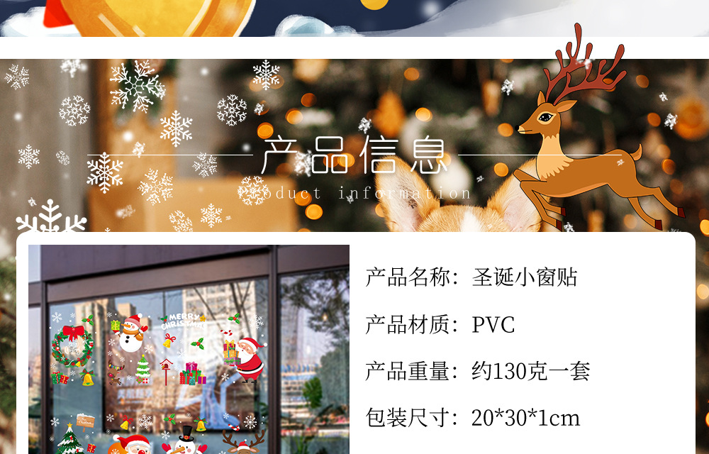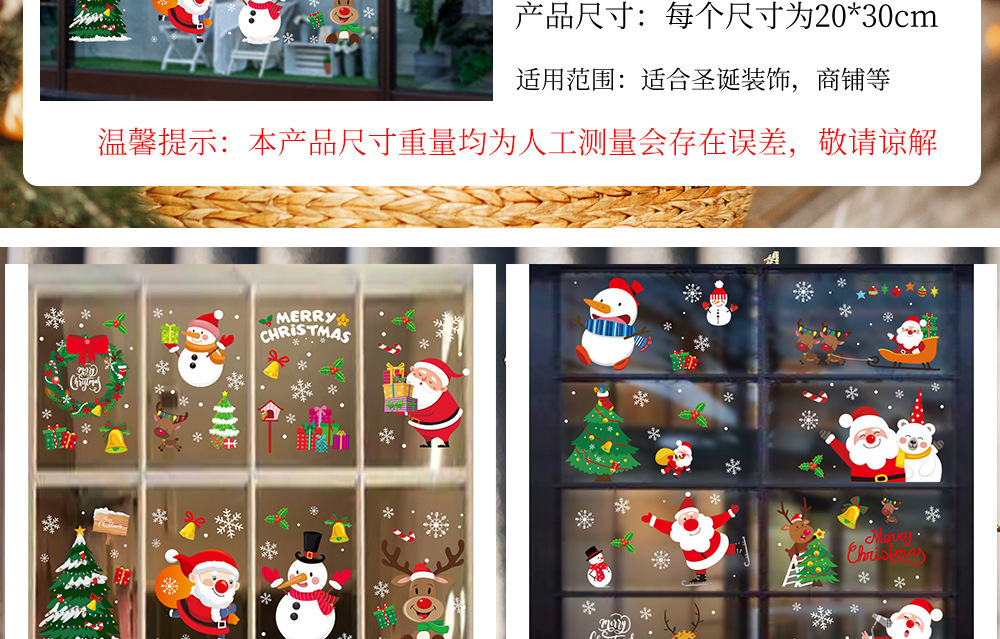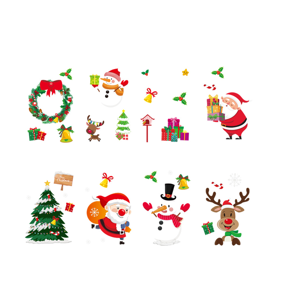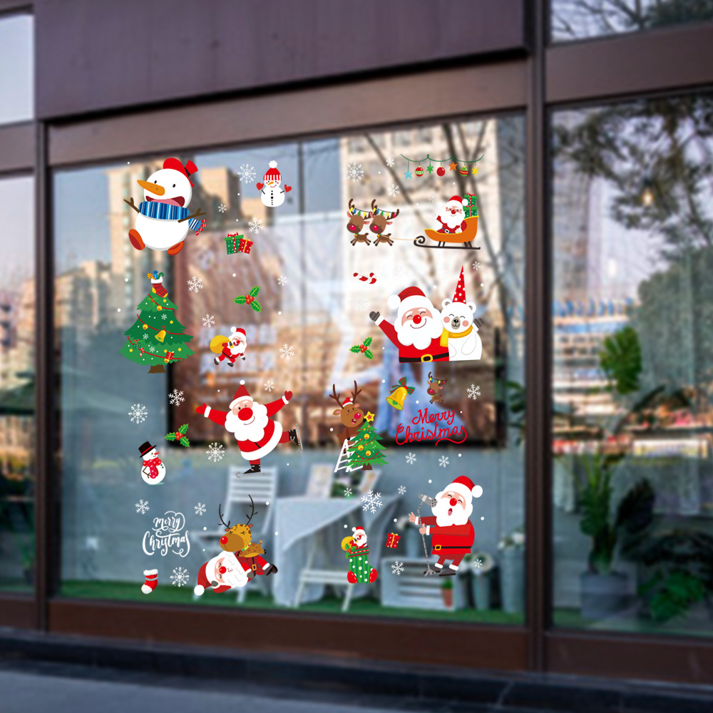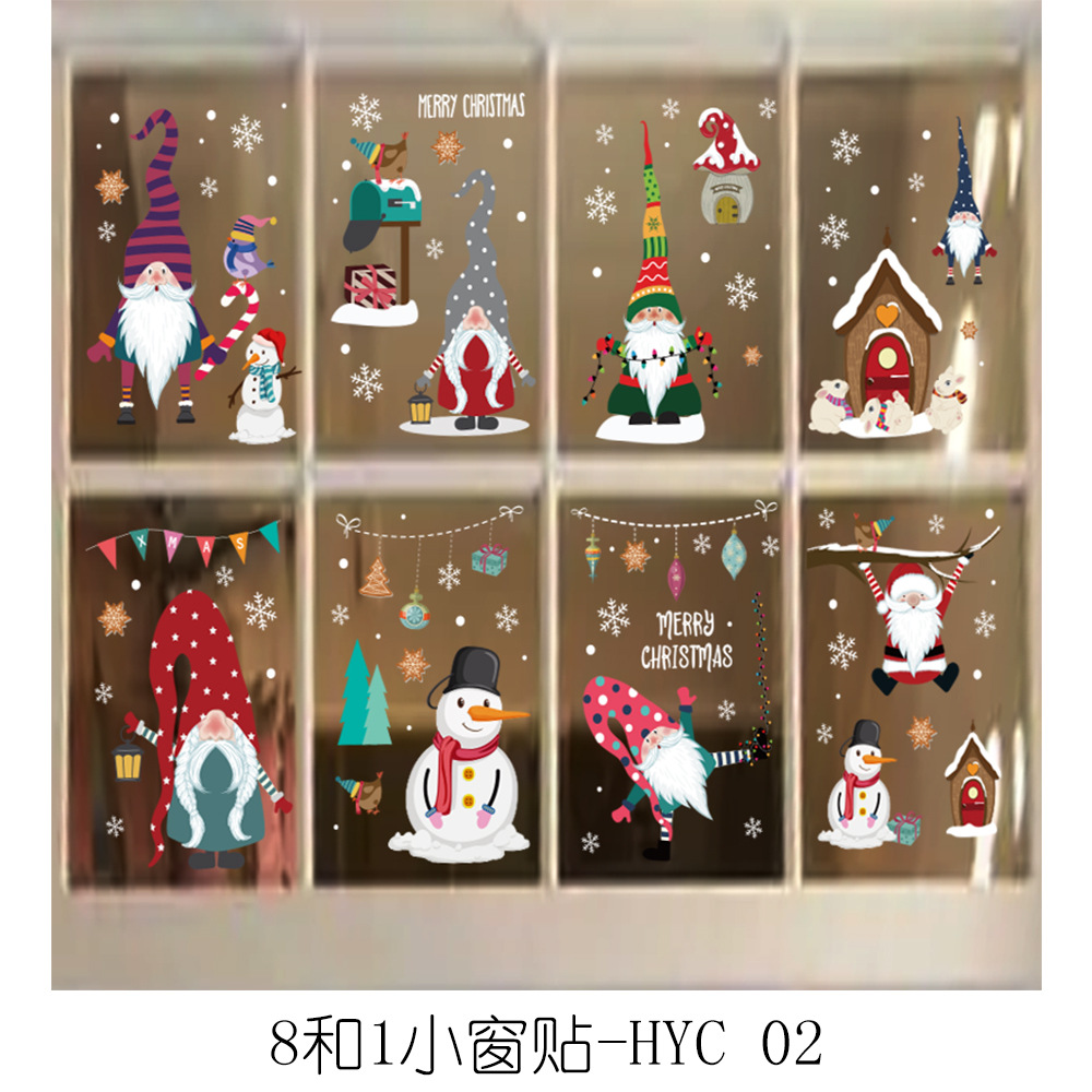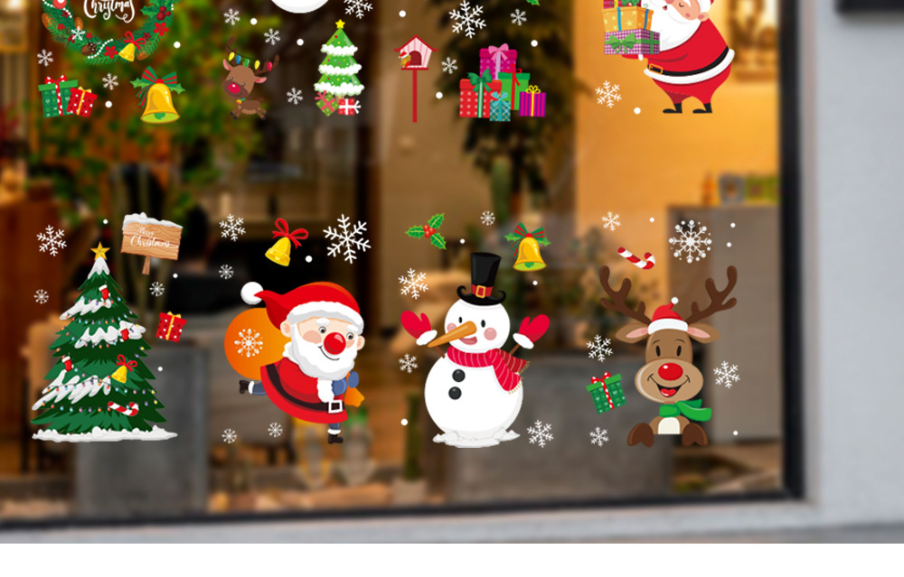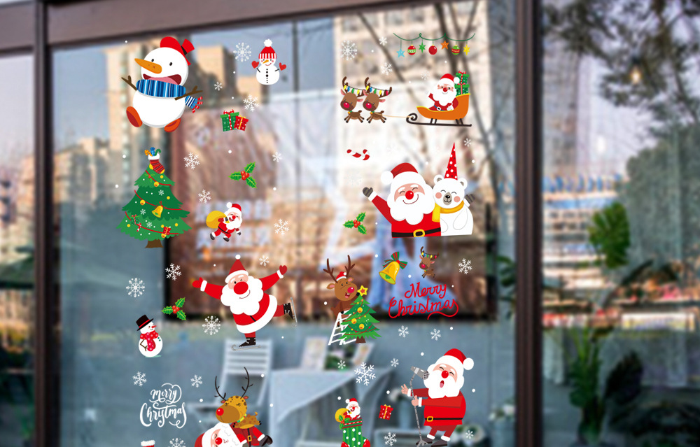 2025跨境新款圣诞节卡通静电贴 橱窗客厅雪花老人圣诞节墙贴窗贴
