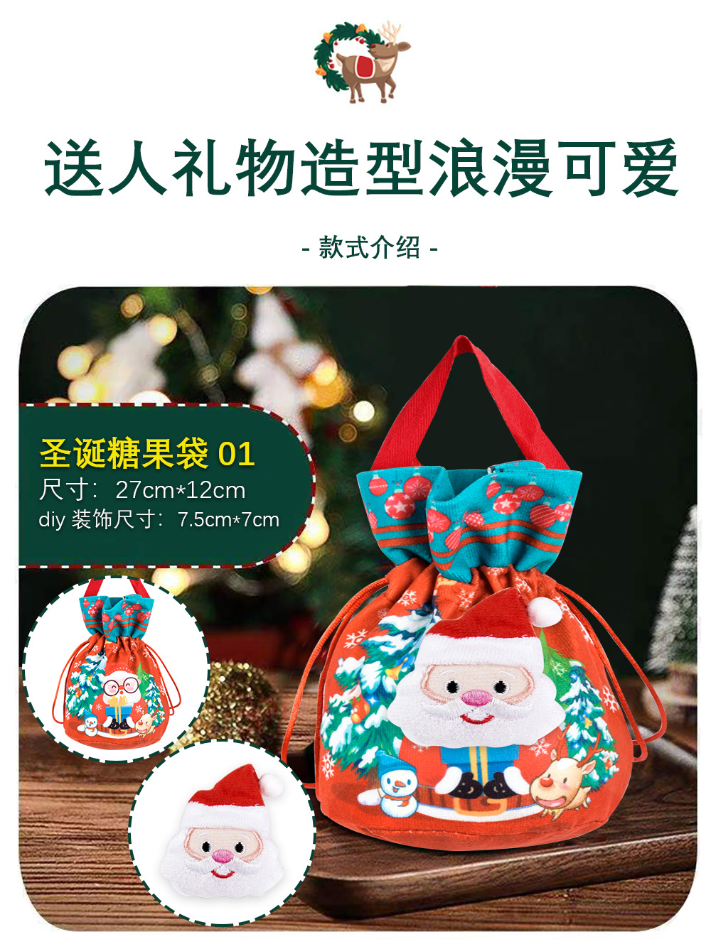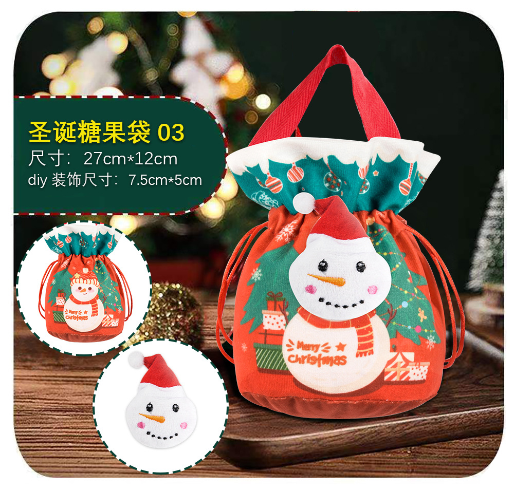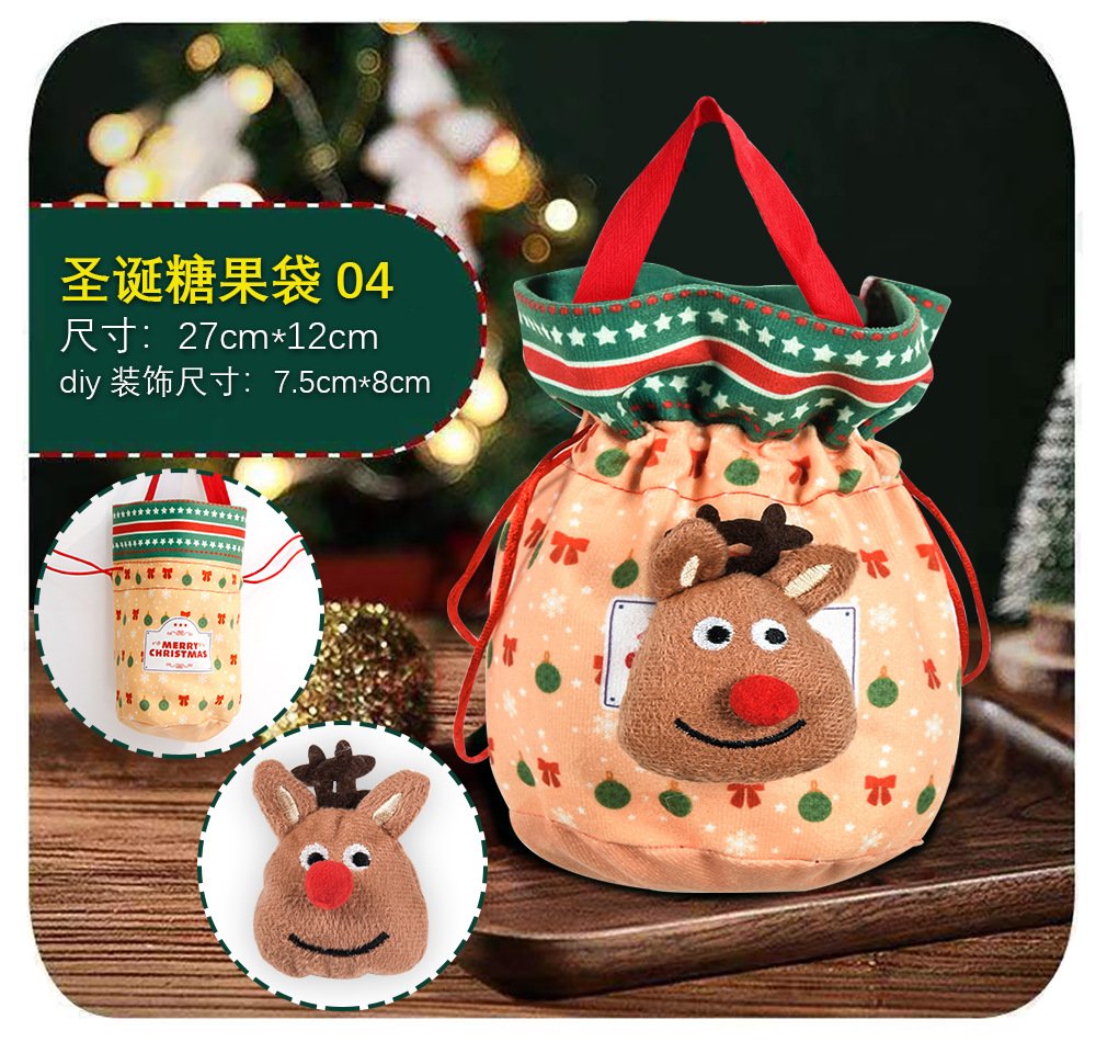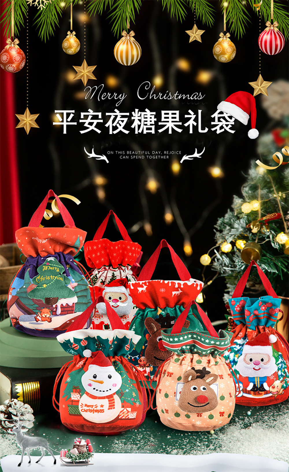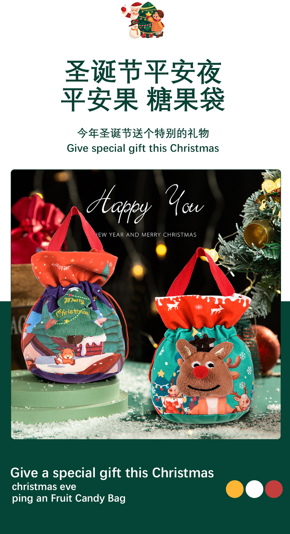 新款圣诞节苹果袋圣诞雪人麋鹿平安果礼物袋平安夜绒布糖果手提袋