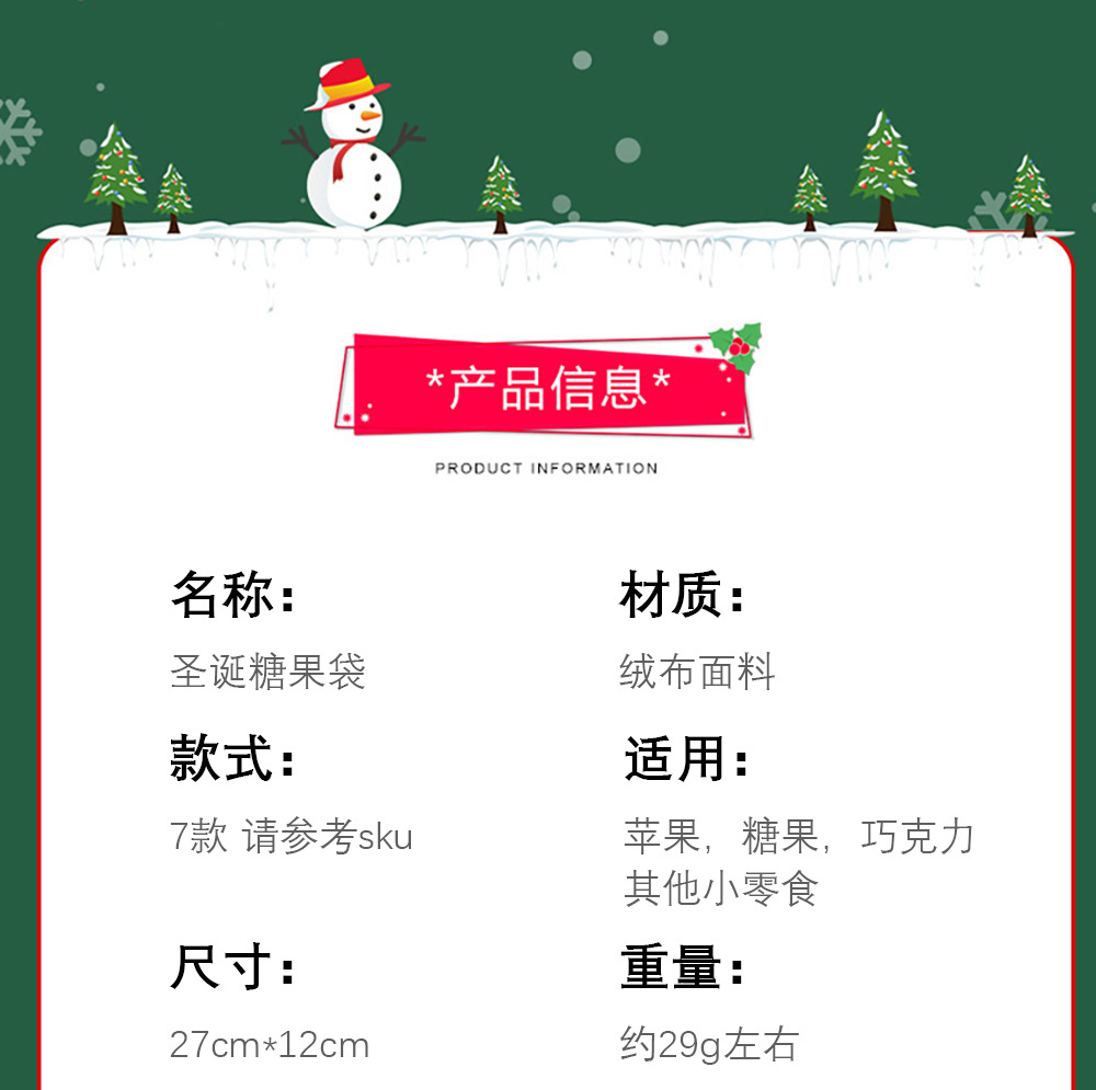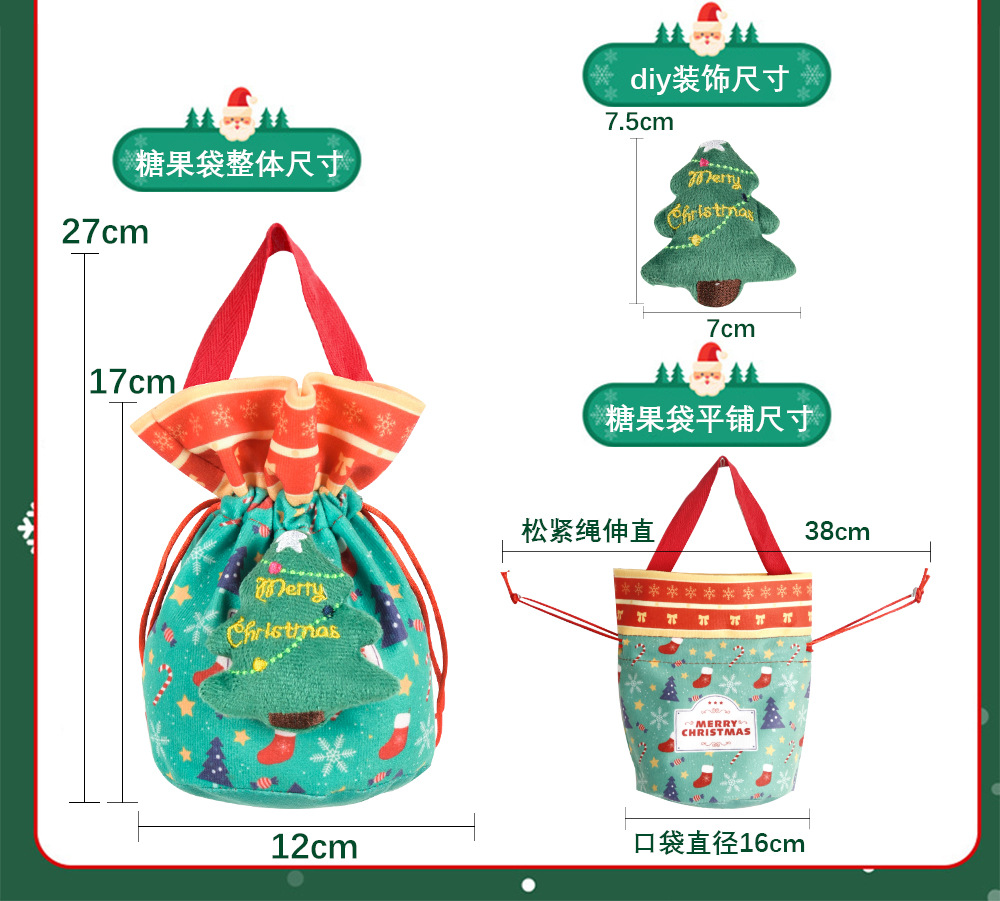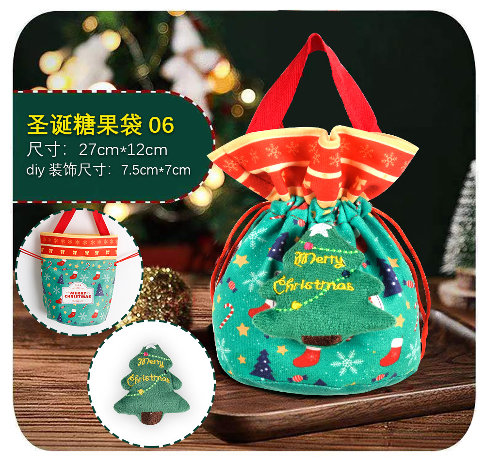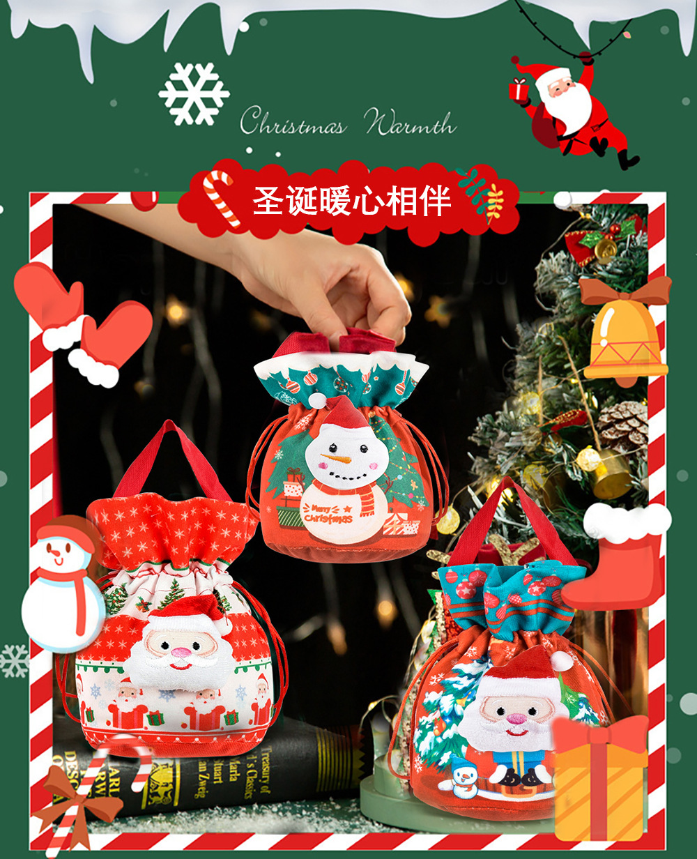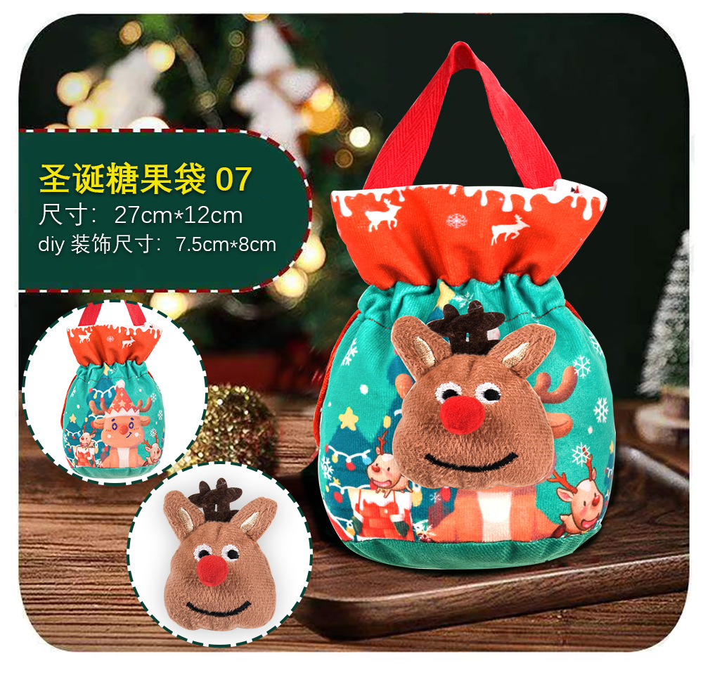 新款圣诞节苹果袋圣诞雪人麋鹿平安果礼物袋平安夜绒布糖果手提袋