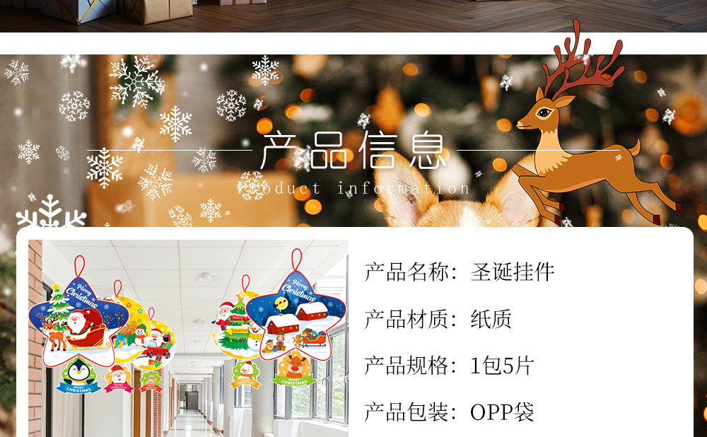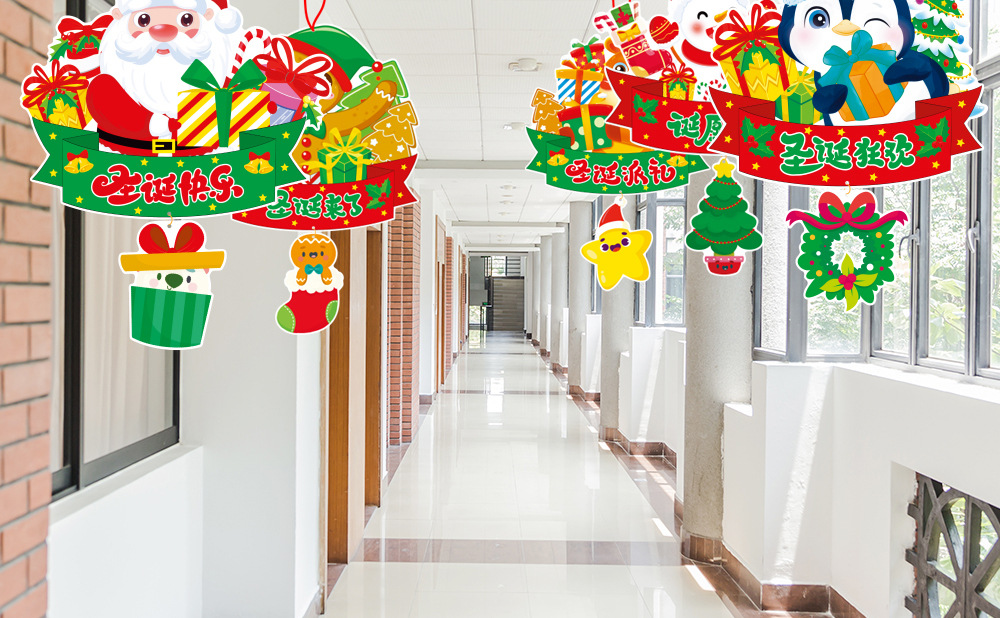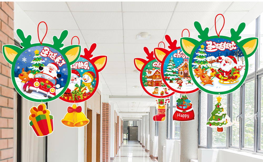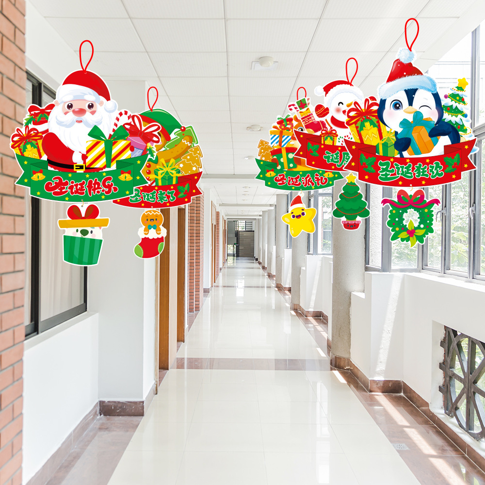 圣诞节装饰品圣诞挂件纸质商场吊顶挂饰幼儿园场景布置挂件批发