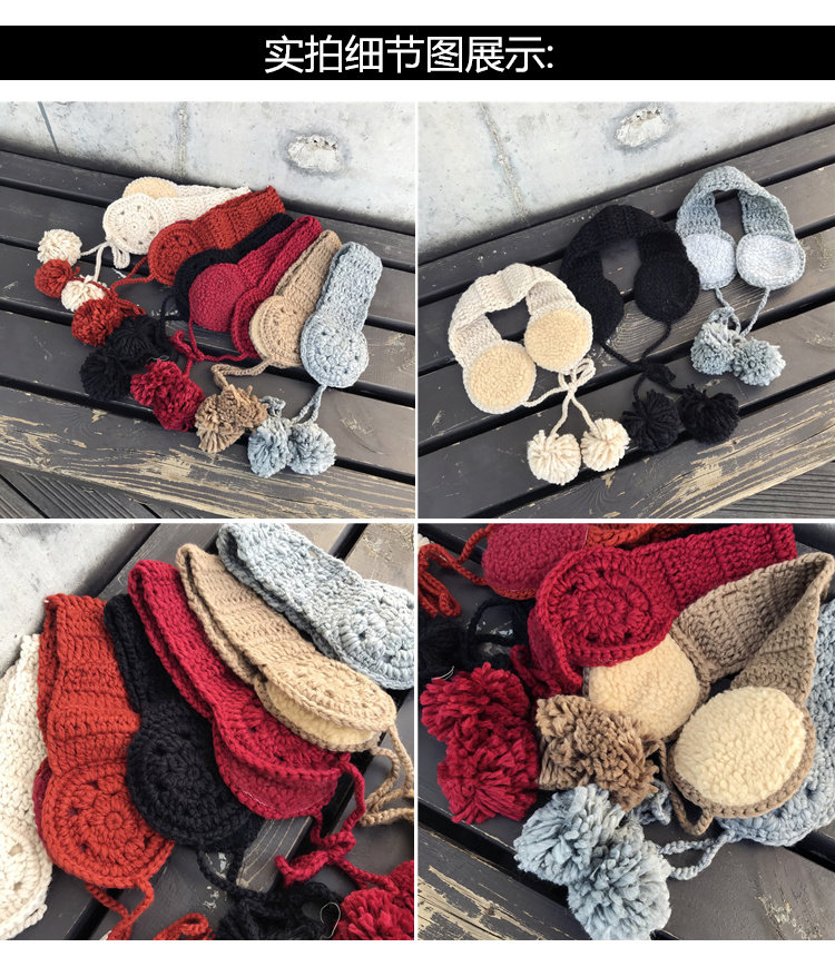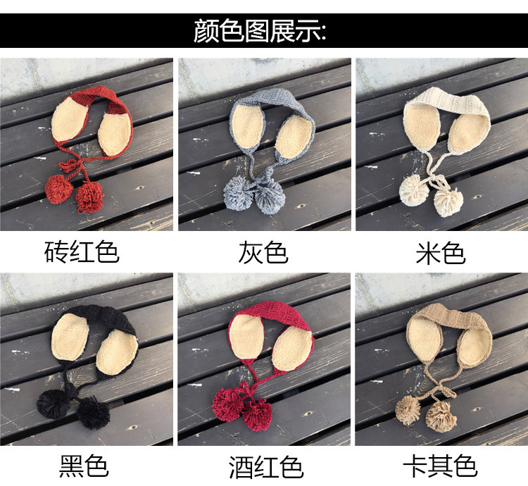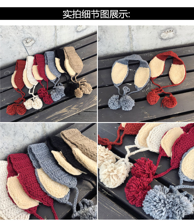 韩国ins可爱针织耳包耳朵系带毛线耳罩秋季护耳保暖复古耳套女