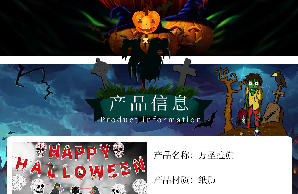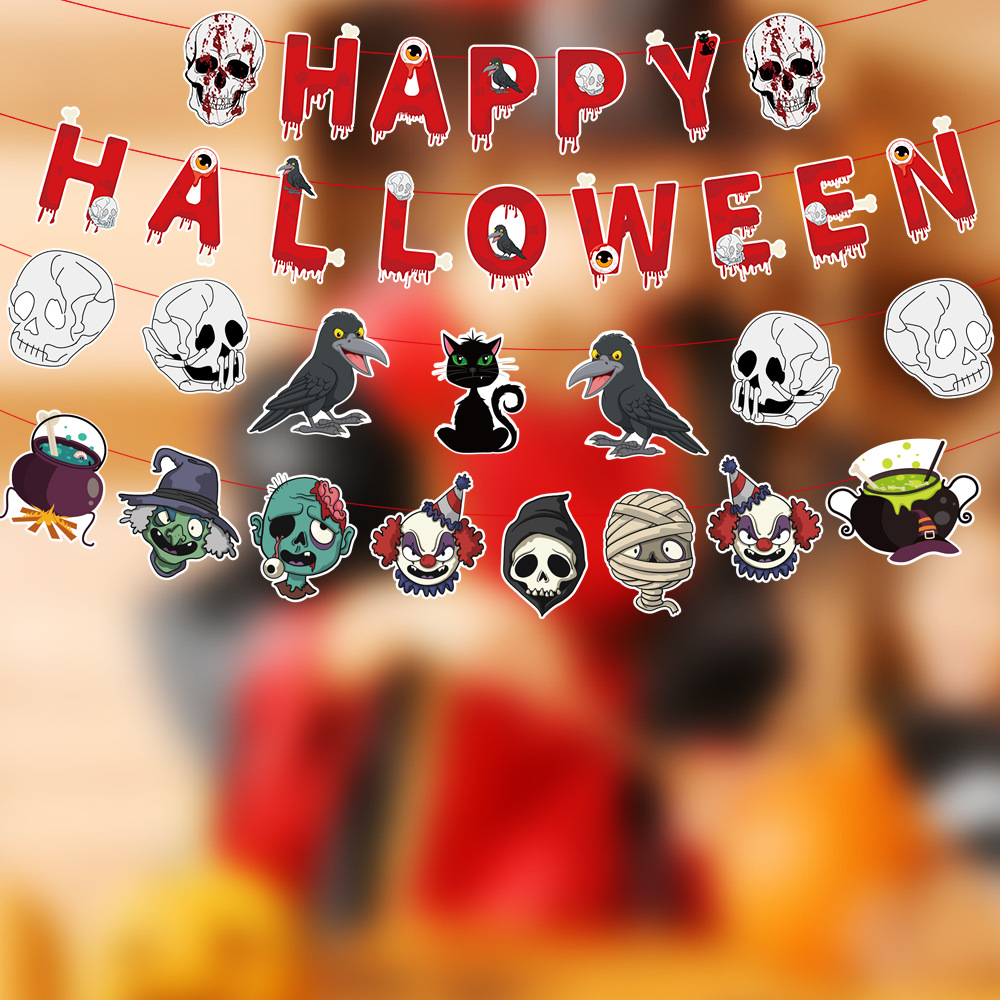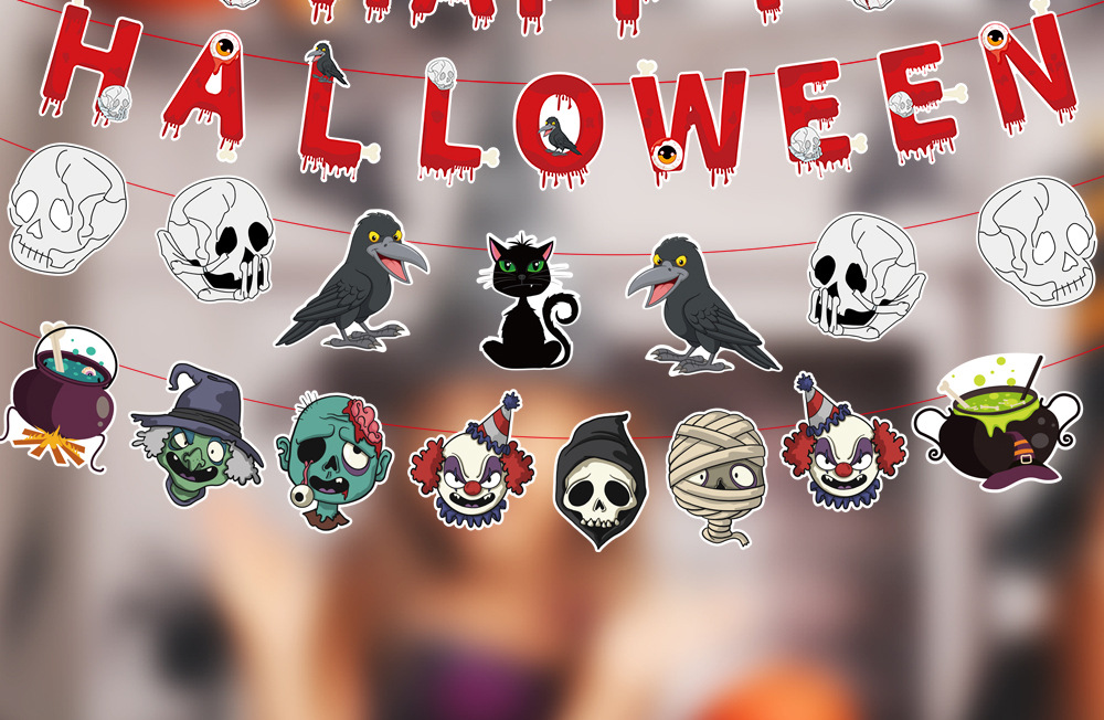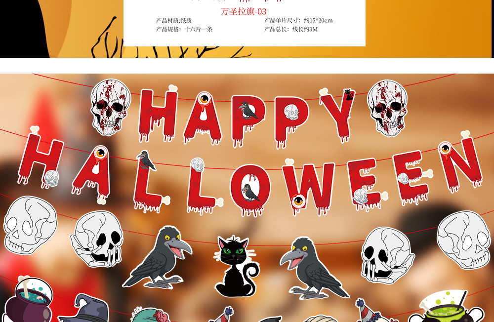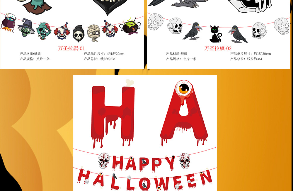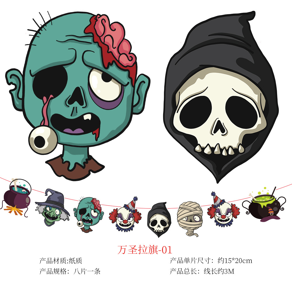 跨境新款万圣节装饰纸质拉旗商场酒吧KTV装修用品 万圣节拉旗彩旗
