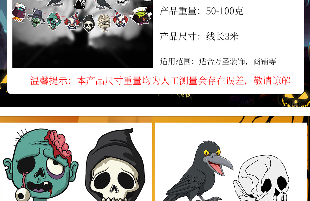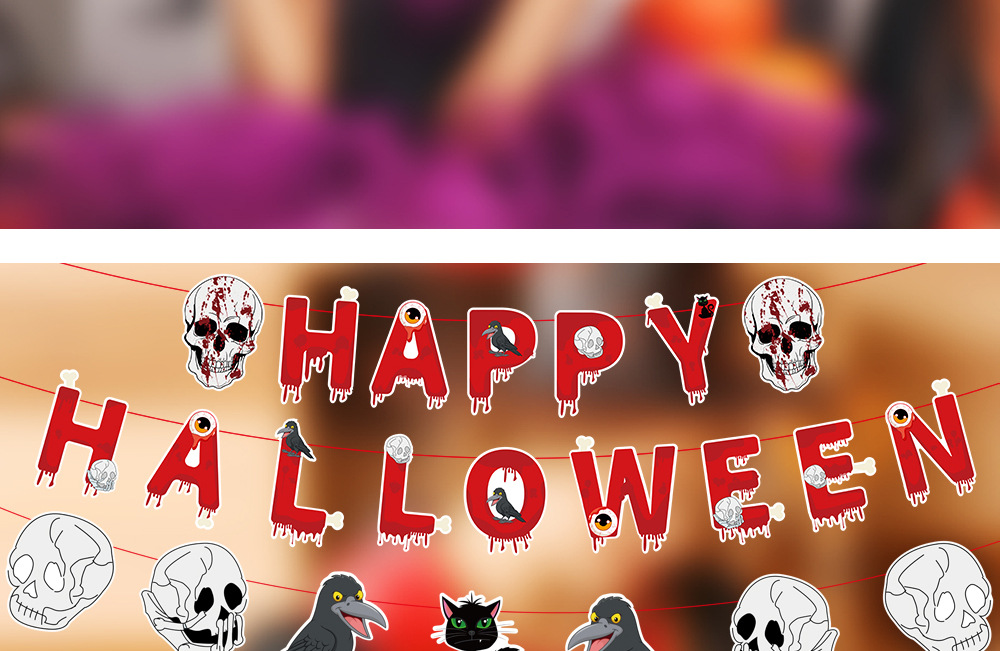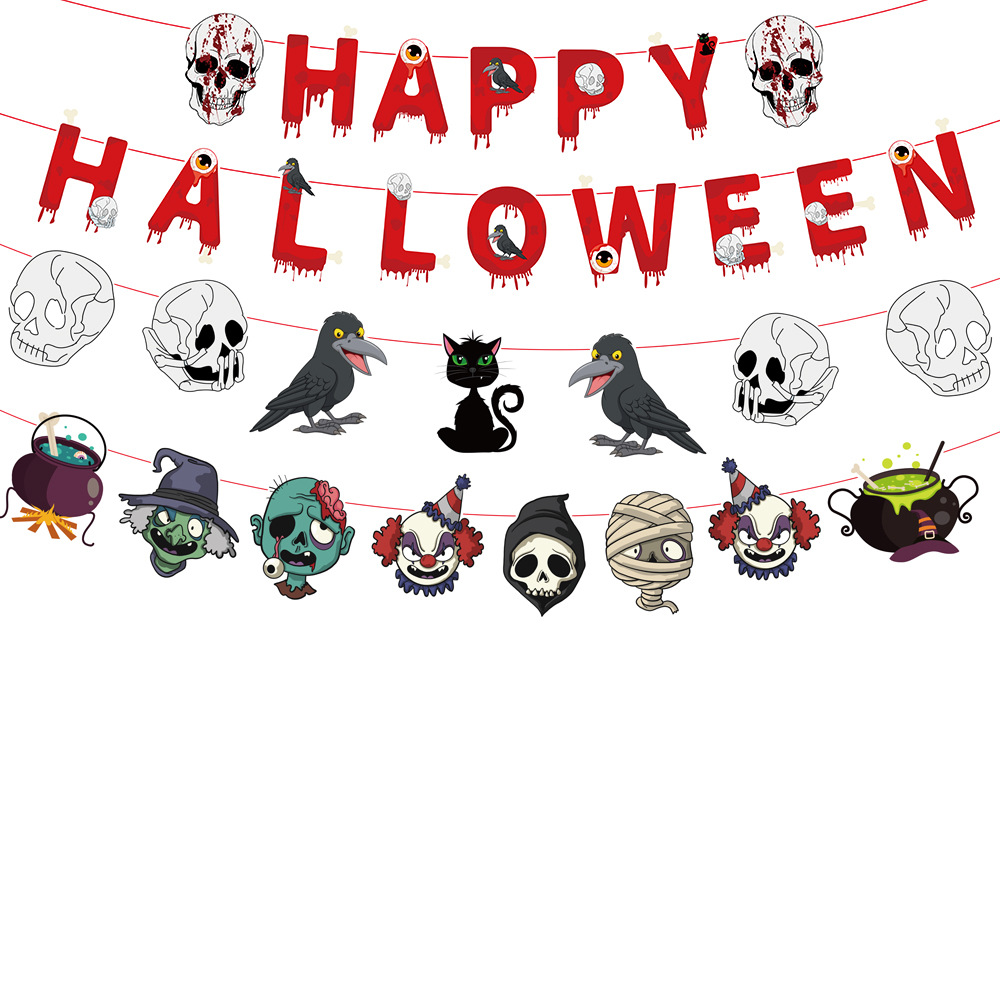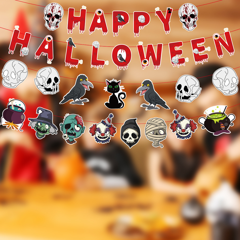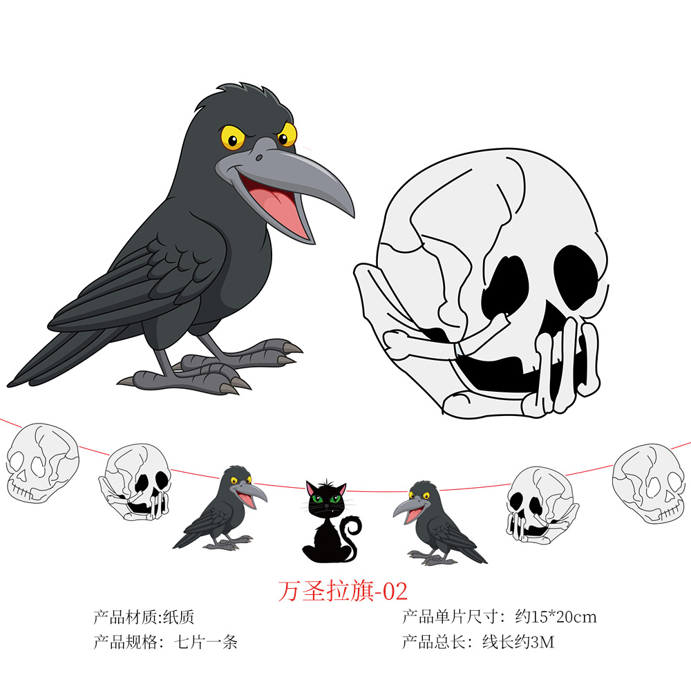 跨境新款万圣节装饰纸质拉旗商场酒吧KTV装修用品 万圣节拉旗彩旗