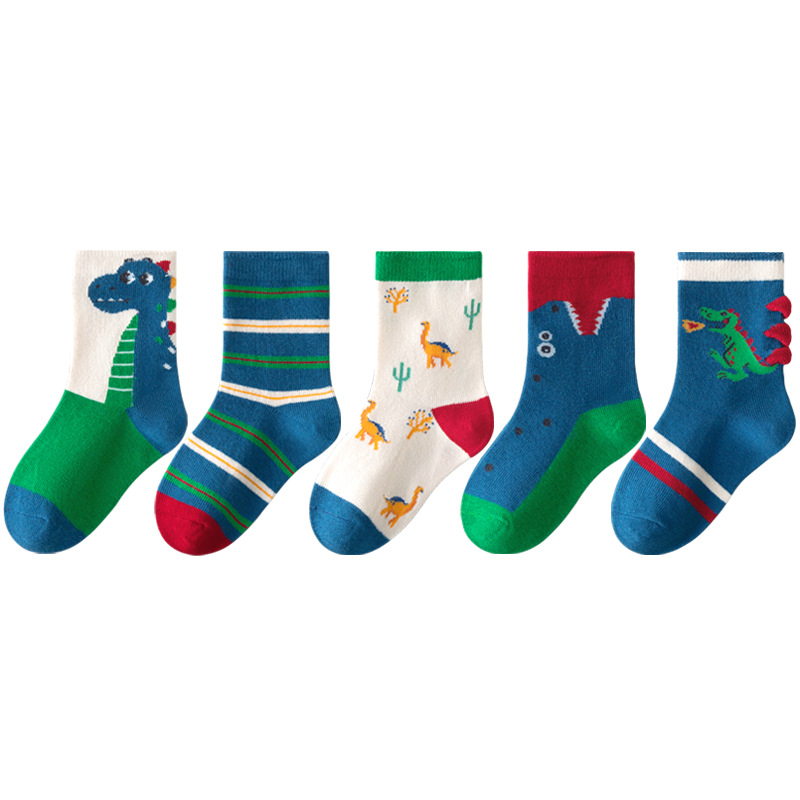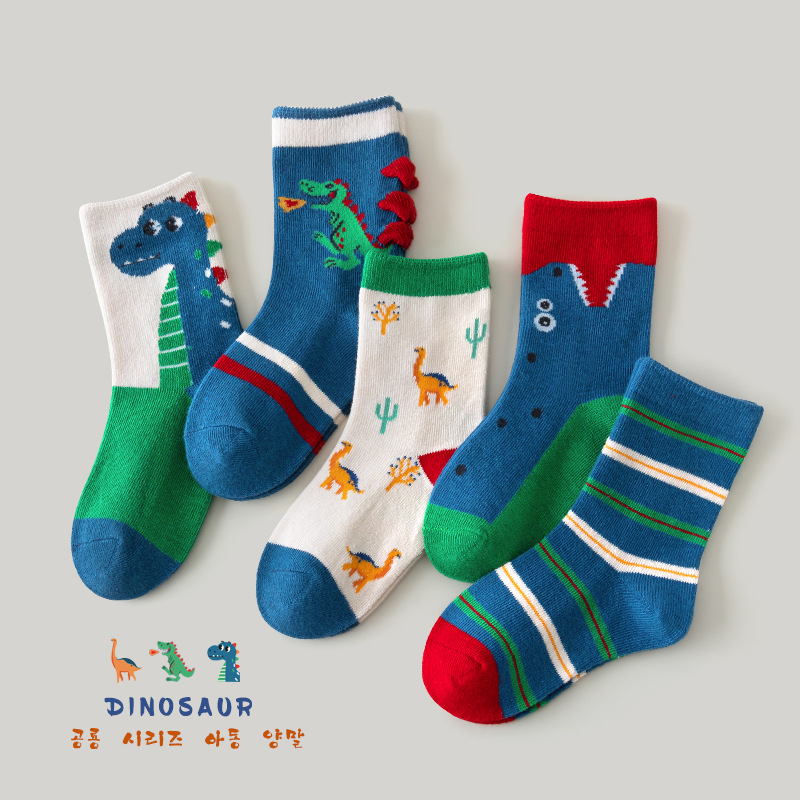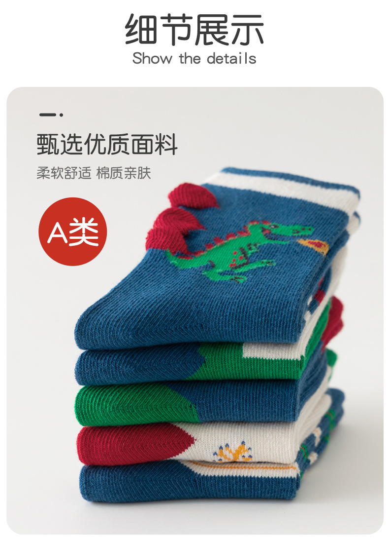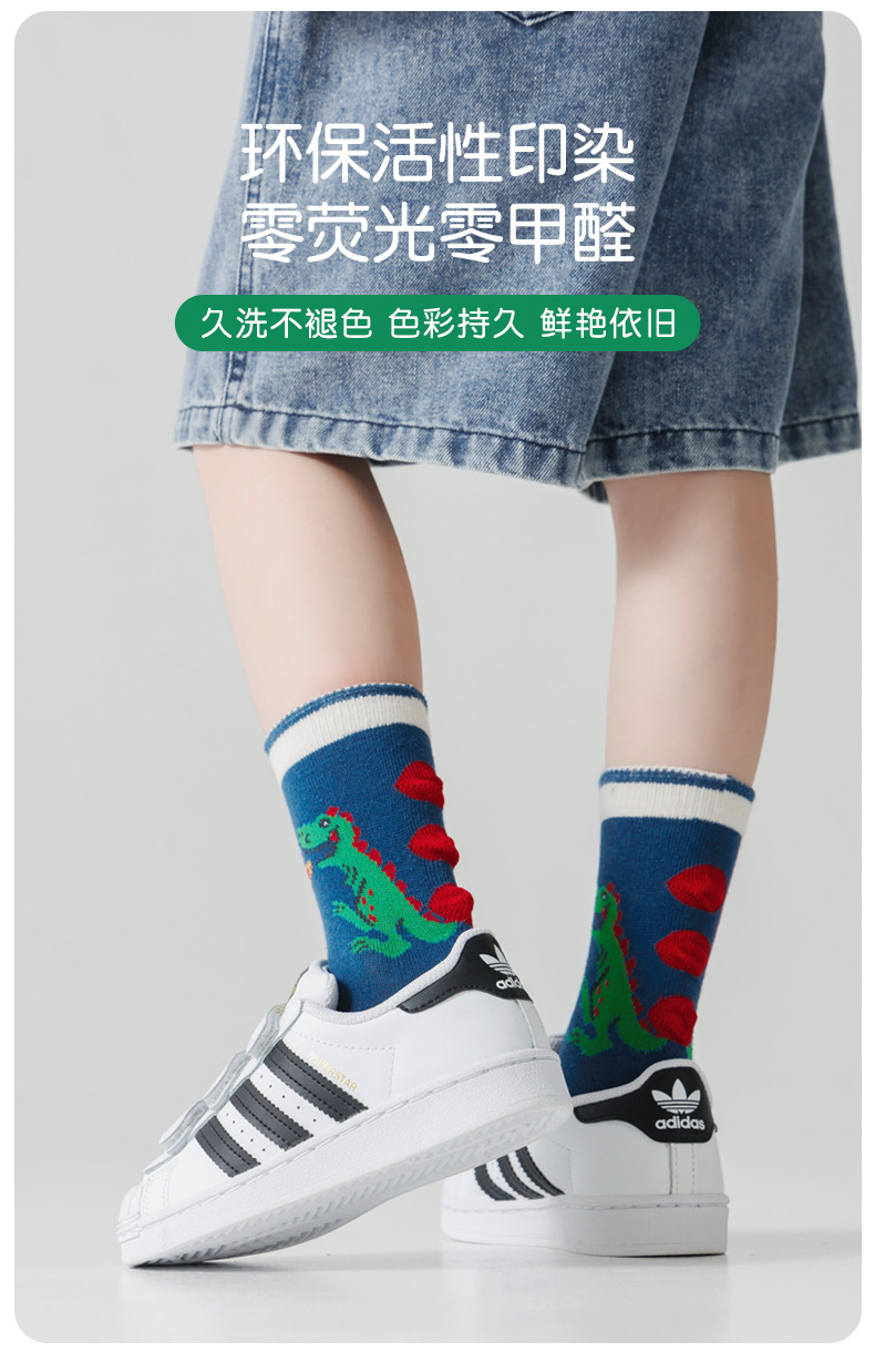 2023秋季男童中筒袜恐龙棉袜男宝宝卡通袜子男孩春秋童袜儿童袜子