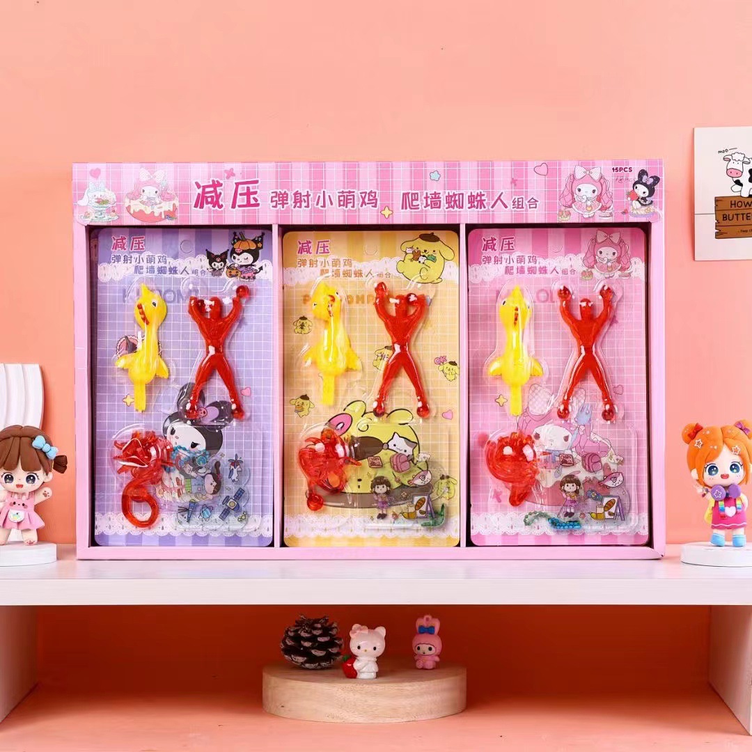 减压弹射小萌鸡爬墙蜘蛛人组合套装 创意解压神器萌鸡爬墙蜘蛛人