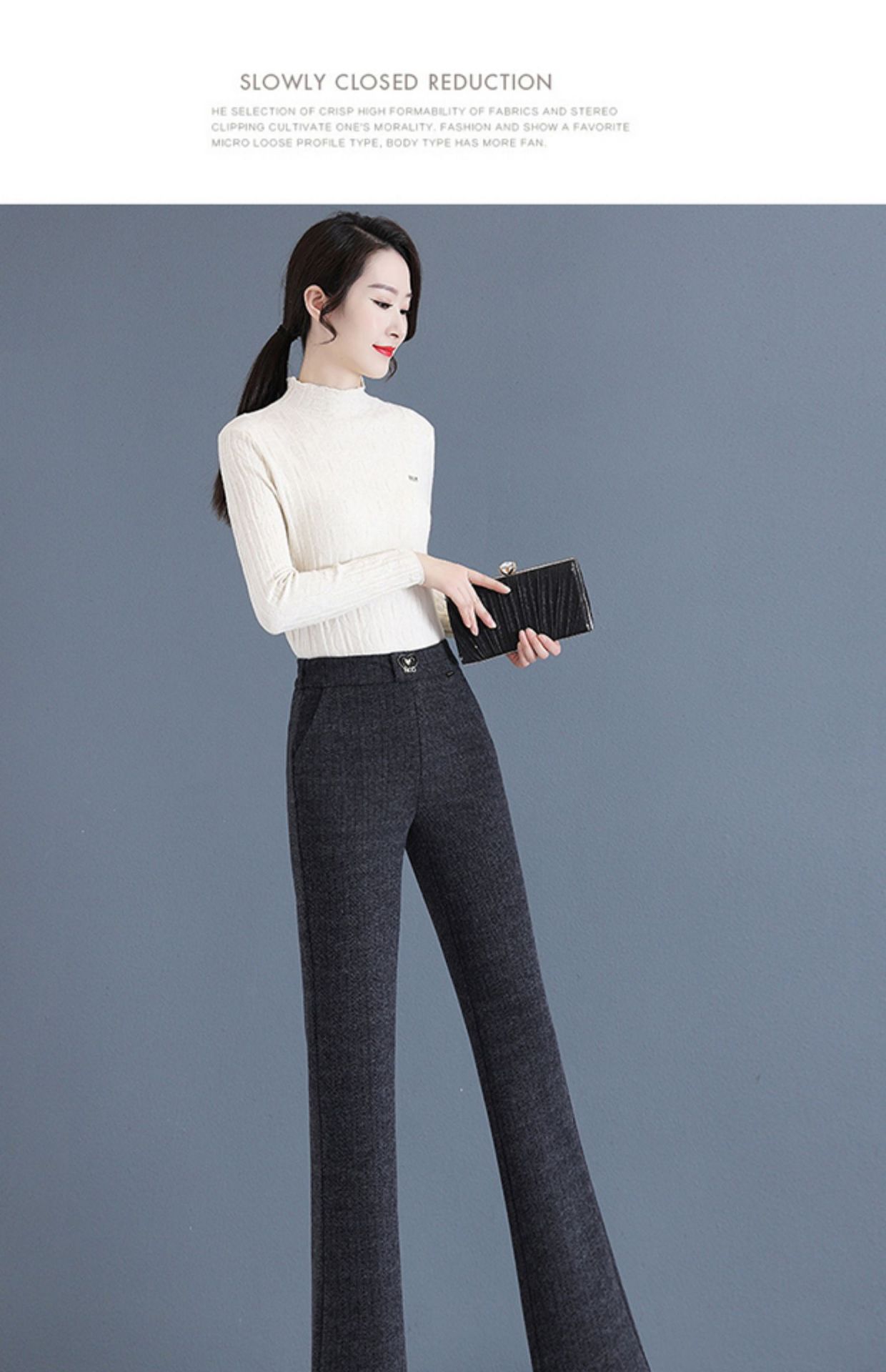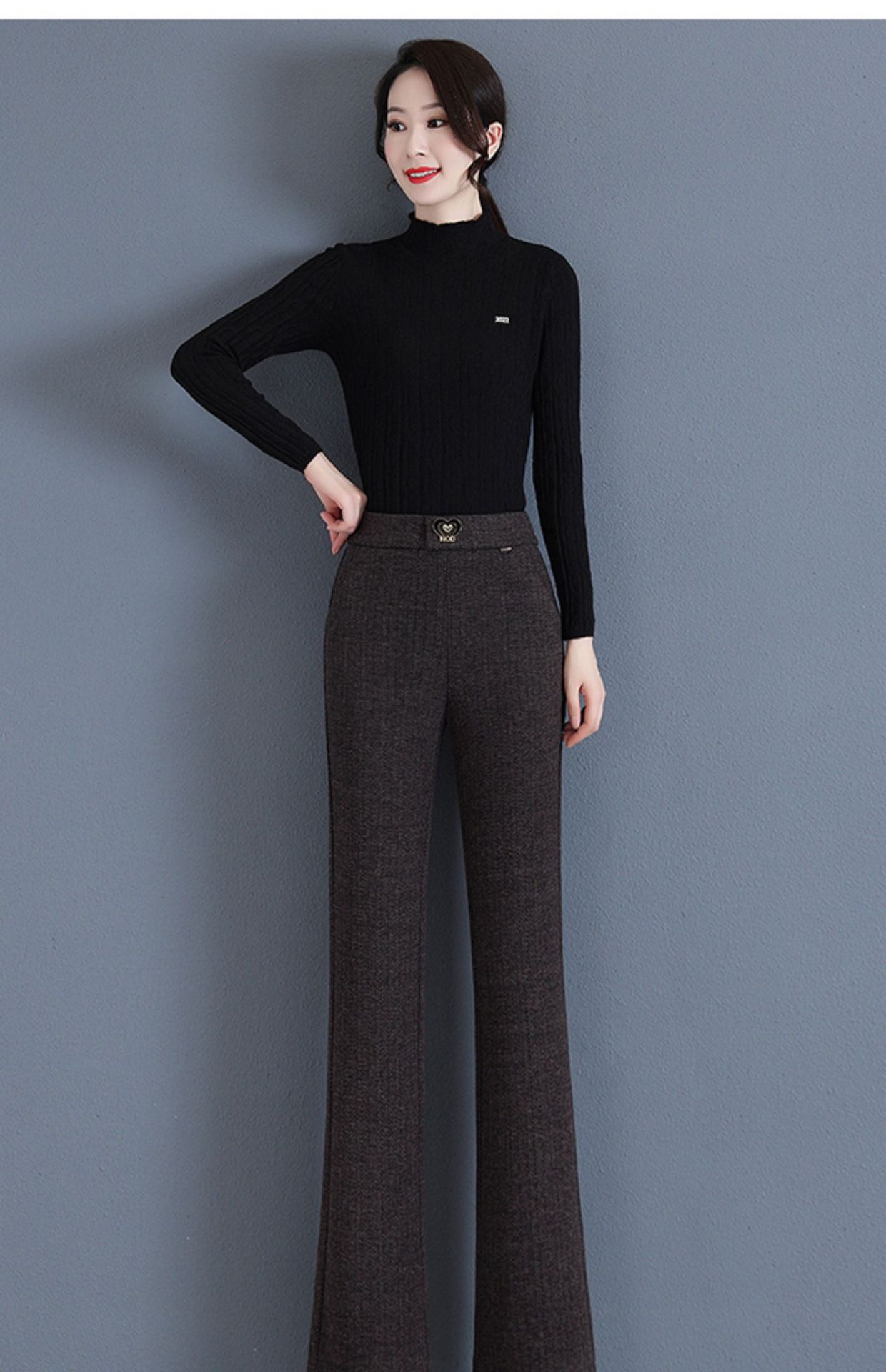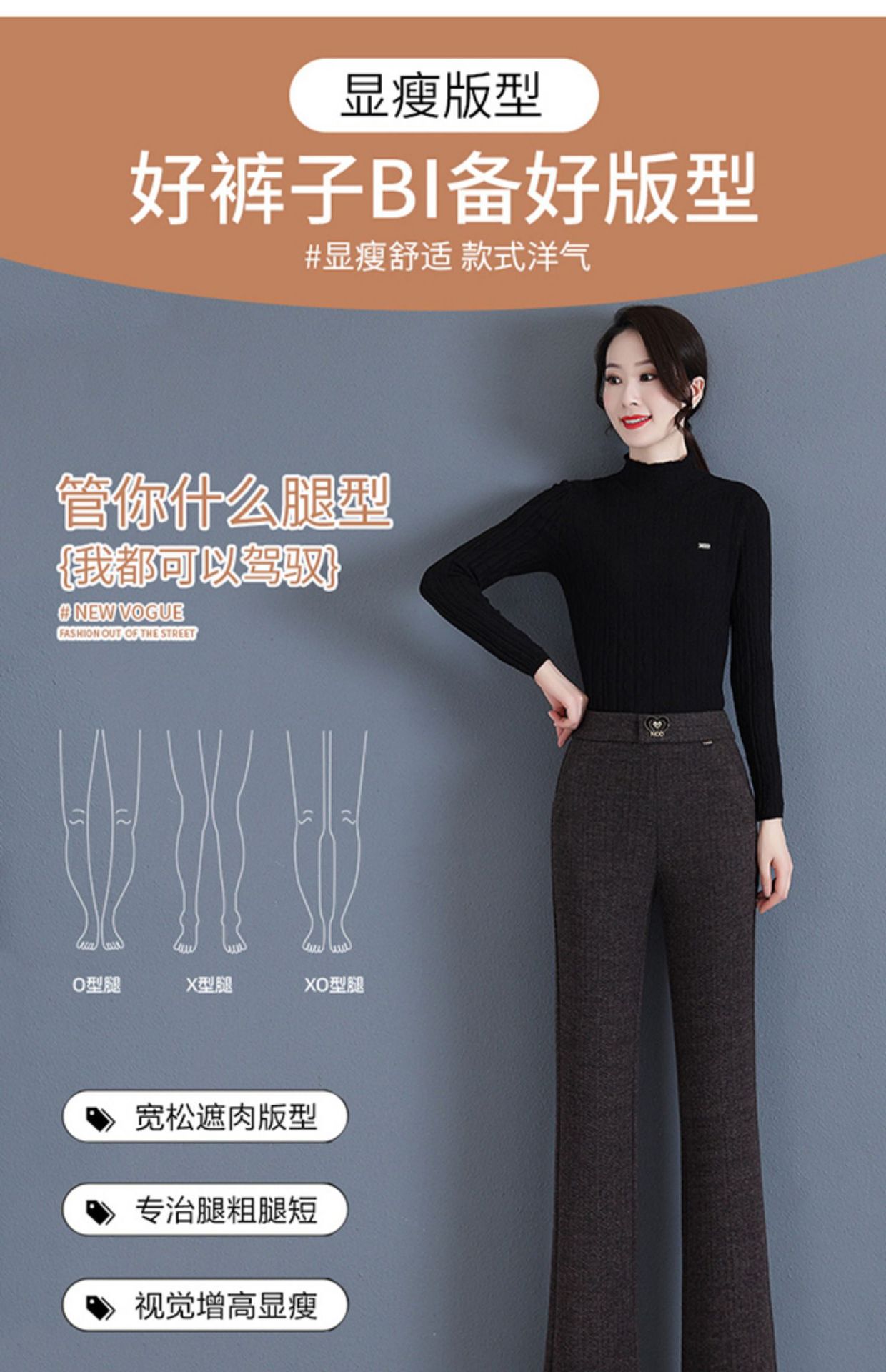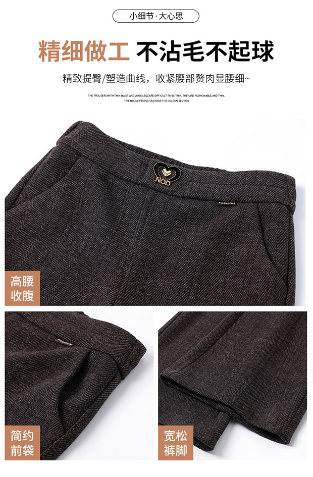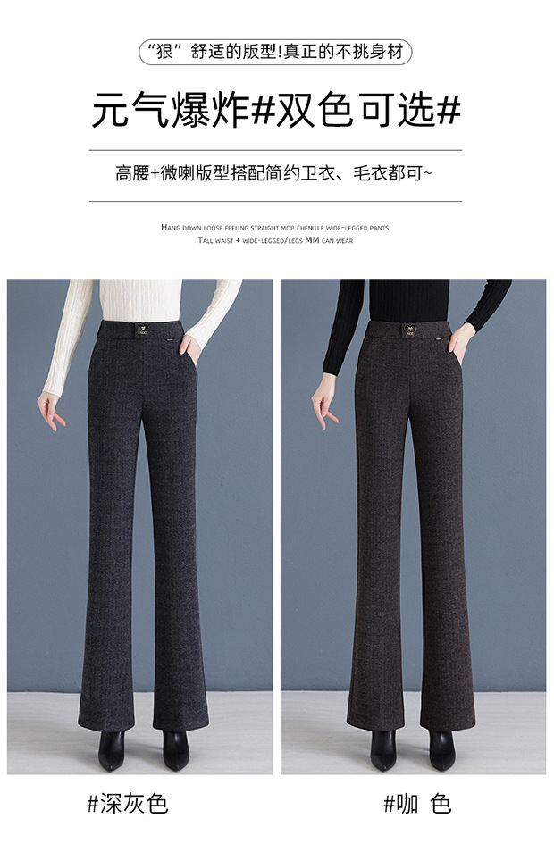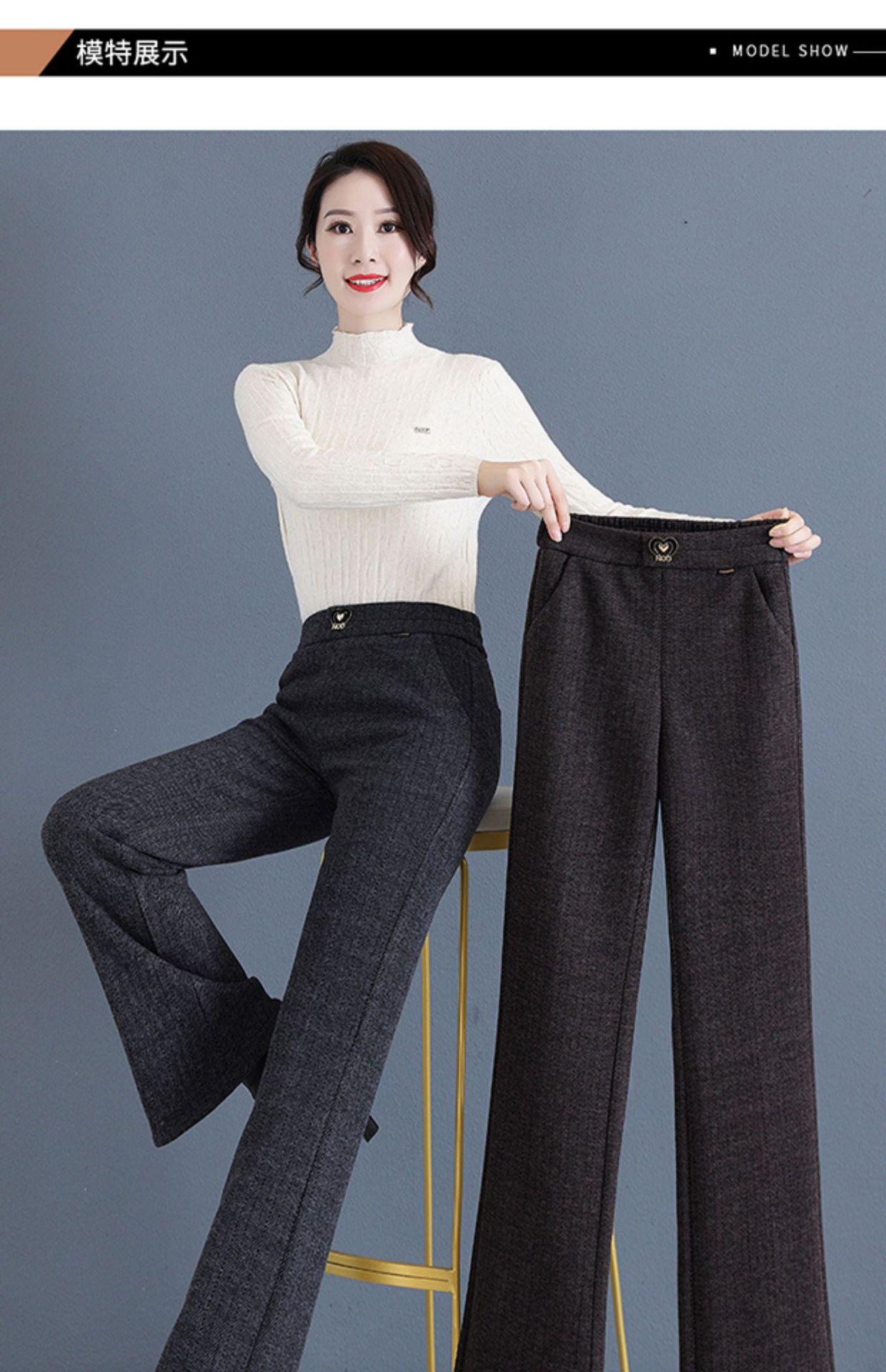 羊毛呢微喇叭裤女裤秋冬时尚高腰垂感休闲加绒加厚阔腿直筒裤妈妈