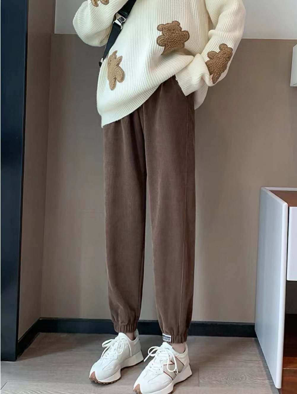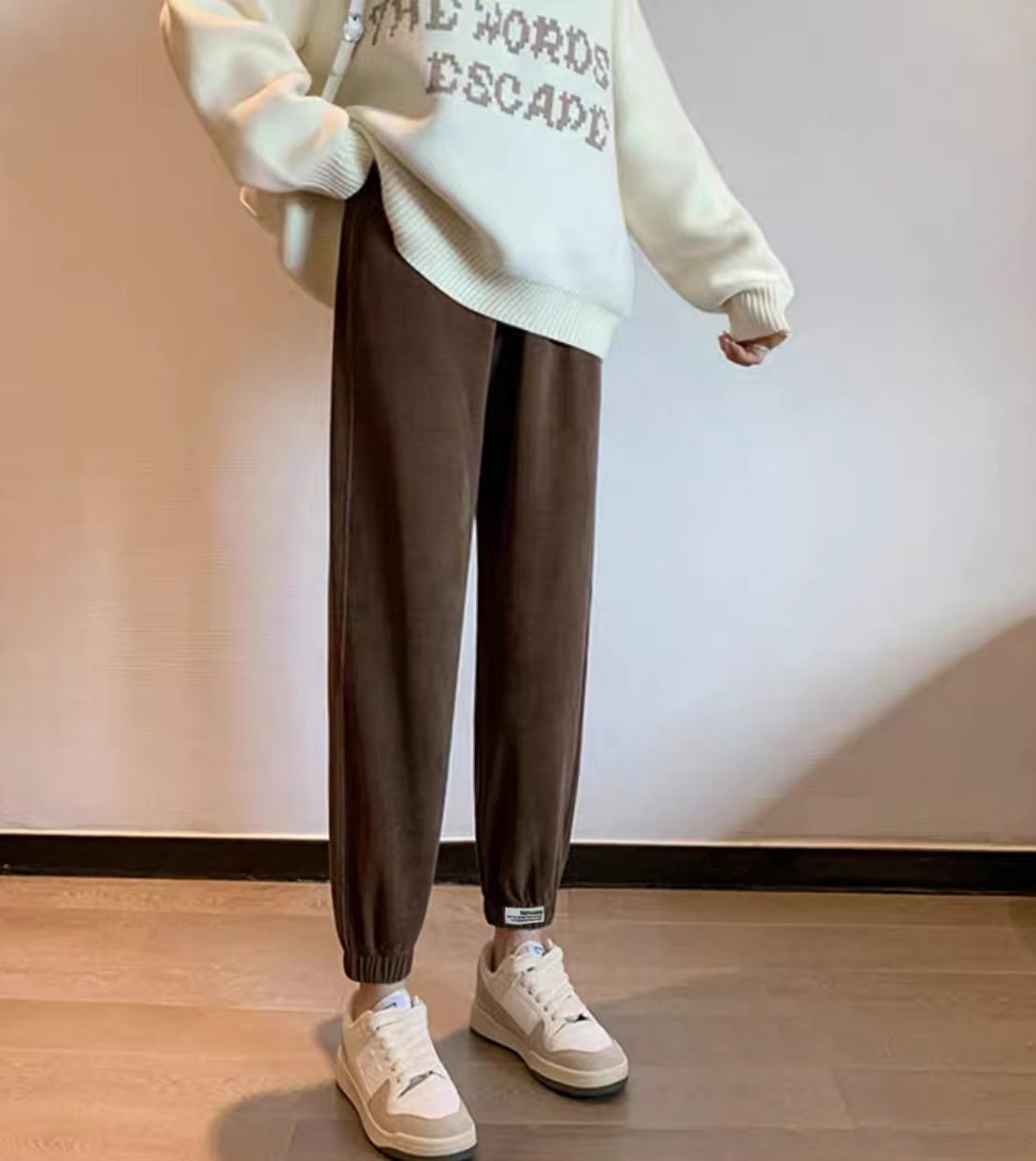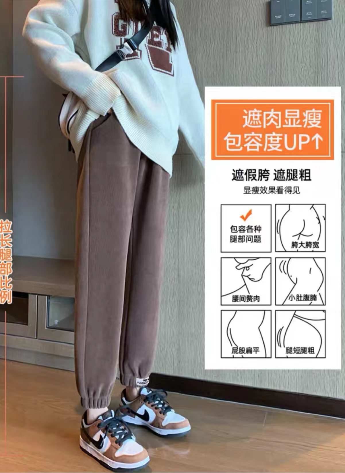 欧绒棉休闲哈伦裤女秋冬季新款加绒直筒卫裤高腰束脚运动裤宽松