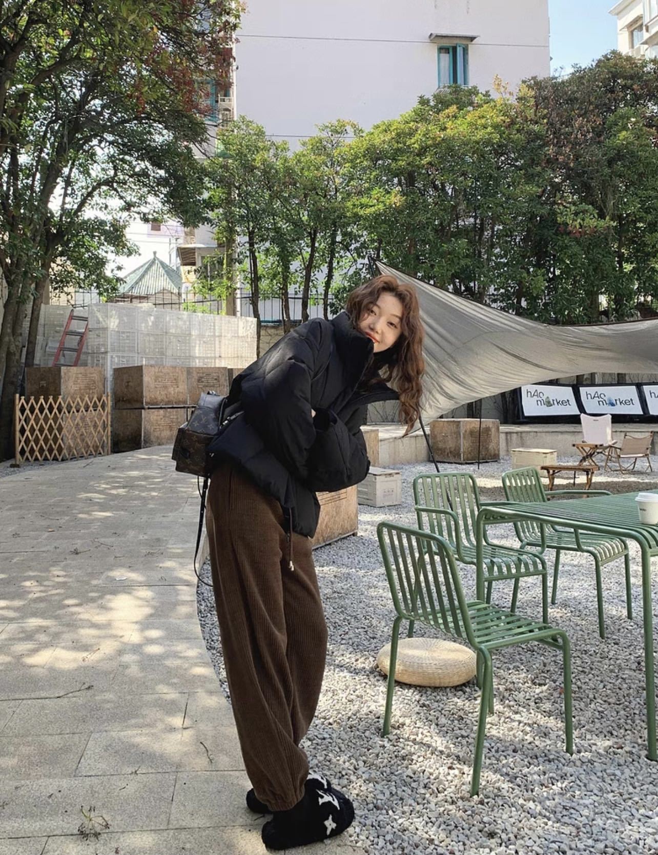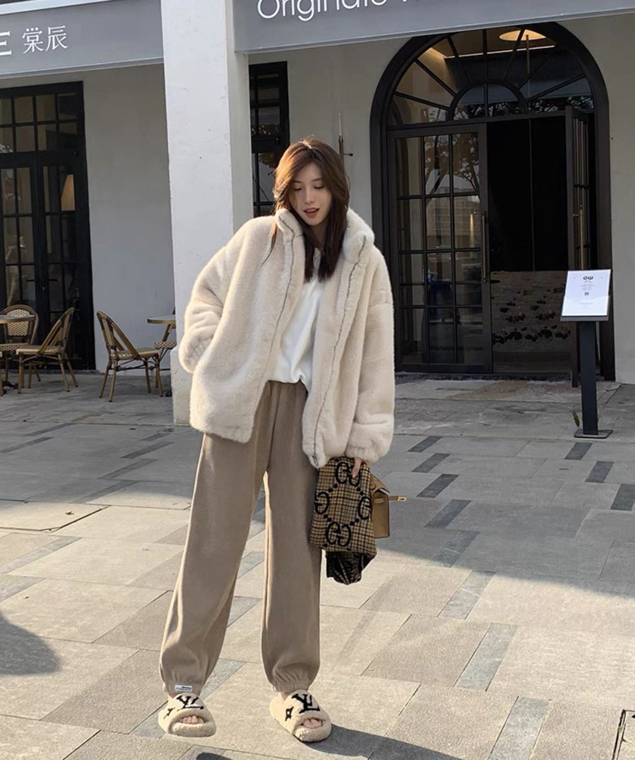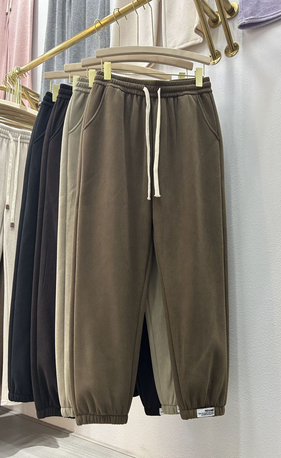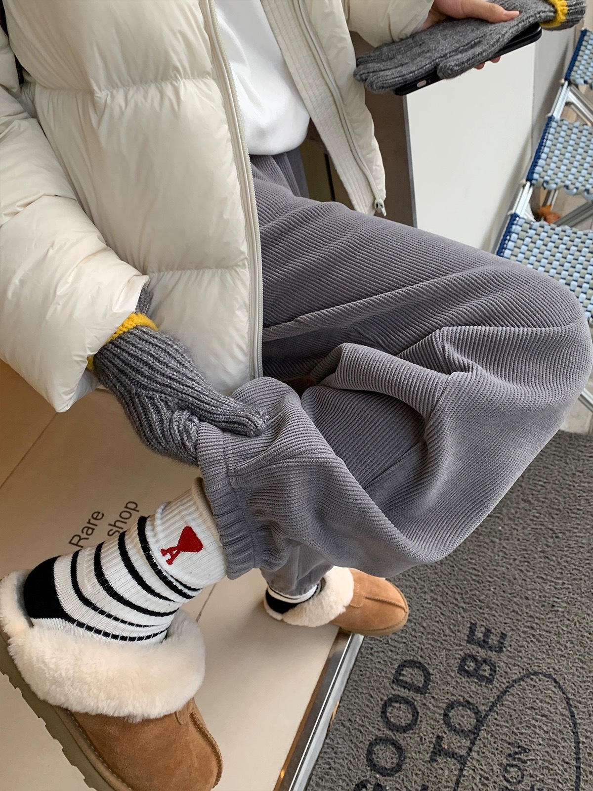 欧绒棉休闲哈伦裤女秋冬季新款加绒直筒卫裤高腰束脚运动裤宽松