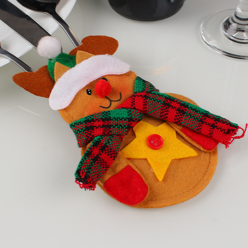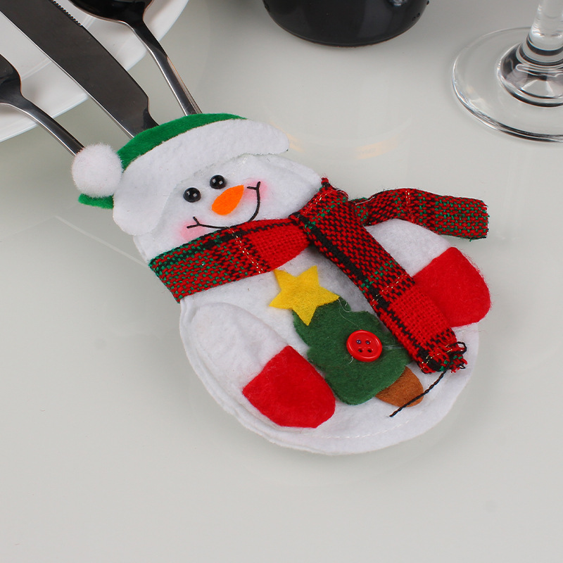 圣诞节装饰品餐桌装饰圣诞老人刀叉套家居餐具套无纺布圣诞雪人刀