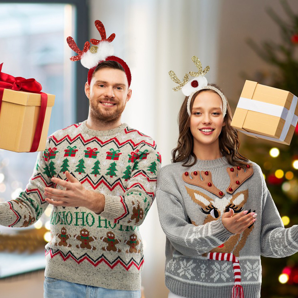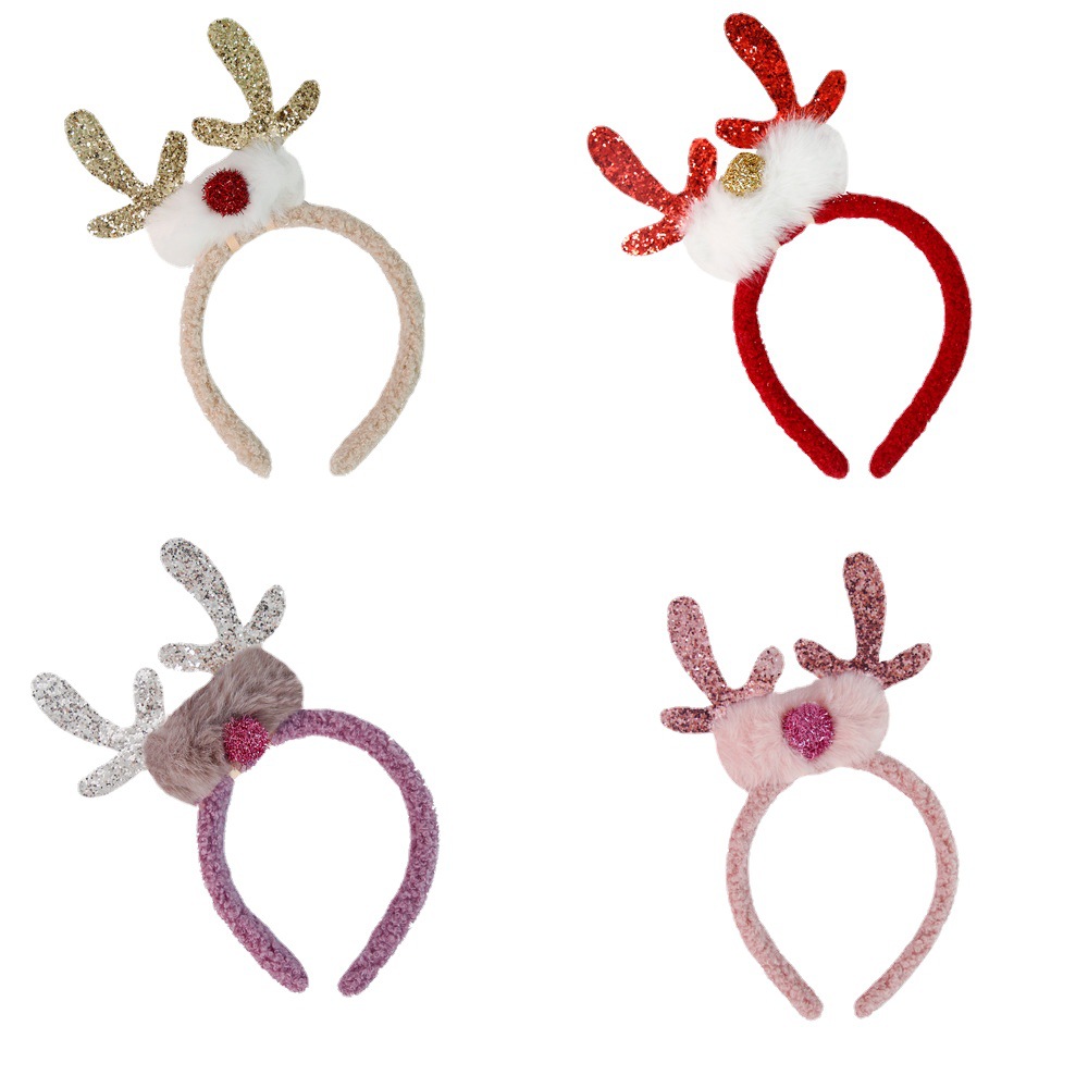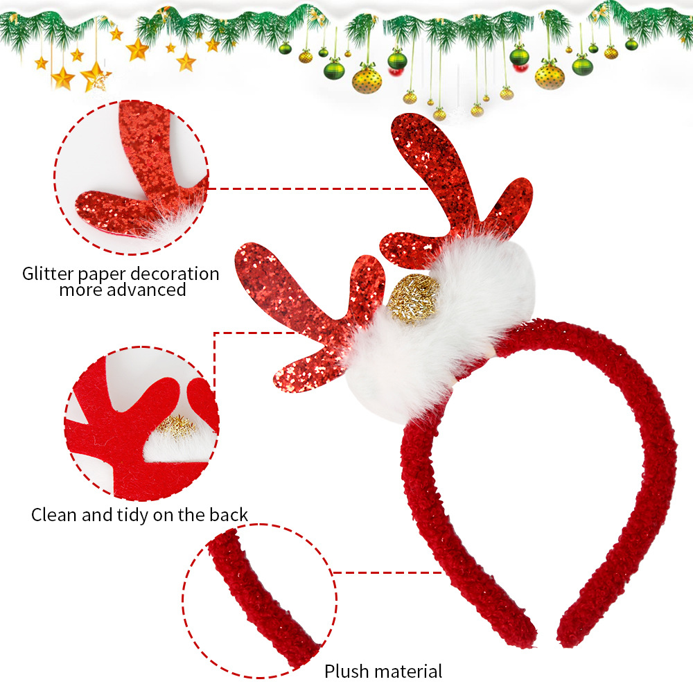 圣诞装饰品毛绒发箍成人儿童圣诞节派对装饰头箍头饰亮片鹿角头扣