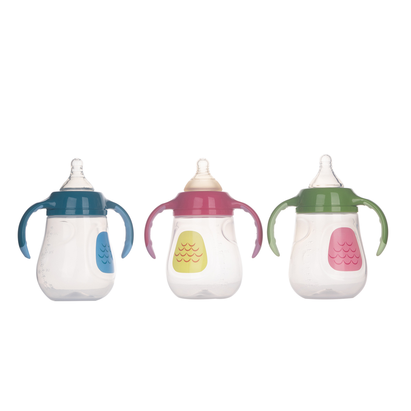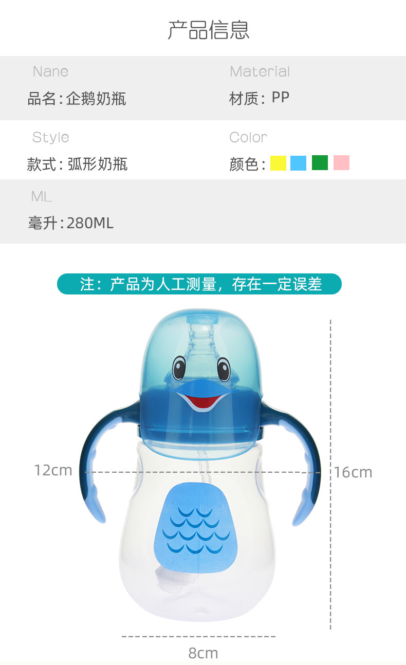 跨境可爱卡通企鹅造型宝宝奶瓶280mlpp塑料标准口径奶瓶批发厂家