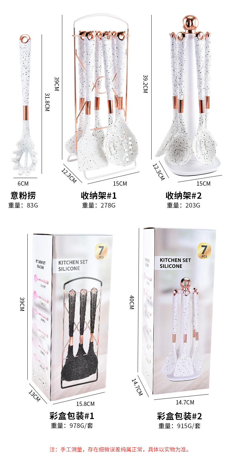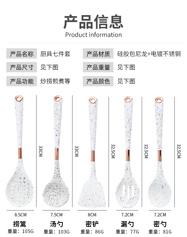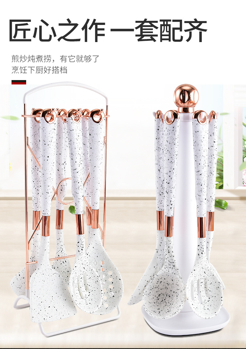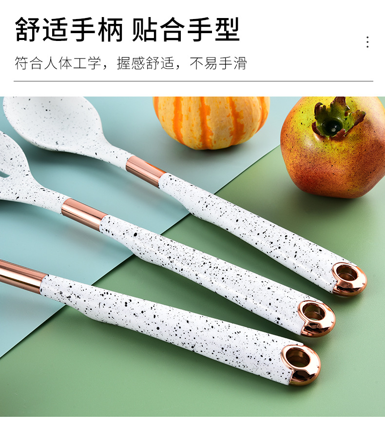 硅胶厨具七件套不粘烹饪铲勺套装轻奢创意厨房硅胶组合厨房收纳桶