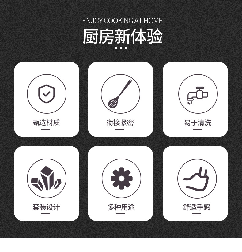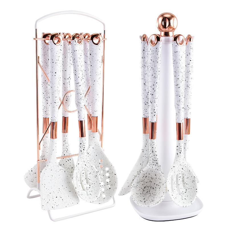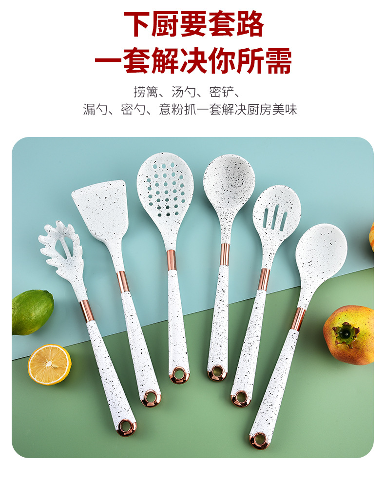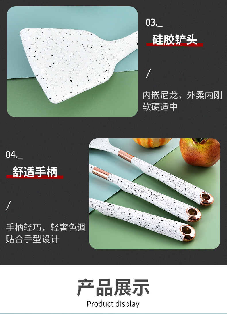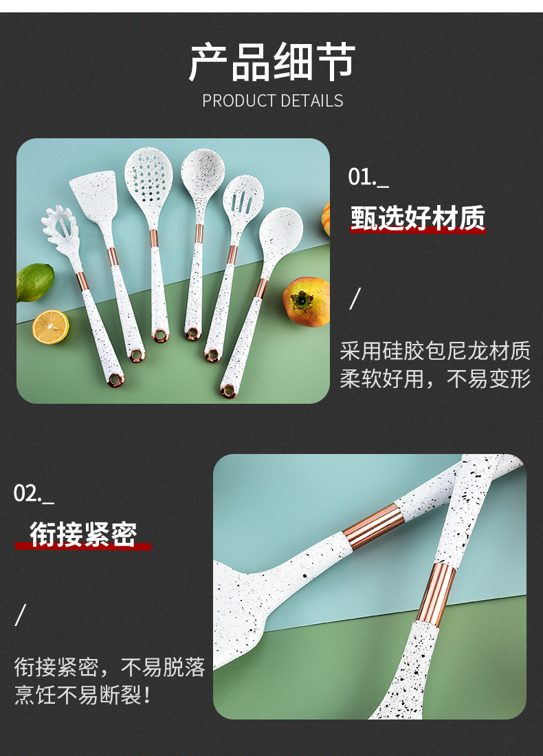 硅胶厨具七件套不粘烹饪铲勺套装轻奢创意厨房硅胶组合厨房收纳桶