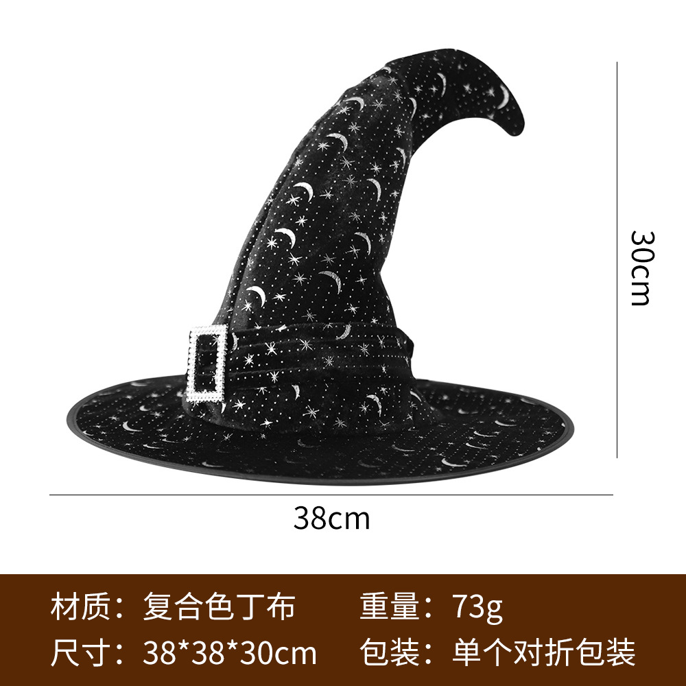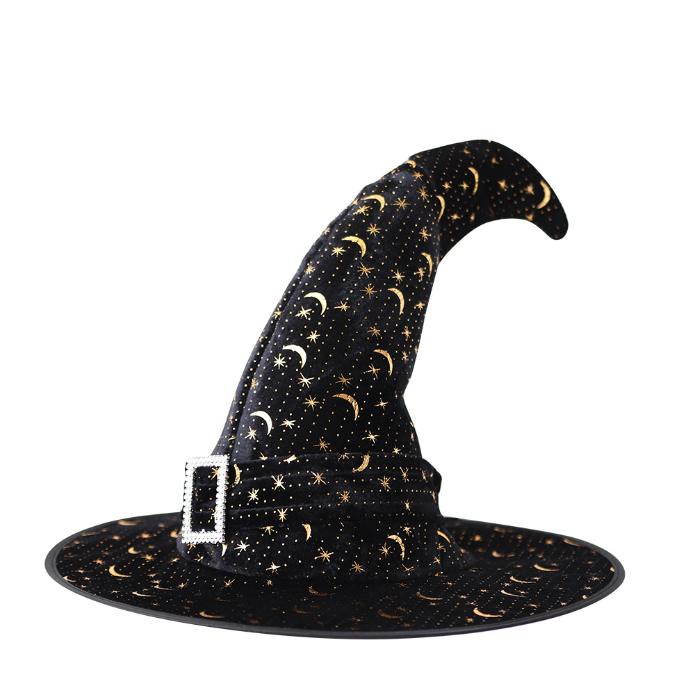 巫婆帽万圣节儿童成人舞会装扮金丝绒弯角帽精灵女巫帽子巫师帽