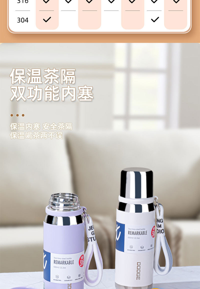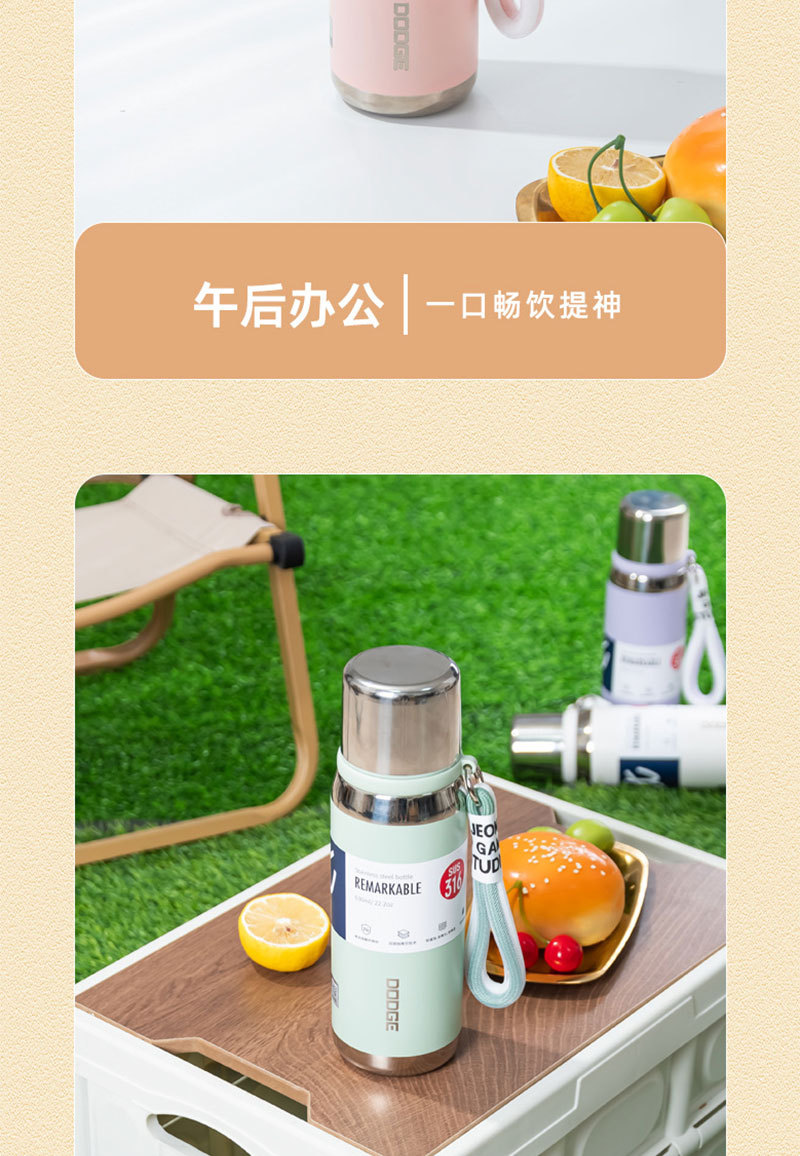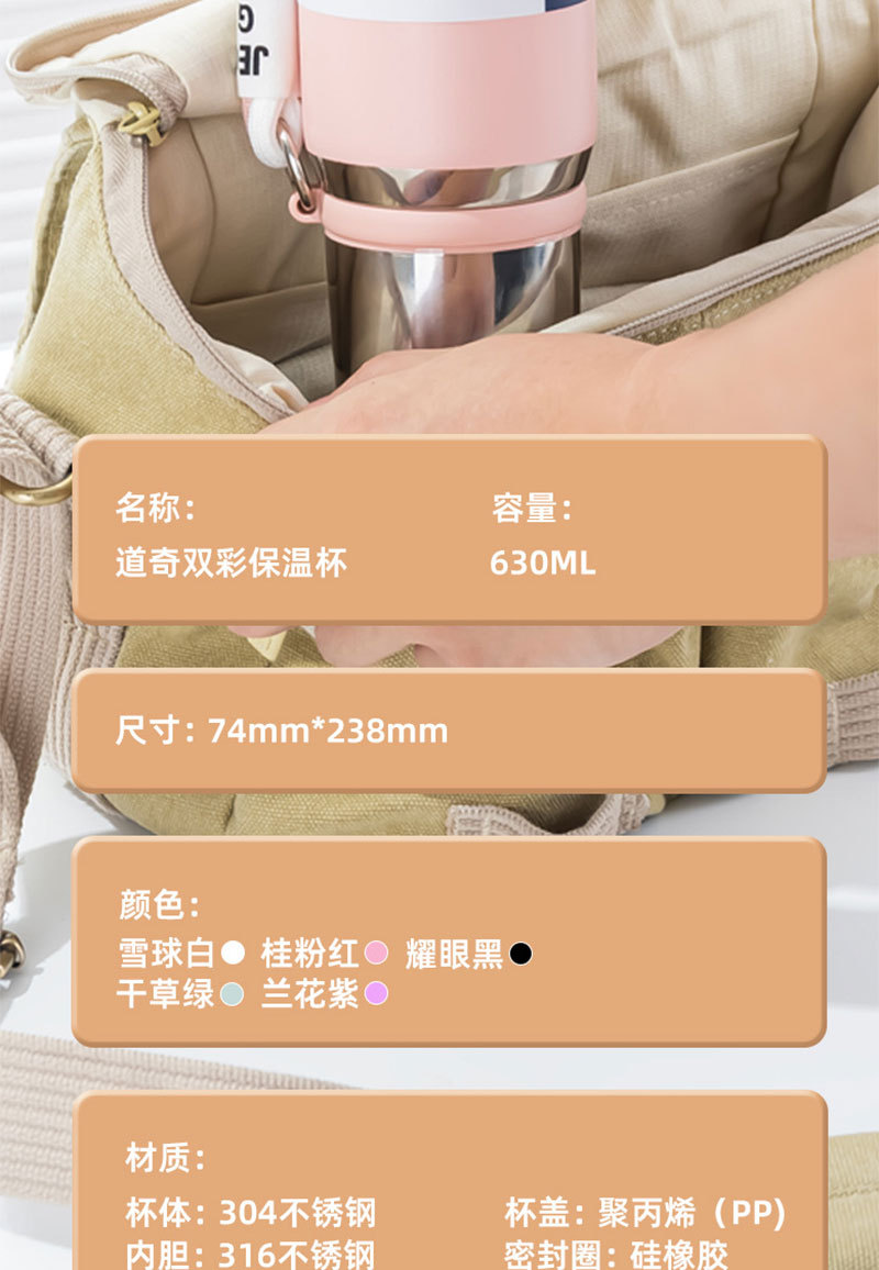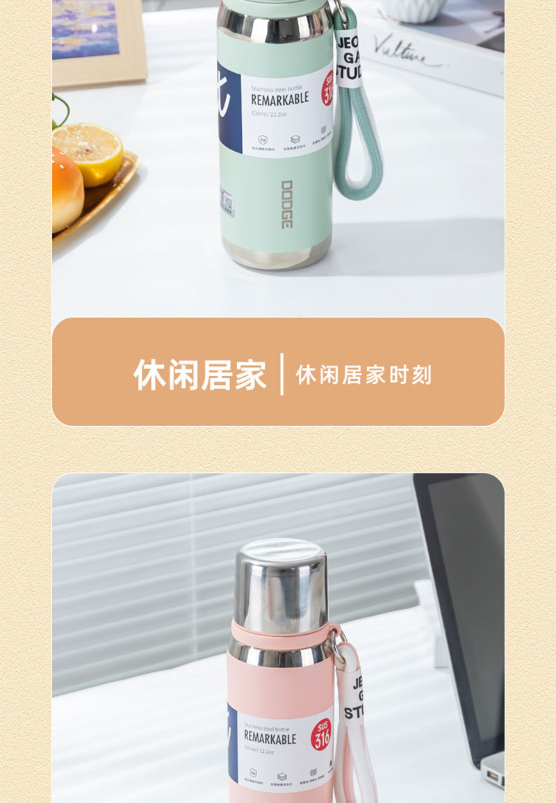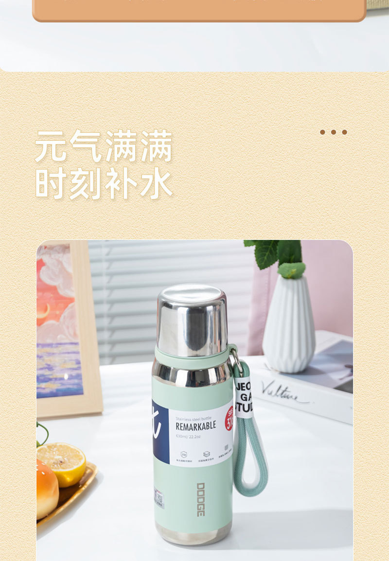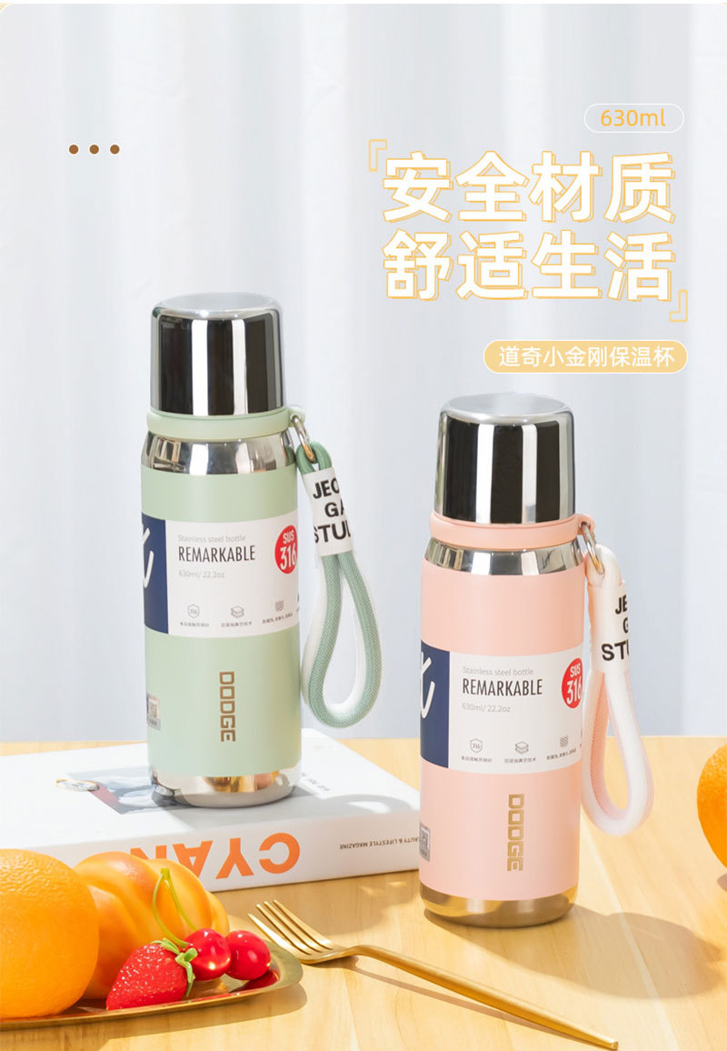 希乐630ML道奇小金钢保温杯便携不锈钢杯子手提上学便携带盖水壶