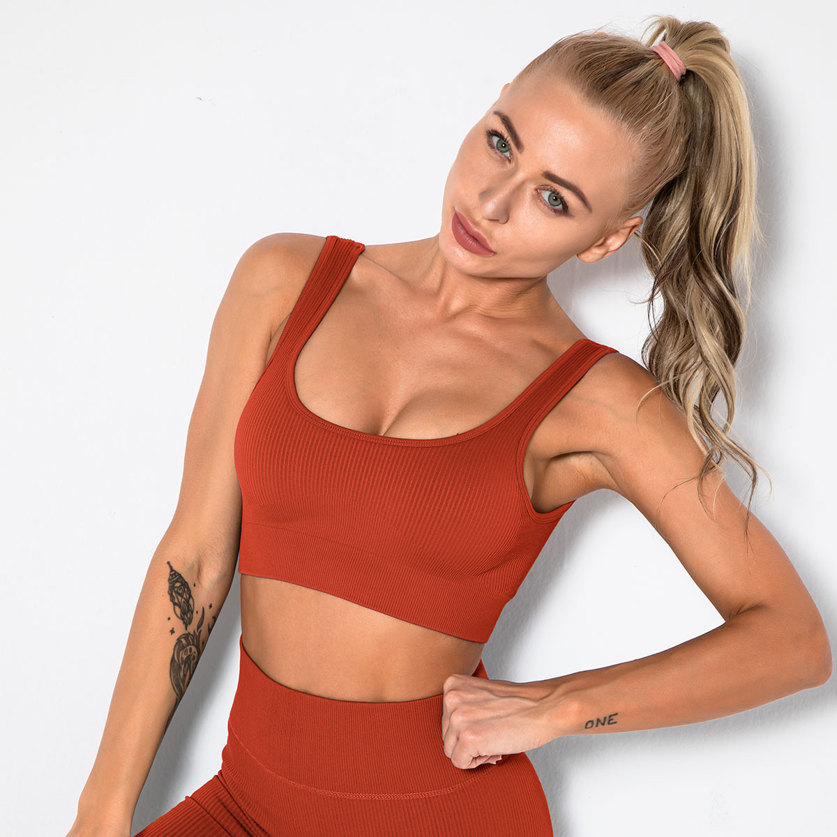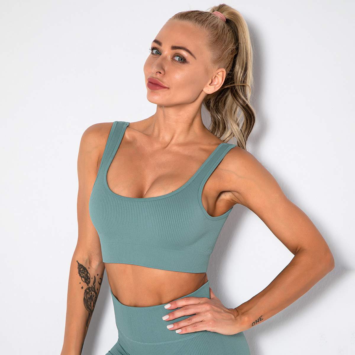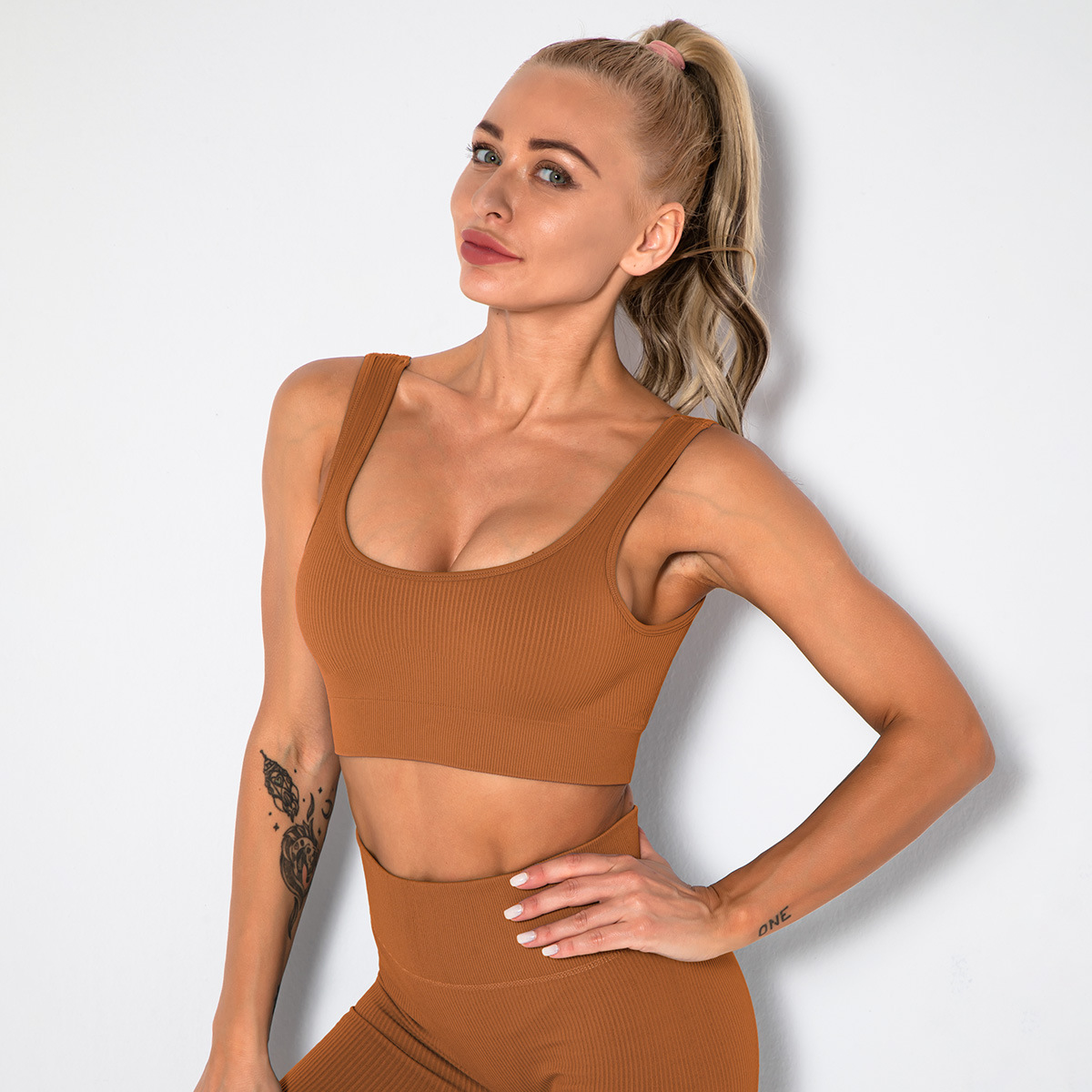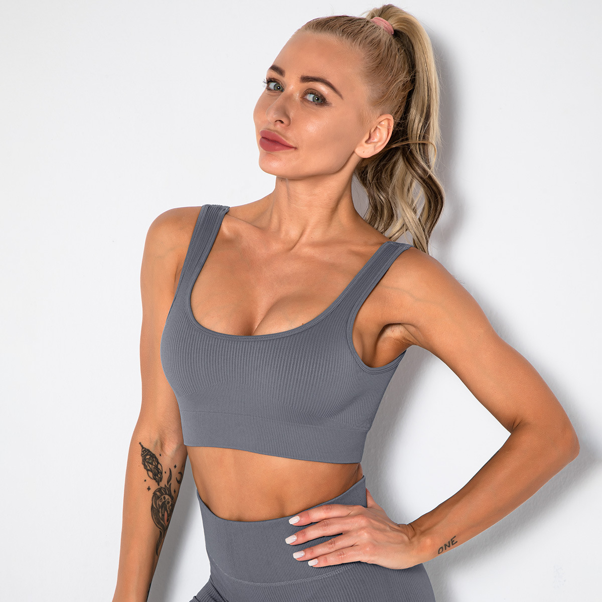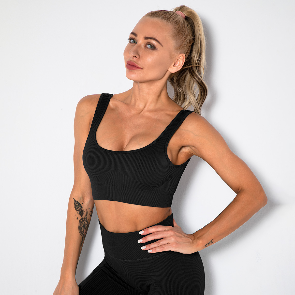 欧美无缝运动内衣女士美背速干bra 防震螺纹瑜伽健身文胸背心短袖
