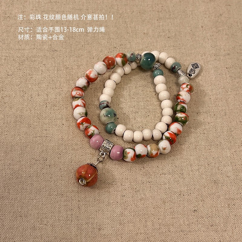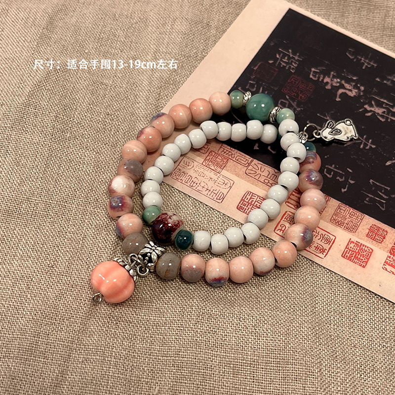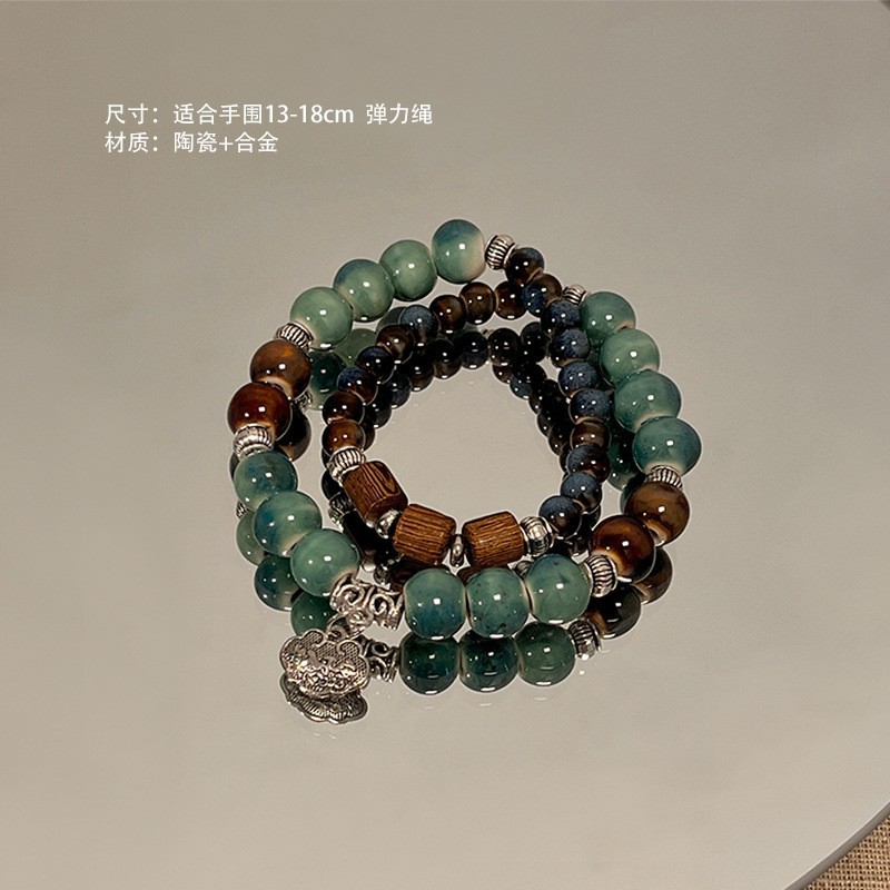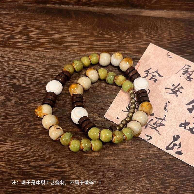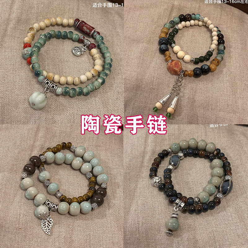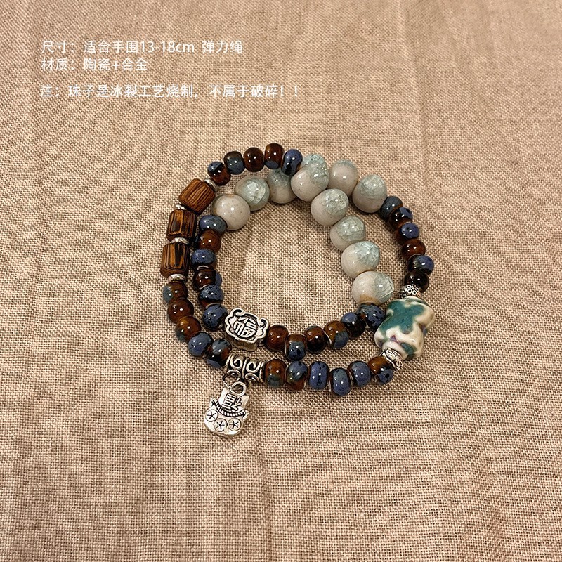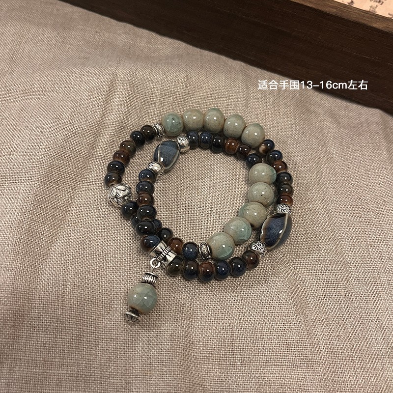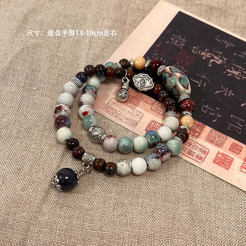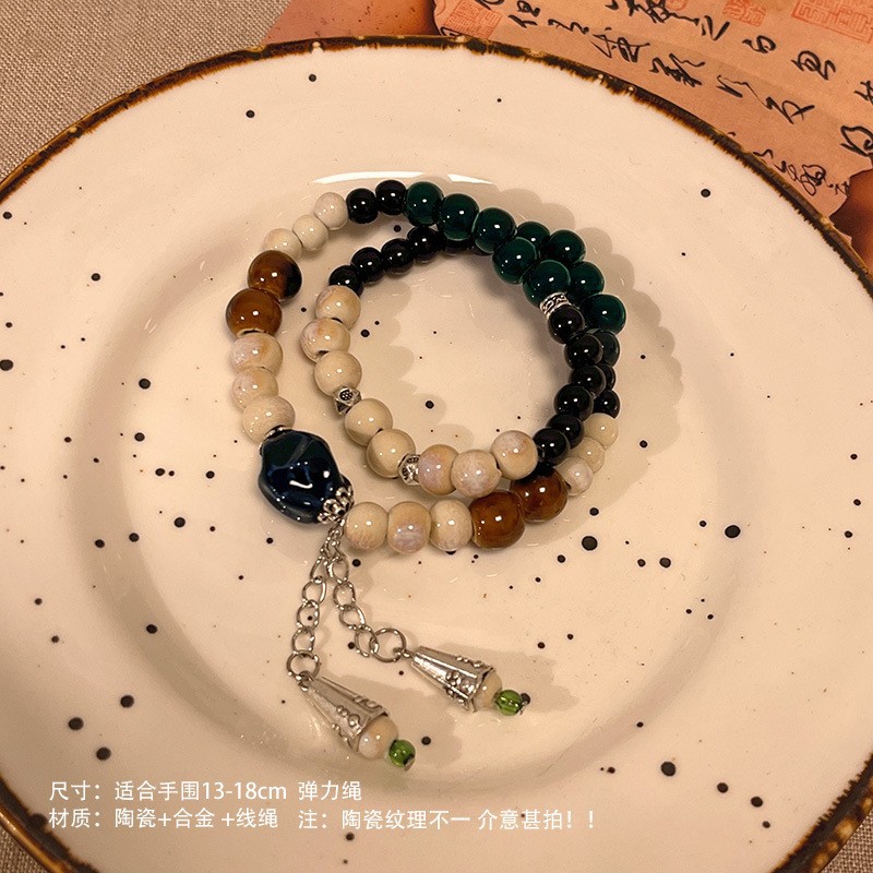 景德镇双圈陶瓷串珠手链新中式禅意国风手串古风高级感弹力绳手饰
