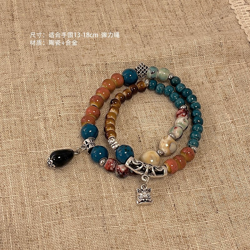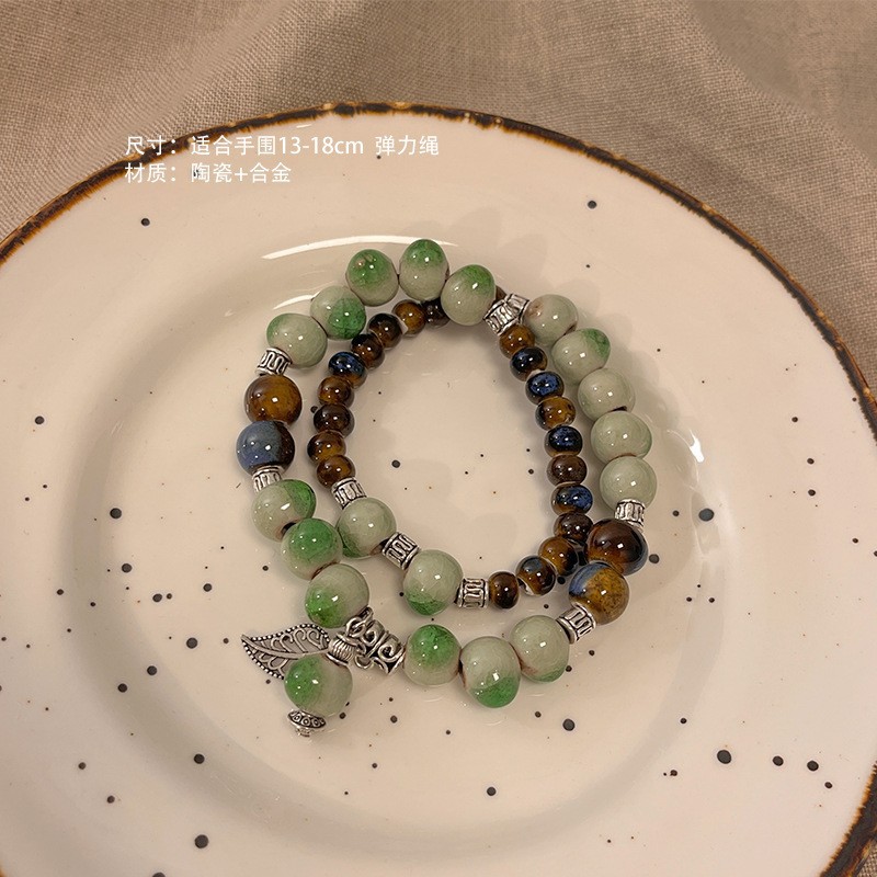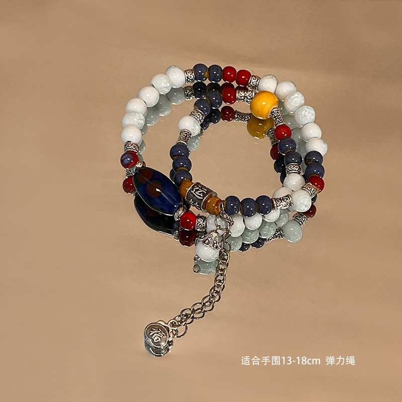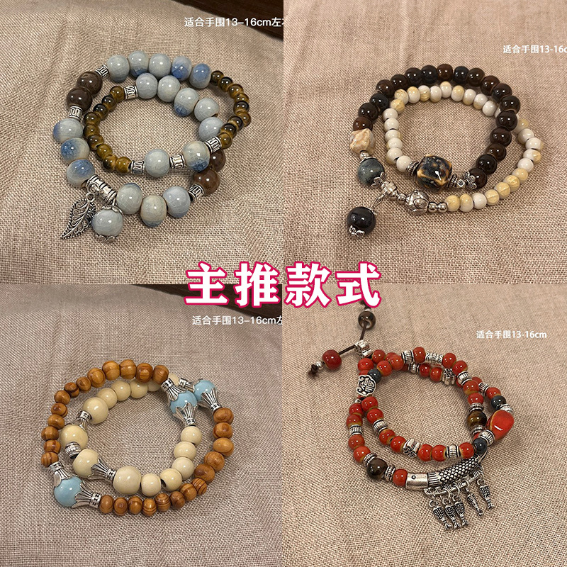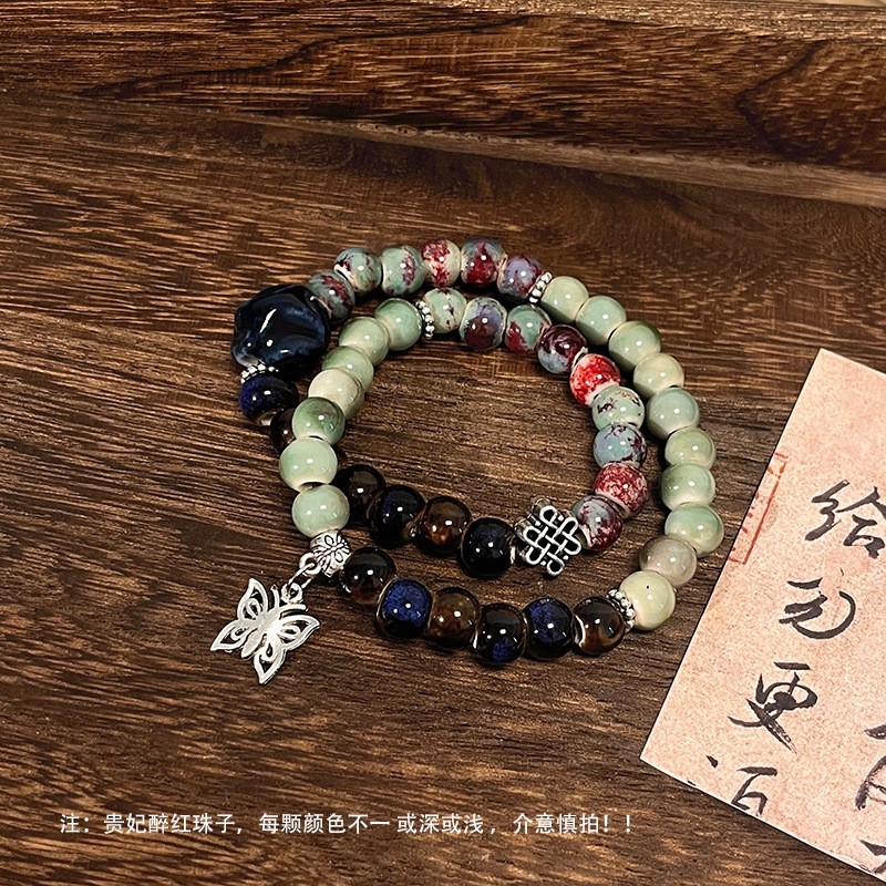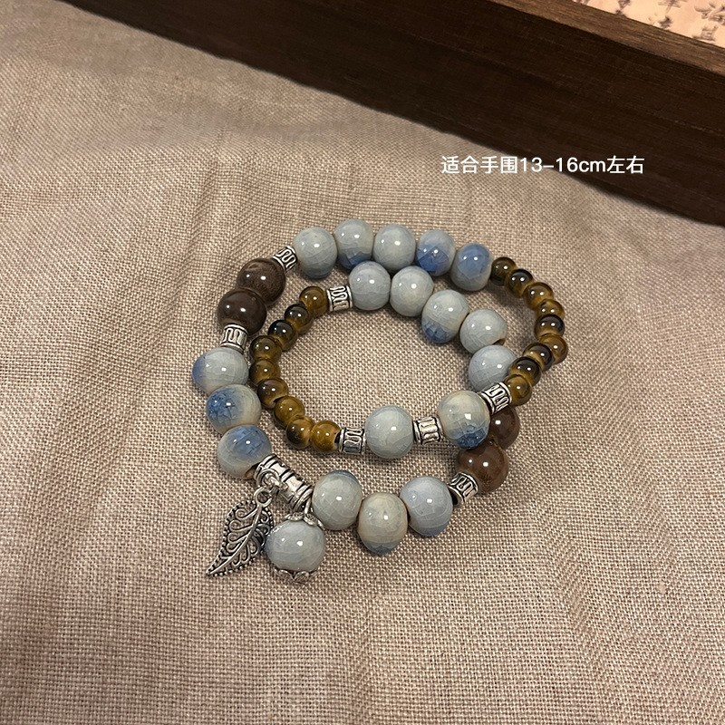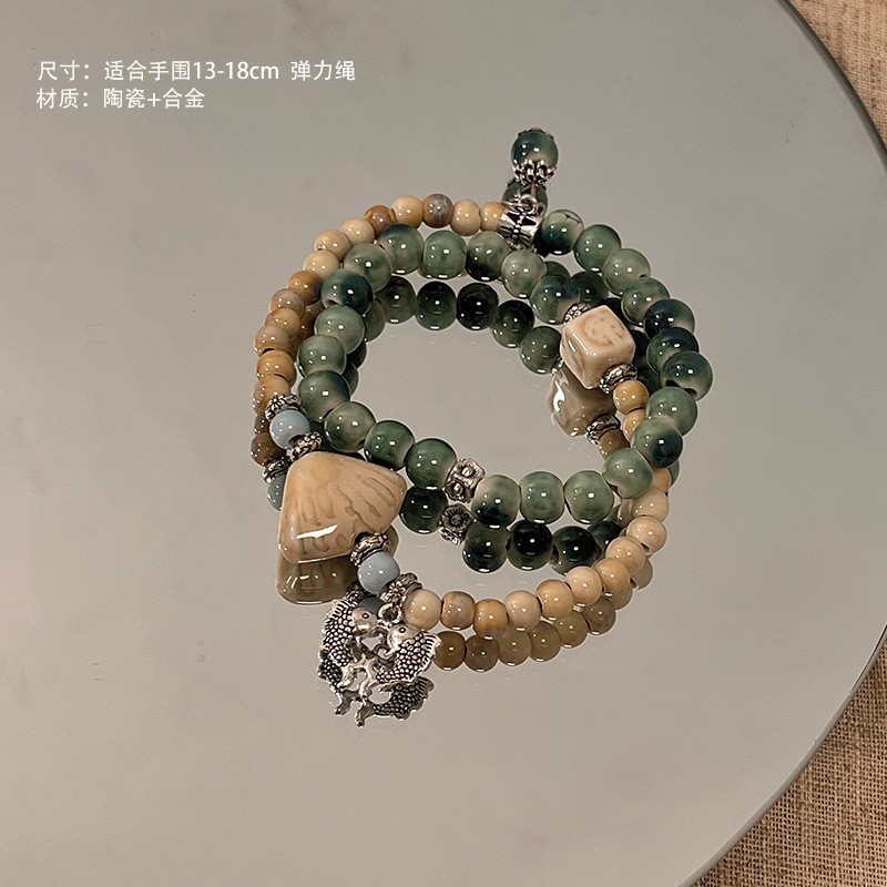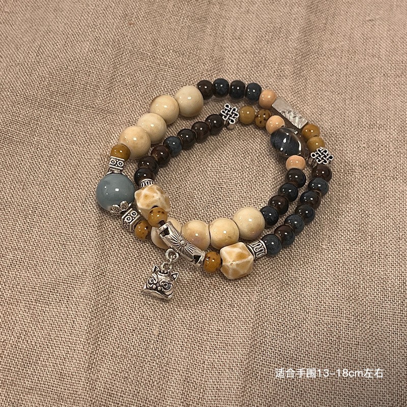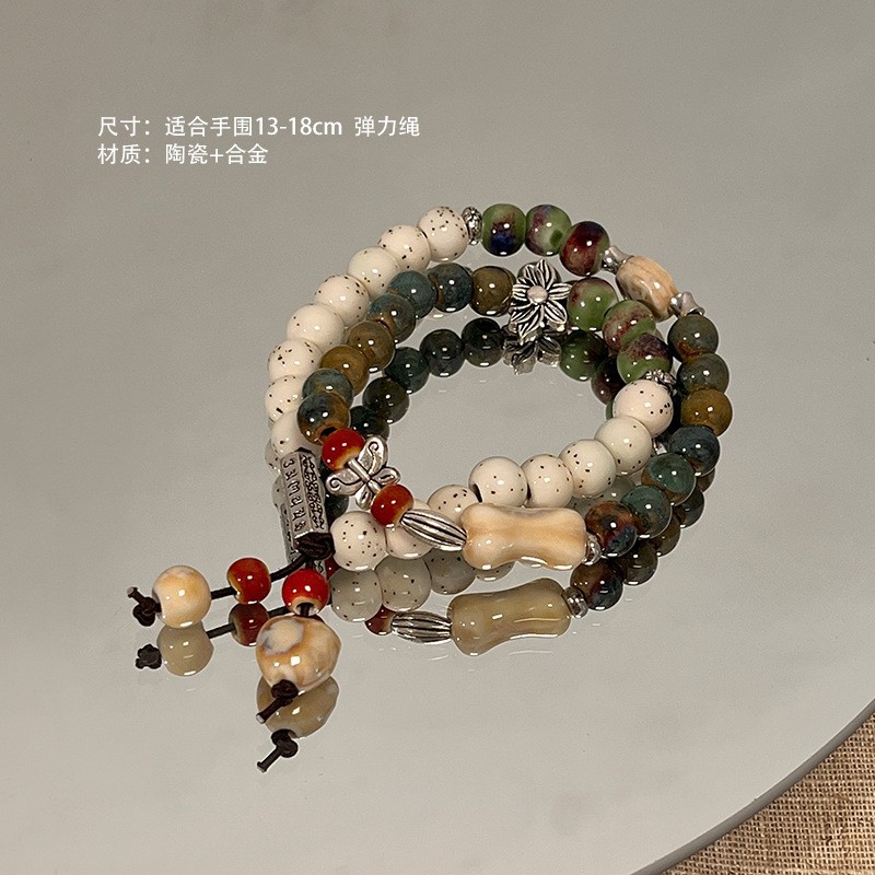 景德镇双圈陶瓷串珠手链新中式禅意国风手串古风高级感弹力绳手饰