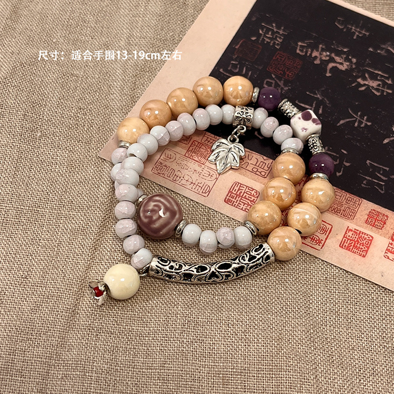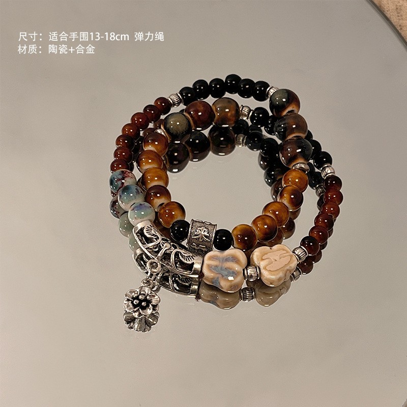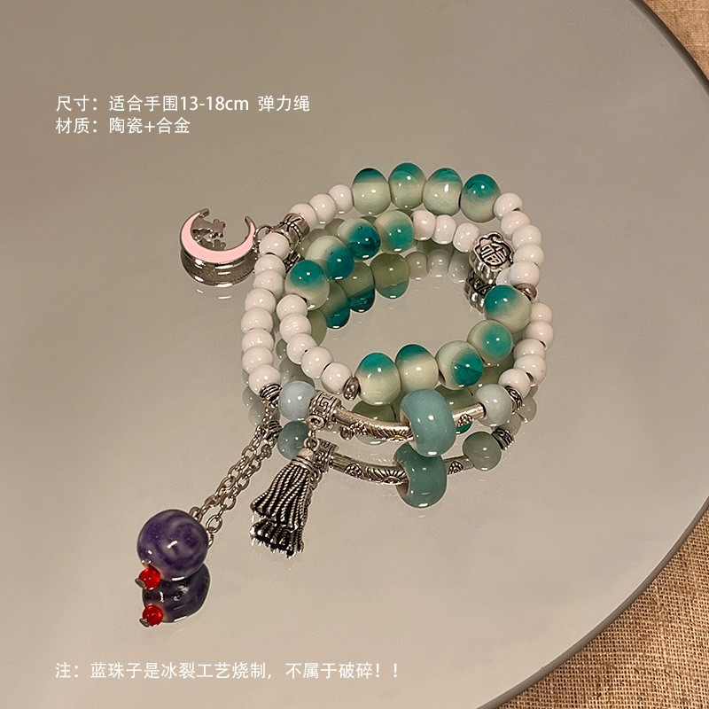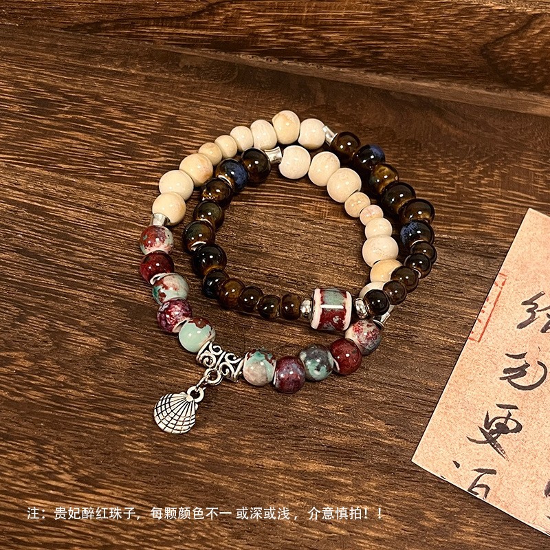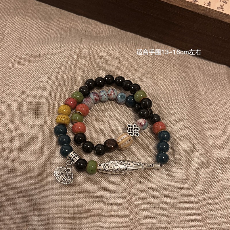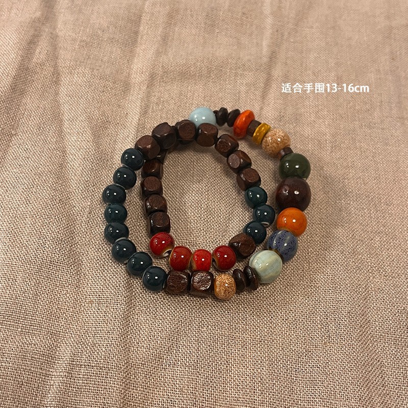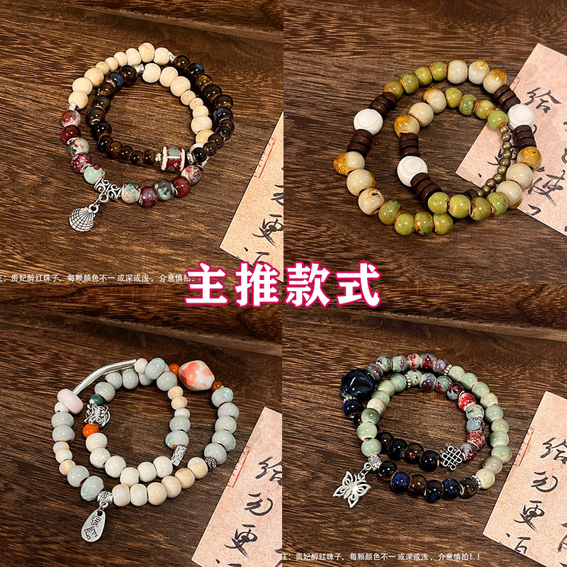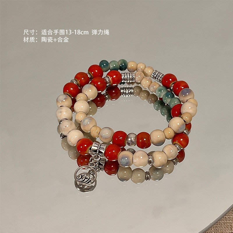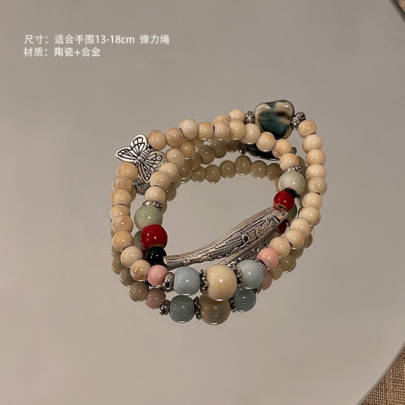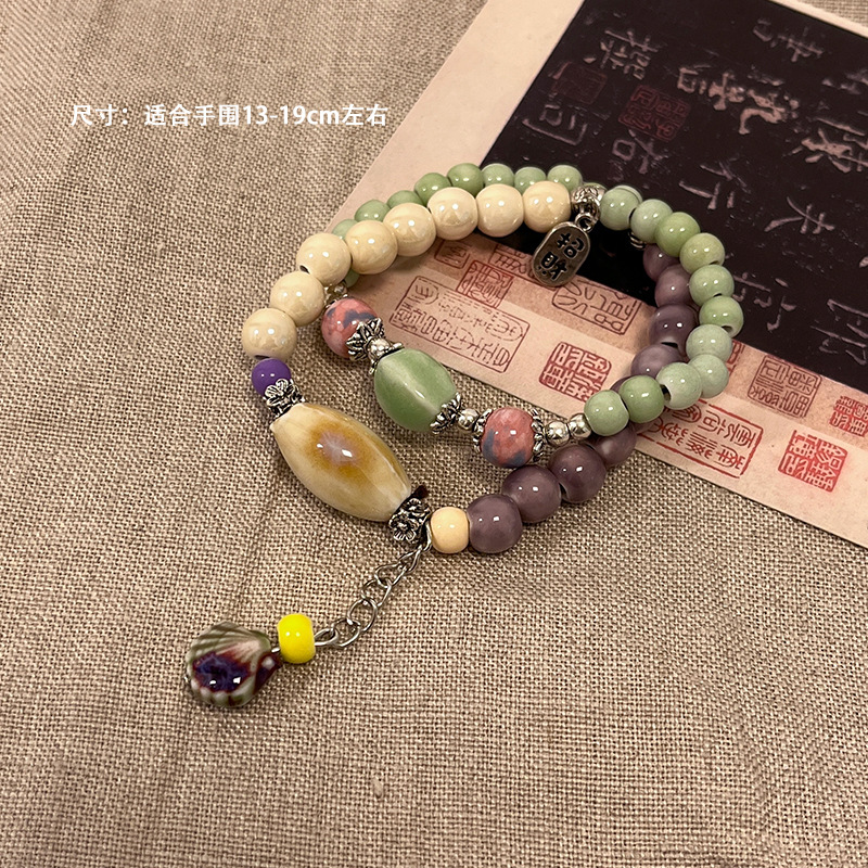 景德镇双圈陶瓷串珠手链新中式禅意国风手串古风高级感弹力绳手饰