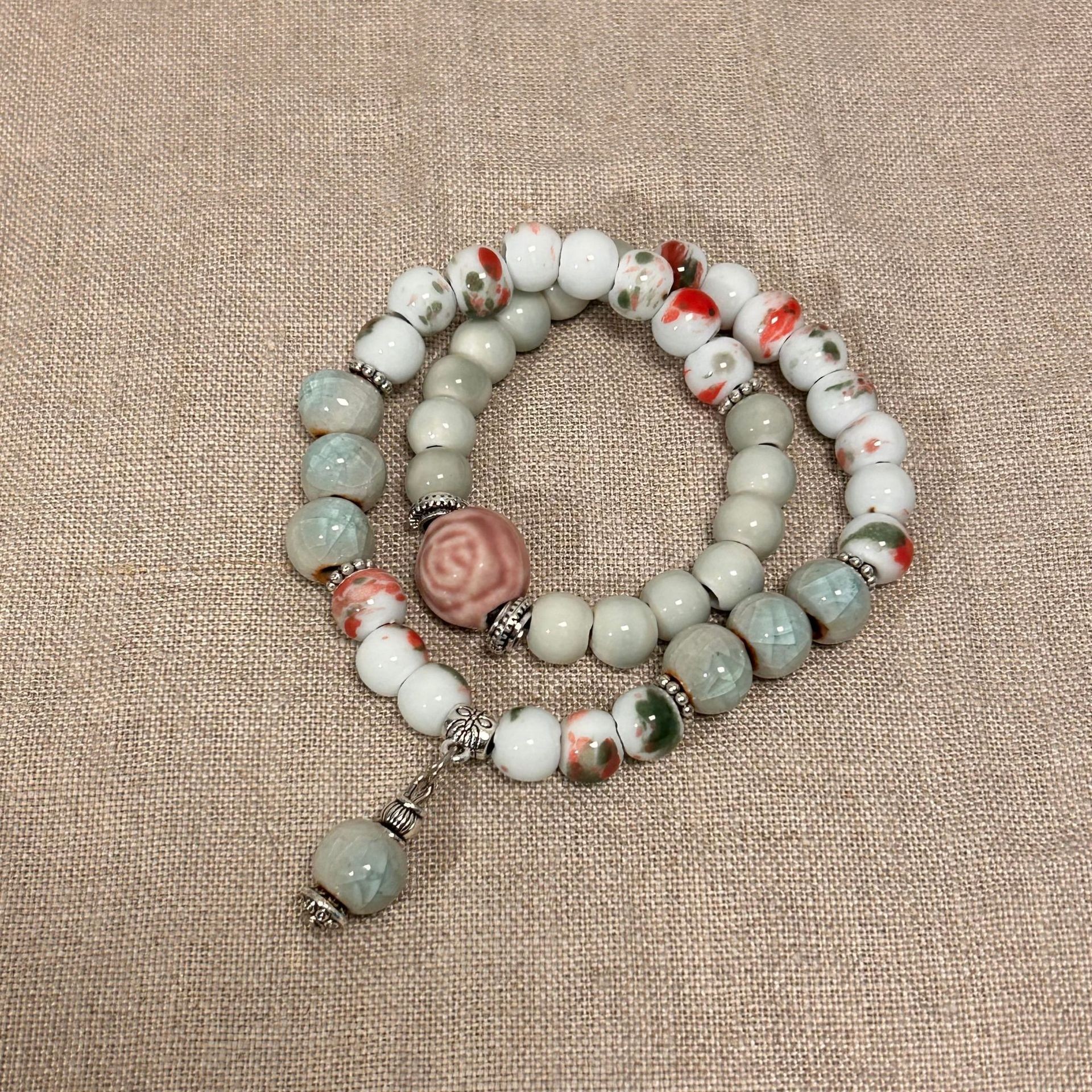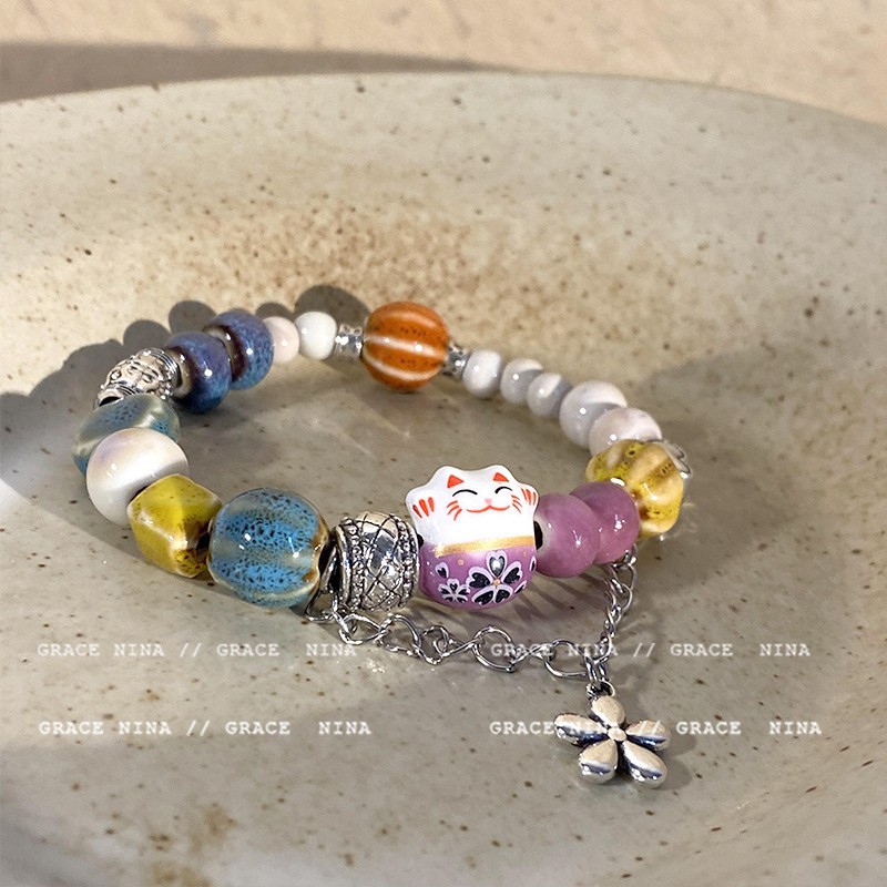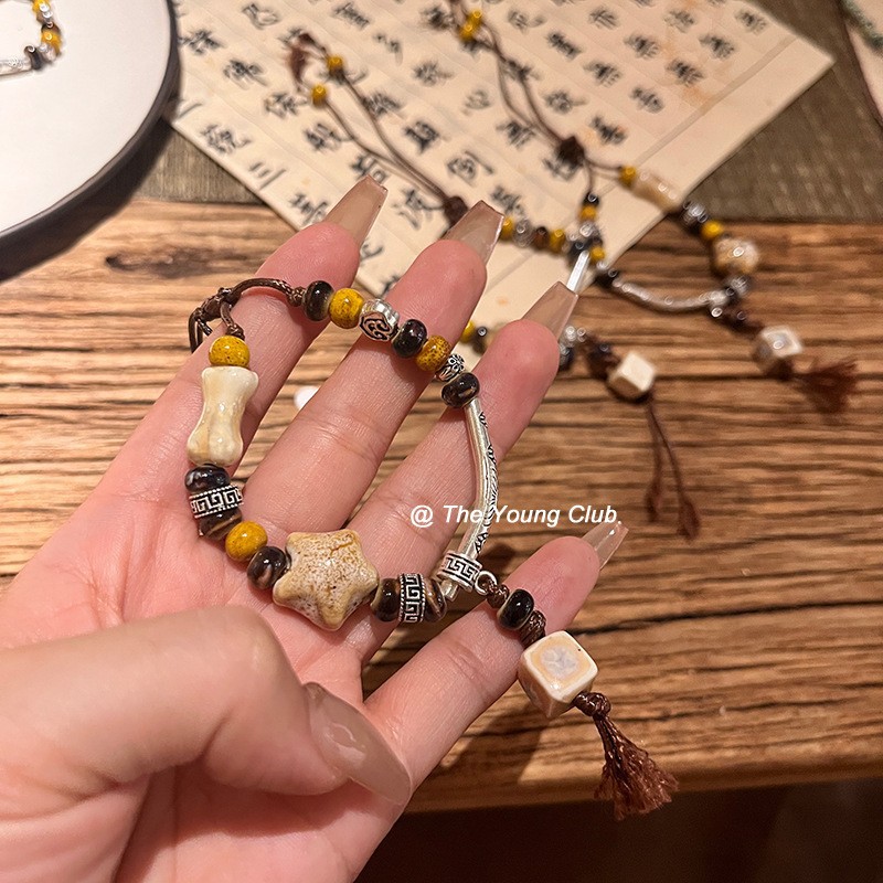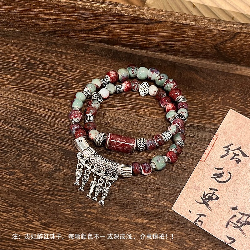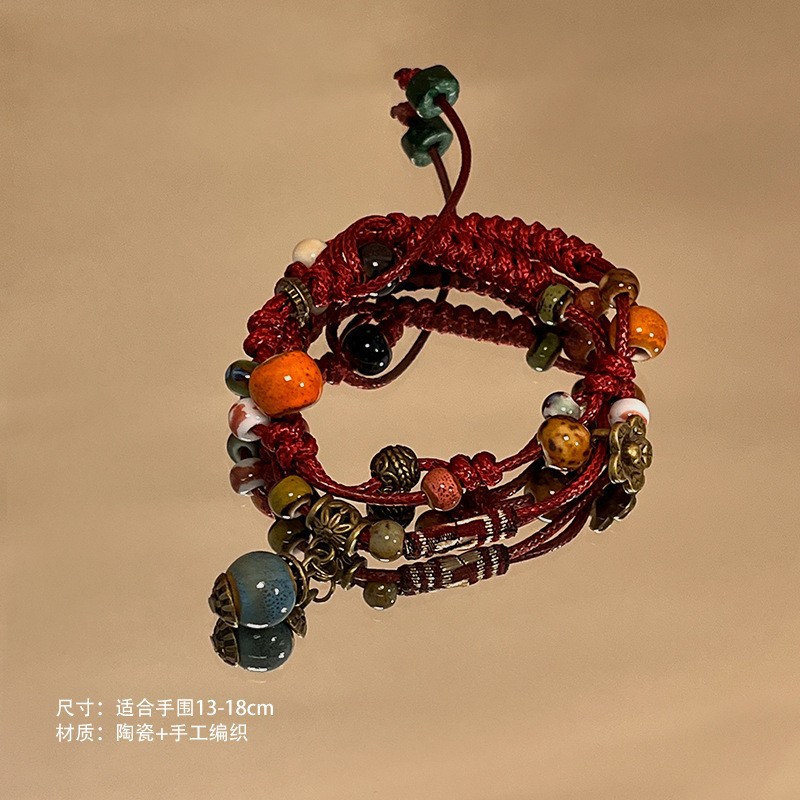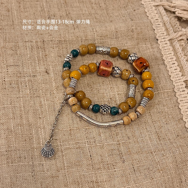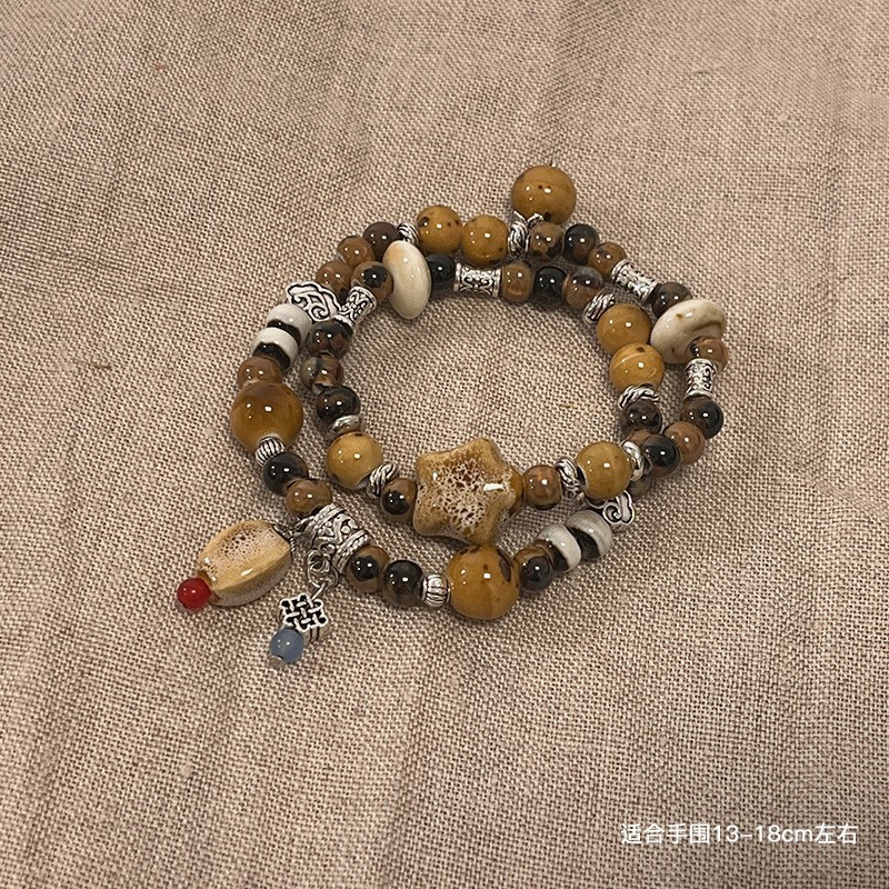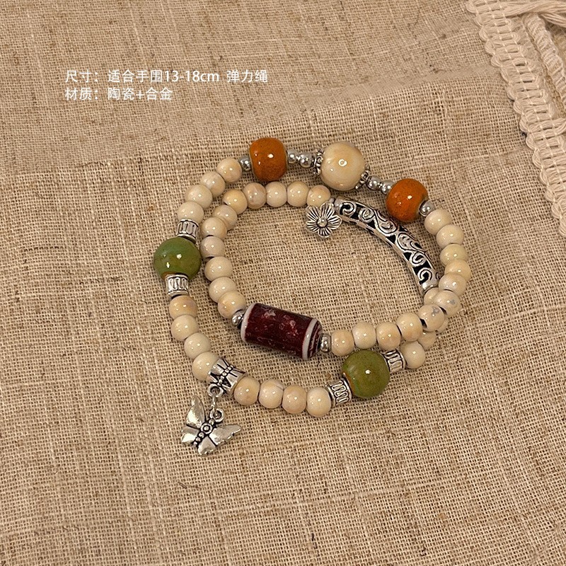 景德镇双圈陶瓷串珠手链新中式禅意国风手串古风高级感弹力绳手饰