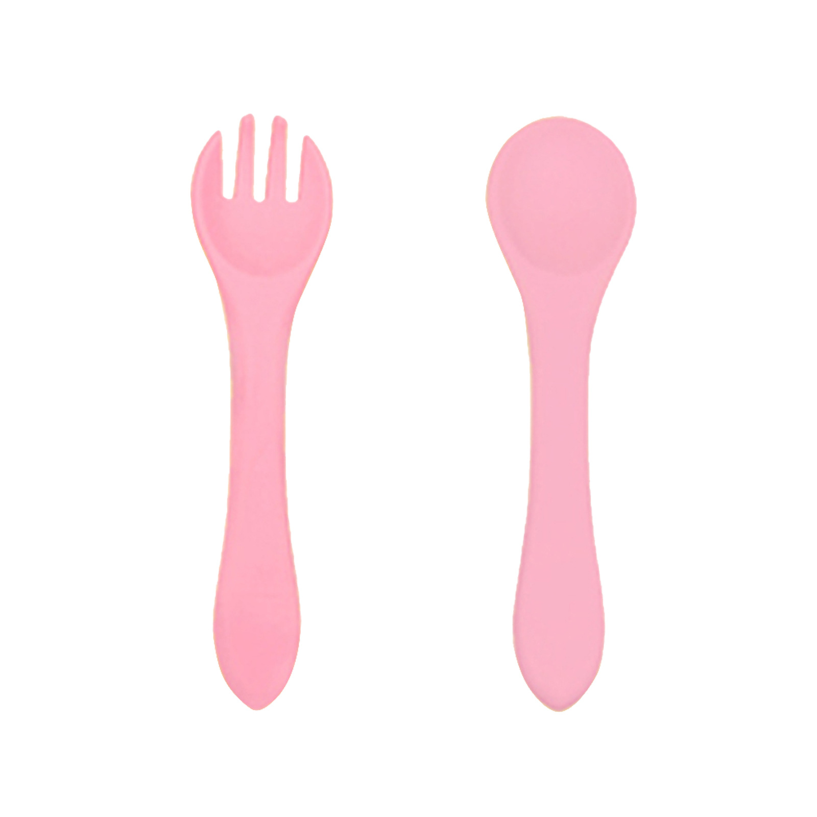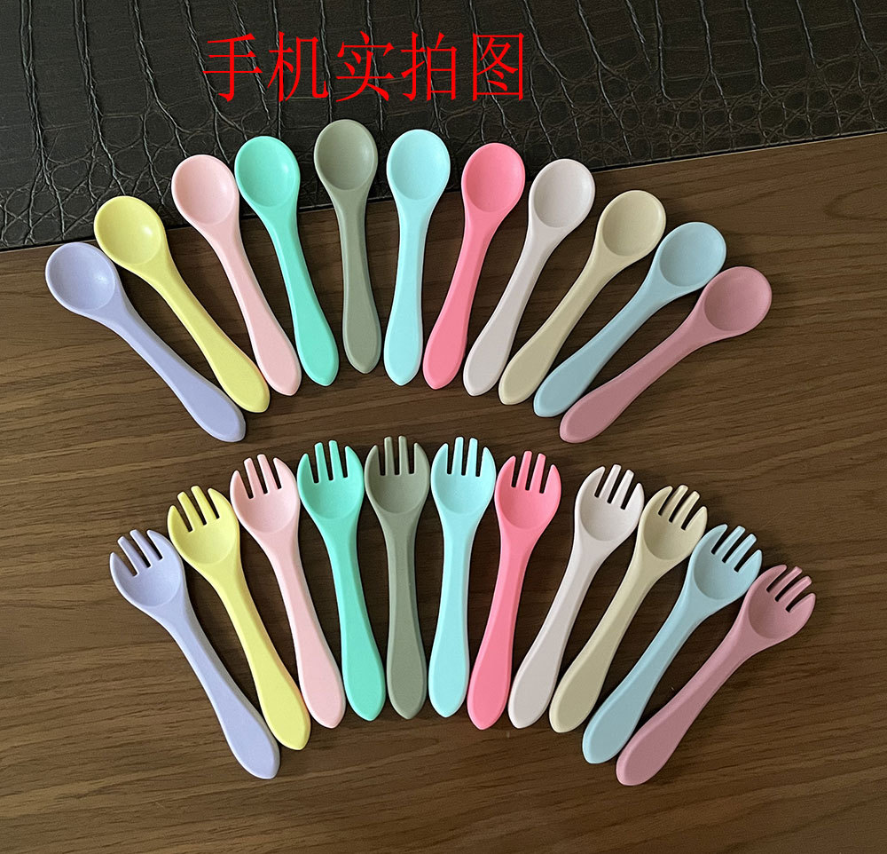 日用 儿童勺叉套装 2件套硅胶宝宝儿童学吃饭训练婴儿饭勺餐具