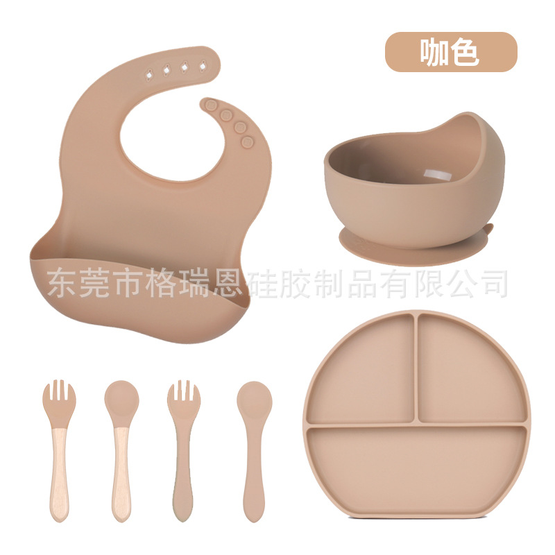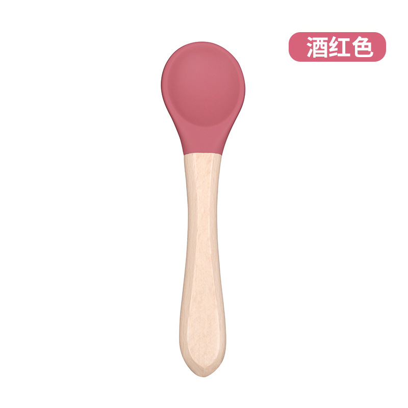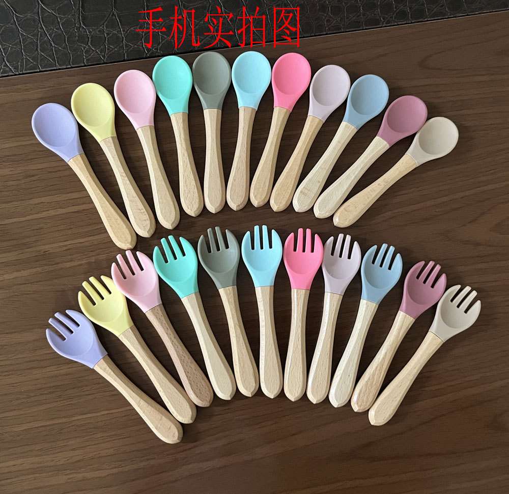 日用 儿童勺叉组合 2件套木柄套装 硅胶榉木 软宝宝餐具学吃饭