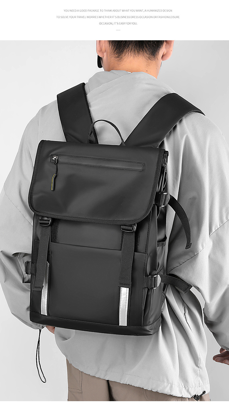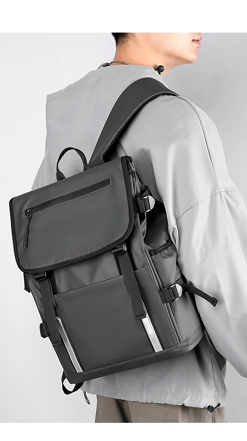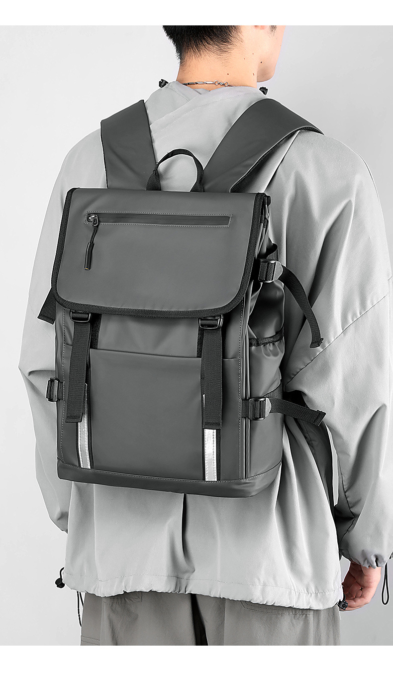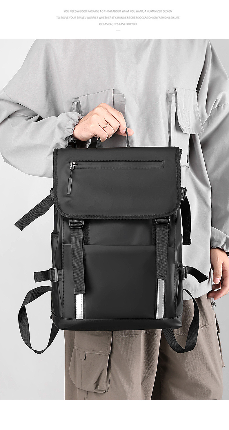 2023休闲双肩包反光条牛津布商务电脑包中学生书包简约户外背包