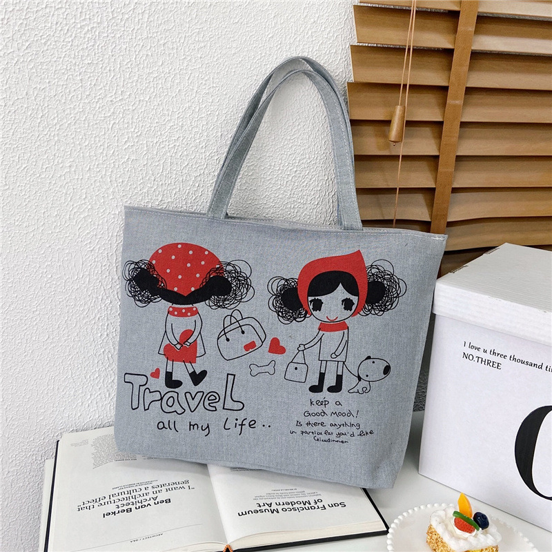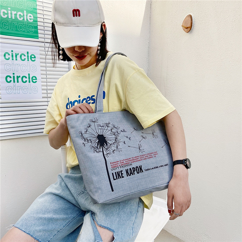 新款帆布包韩版原宿大容量托特女包潮流单肩文艺印花个性腋下包包