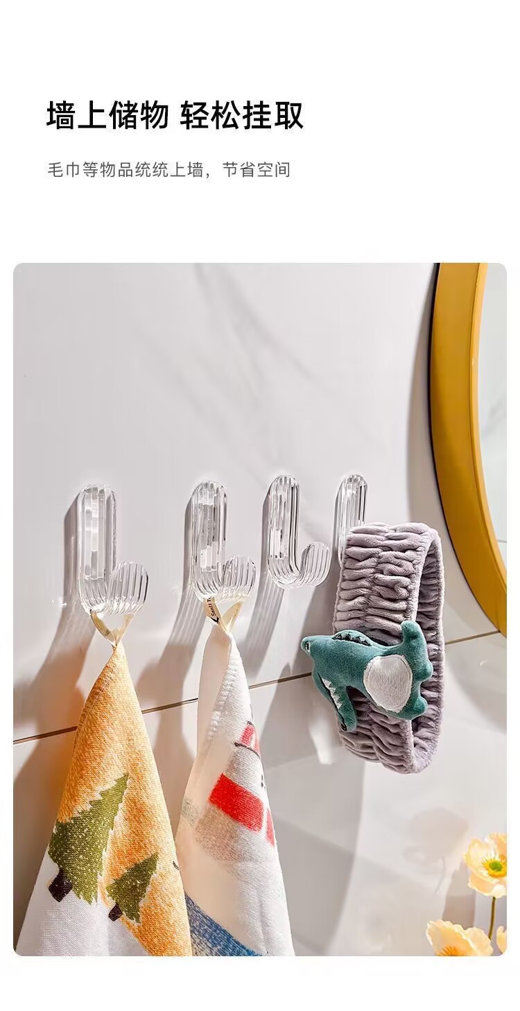 厂家直销免打孔透明无痕透明挂钩卫生间厨房门墙壁粘钩浴室挂钩