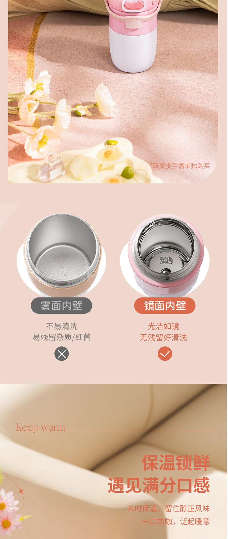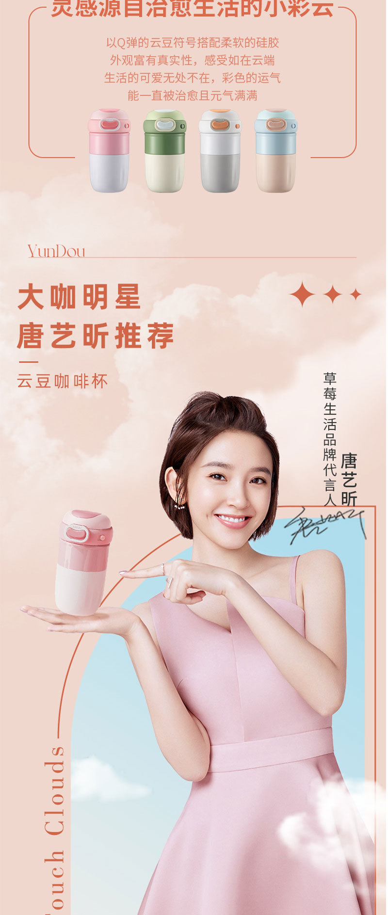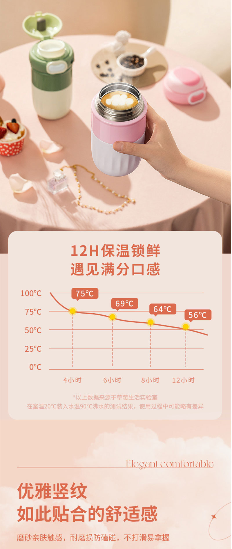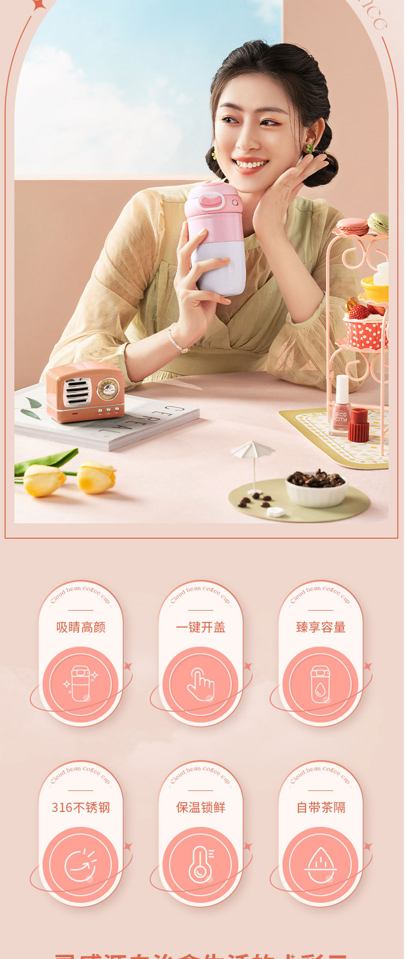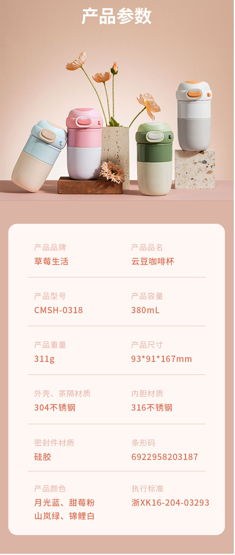 草莓生活316不锈钢咖啡杯大肚保温杯女户外便携水杯可爱云豆杯子