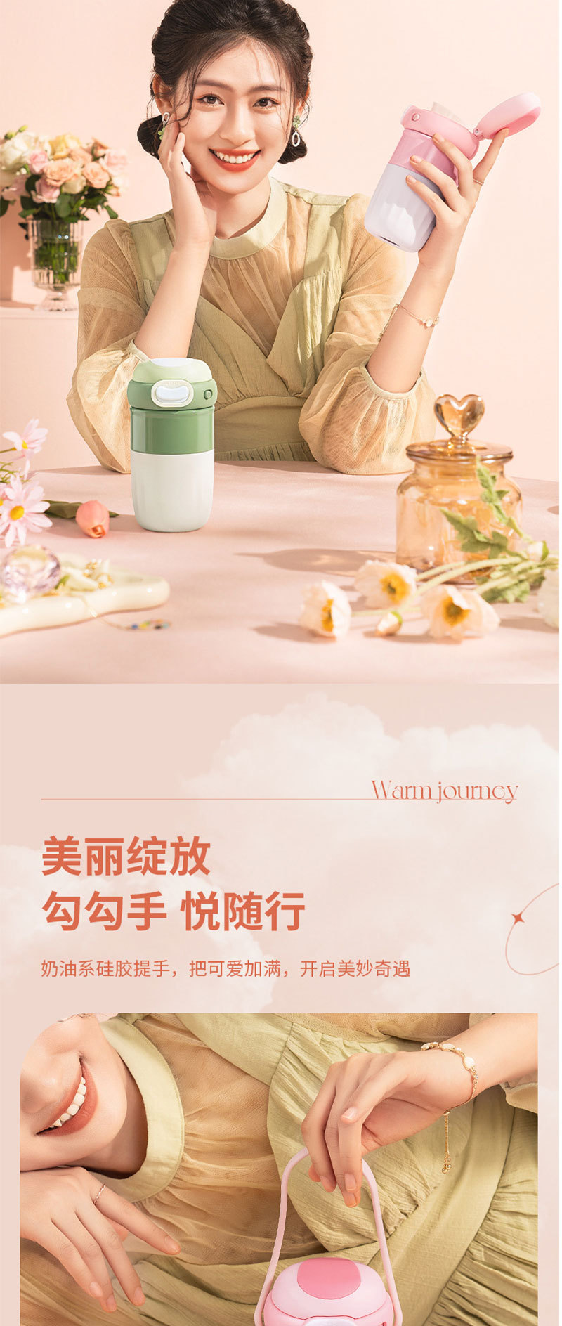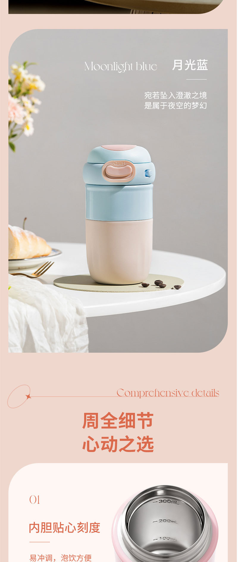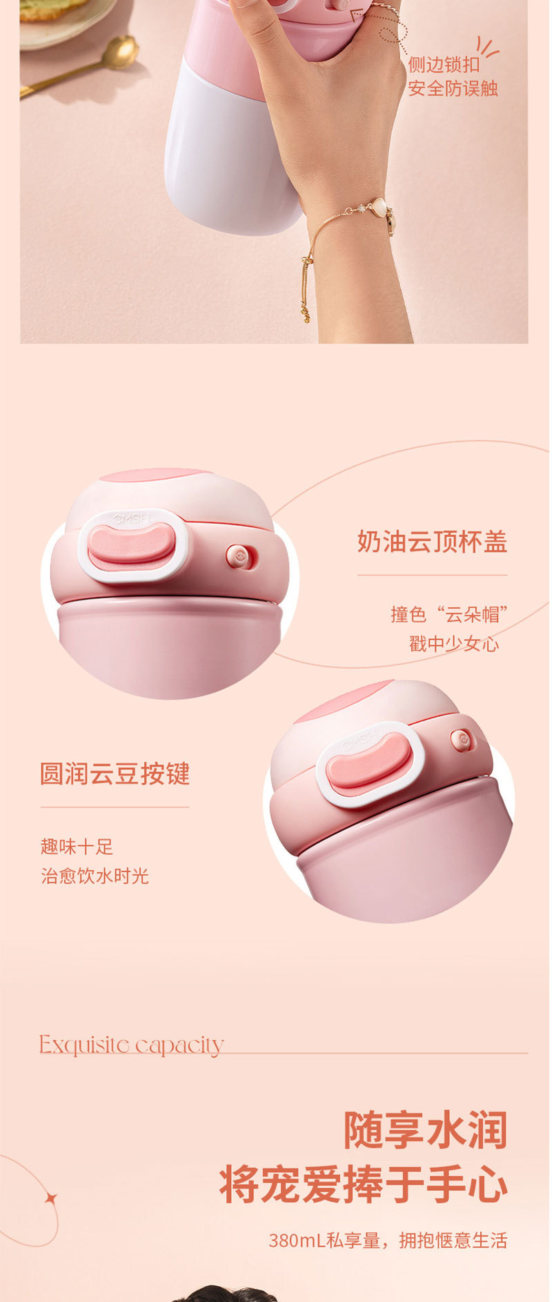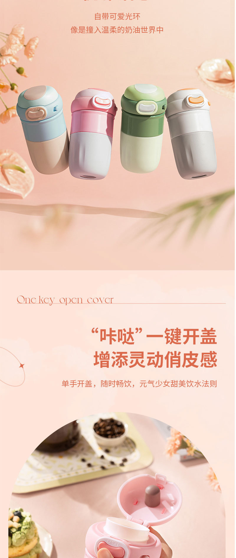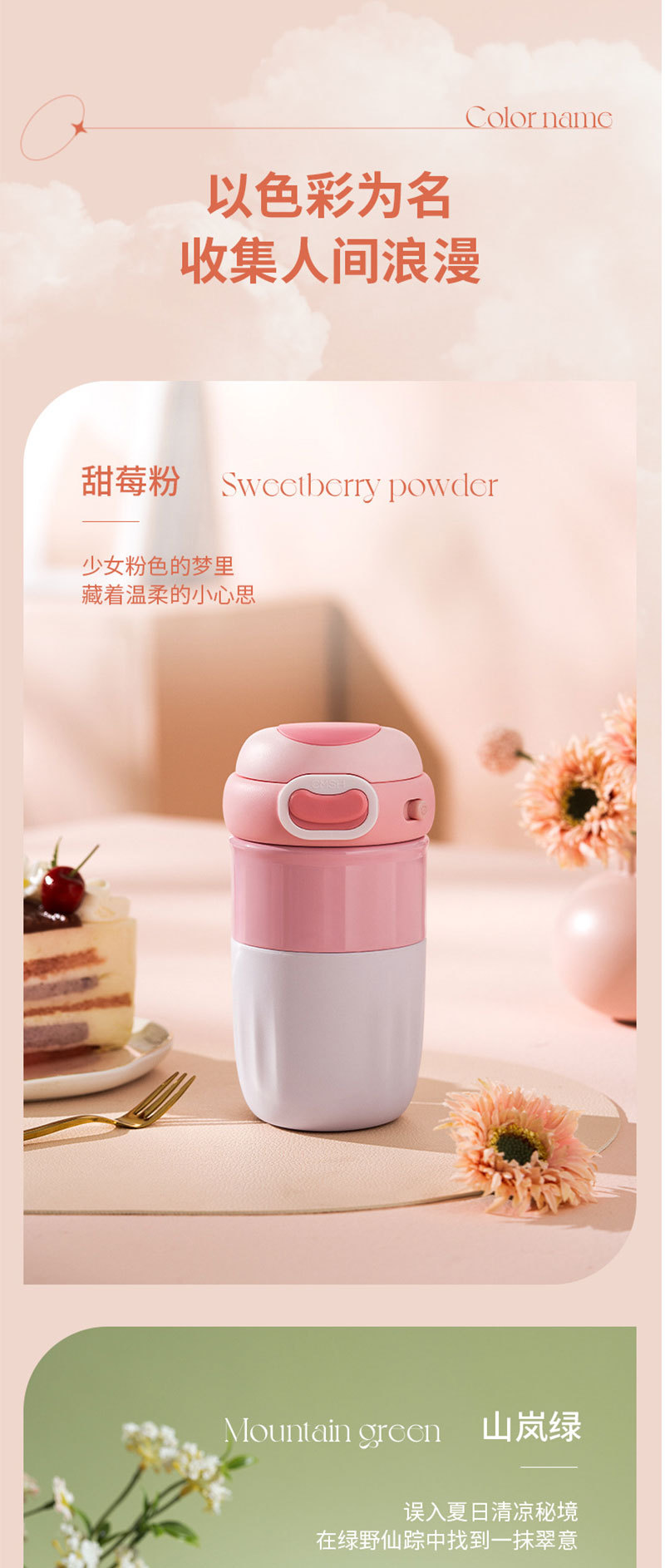 草莓生活316不锈钢咖啡杯大肚保温杯女户外便携水杯可爱云豆杯子