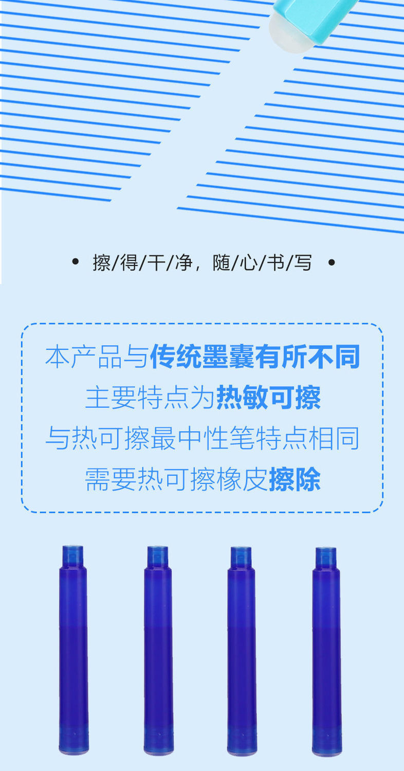 | +50 [blue] rub easy to wipe ink sac(+50个【蓝色】摩易擦墨囊) | USD $10.15 | 1000 support available |