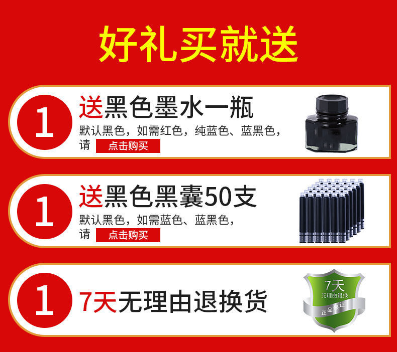 | three pieces gift set (ink +50 blue and black ink sac)(三件礼盒套装(墨水+50蓝黑墨囊)) | USD $16.4 | 1487 piece available |