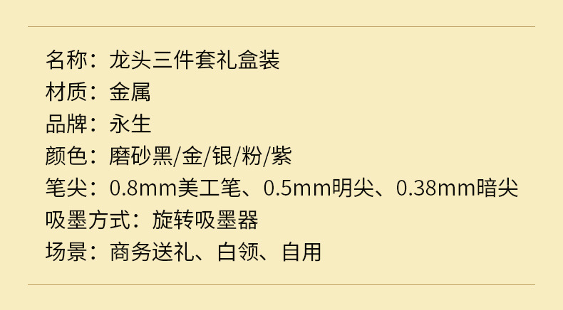 永生钢笔三件套装22铱金钢笔古风美工书法笔男女学生礼品钢笔