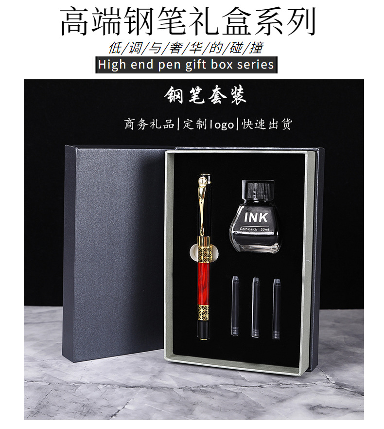 商务水笔礼品钢笔礼盒套装墨水墨囊两用钢笔套装可定logo金属笔
