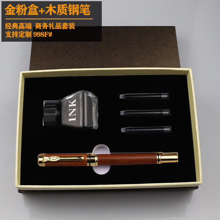 批发经典商务木质笔礼品套装金属墨水钢笔书法美工笔高端墨囊钢笔