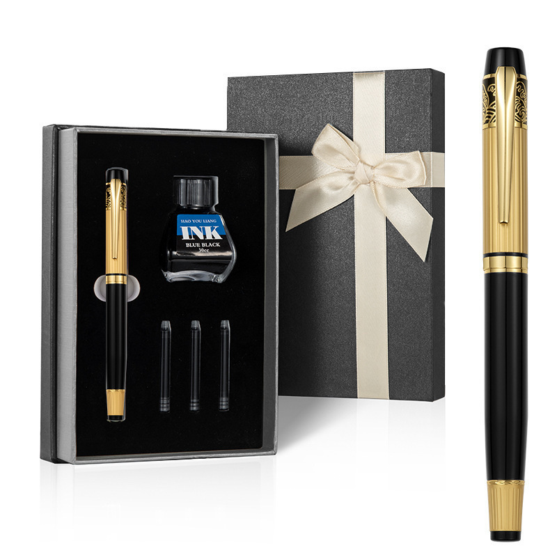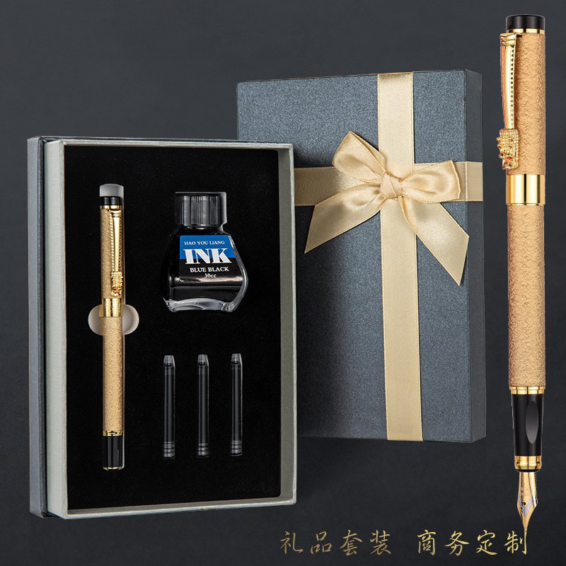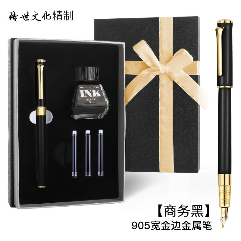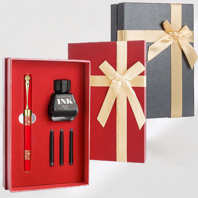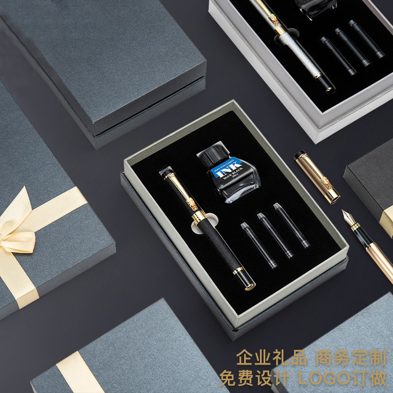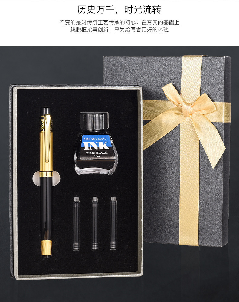 蝴蝶结礼品套装签字笔钢笔墨水墨囊金属办公商务钢笔礼品套装批发