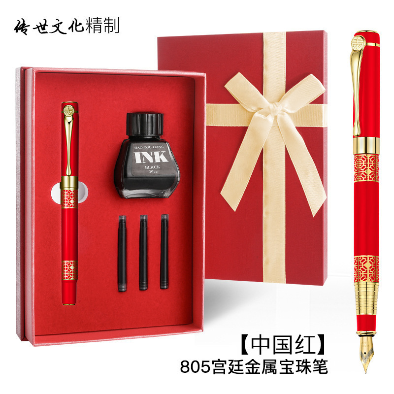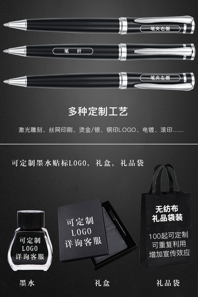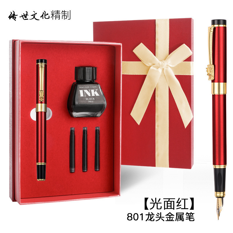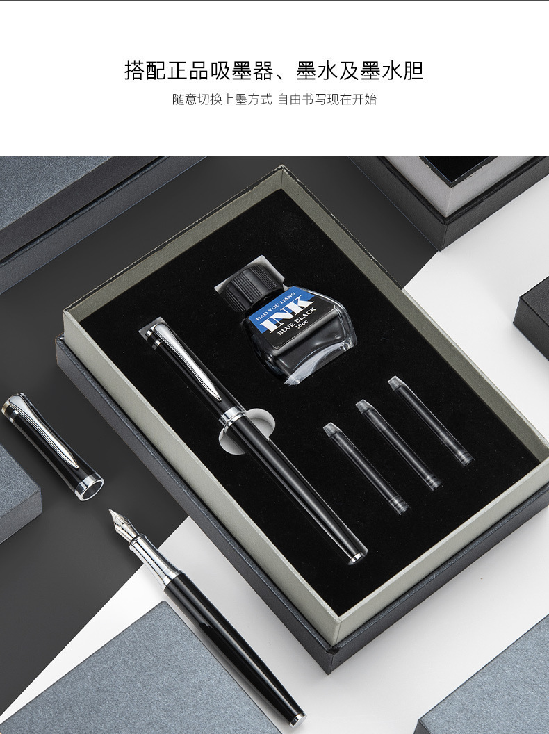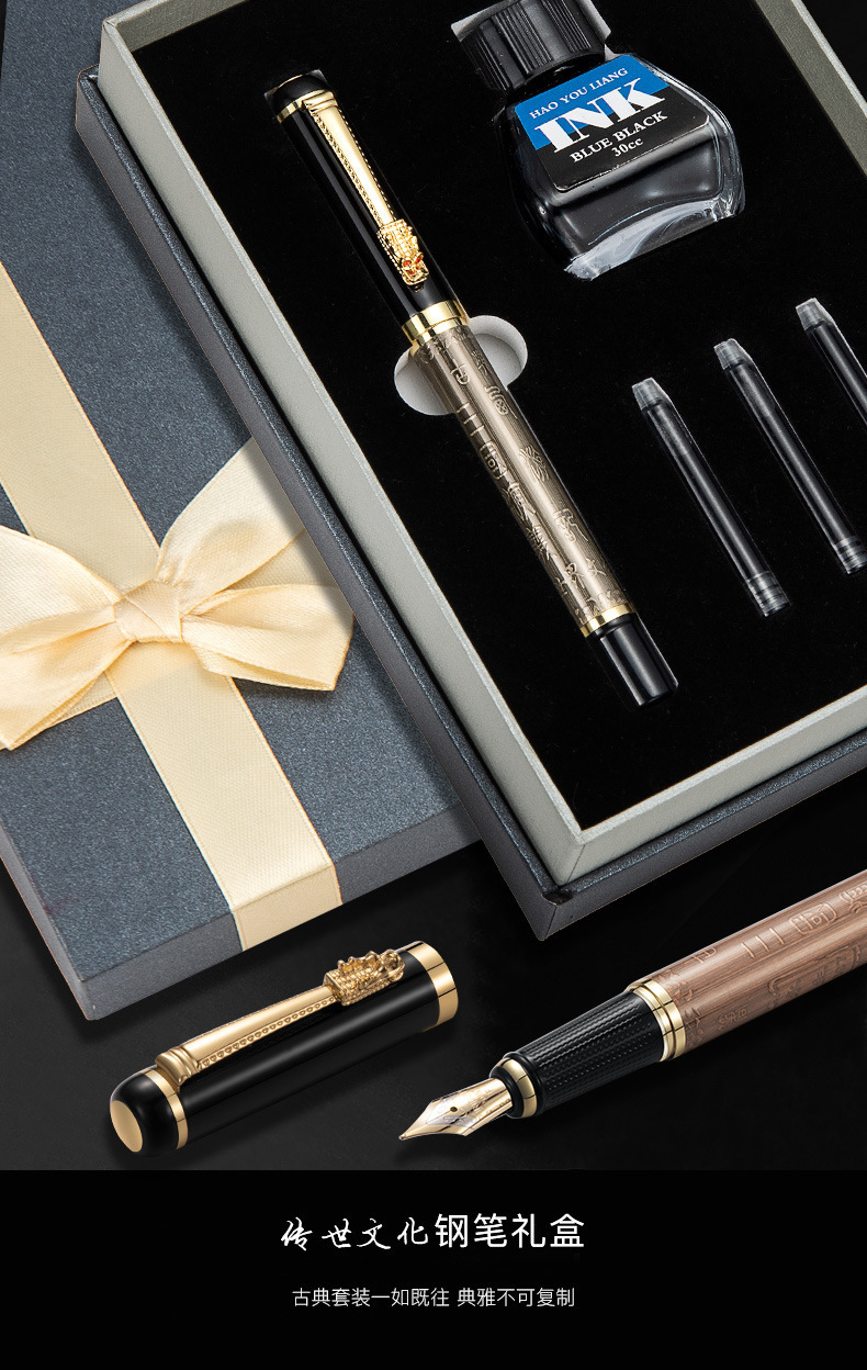 蝴蝶结礼品套装签字笔钢笔墨水墨囊金属办公商务钢笔礼品套装批发