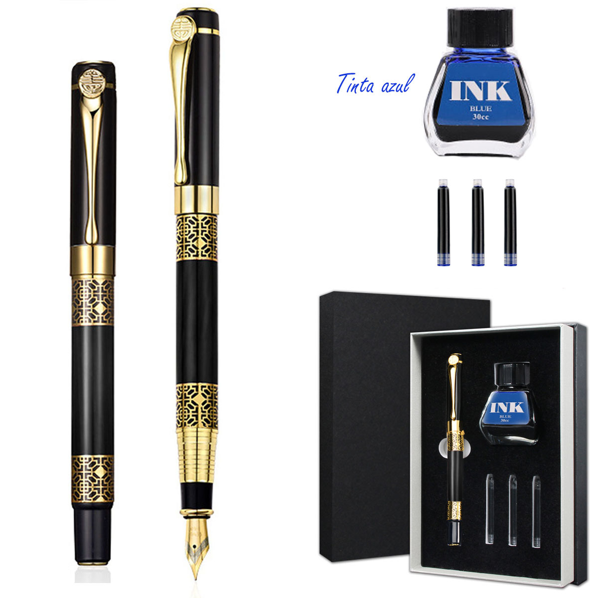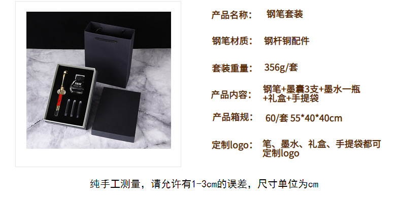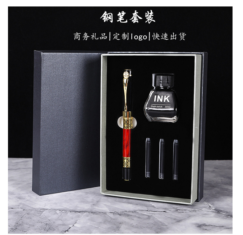 商务组合文具钢笔礼盒套装 可定logo送礼墨水墨囊两用钢笔套装